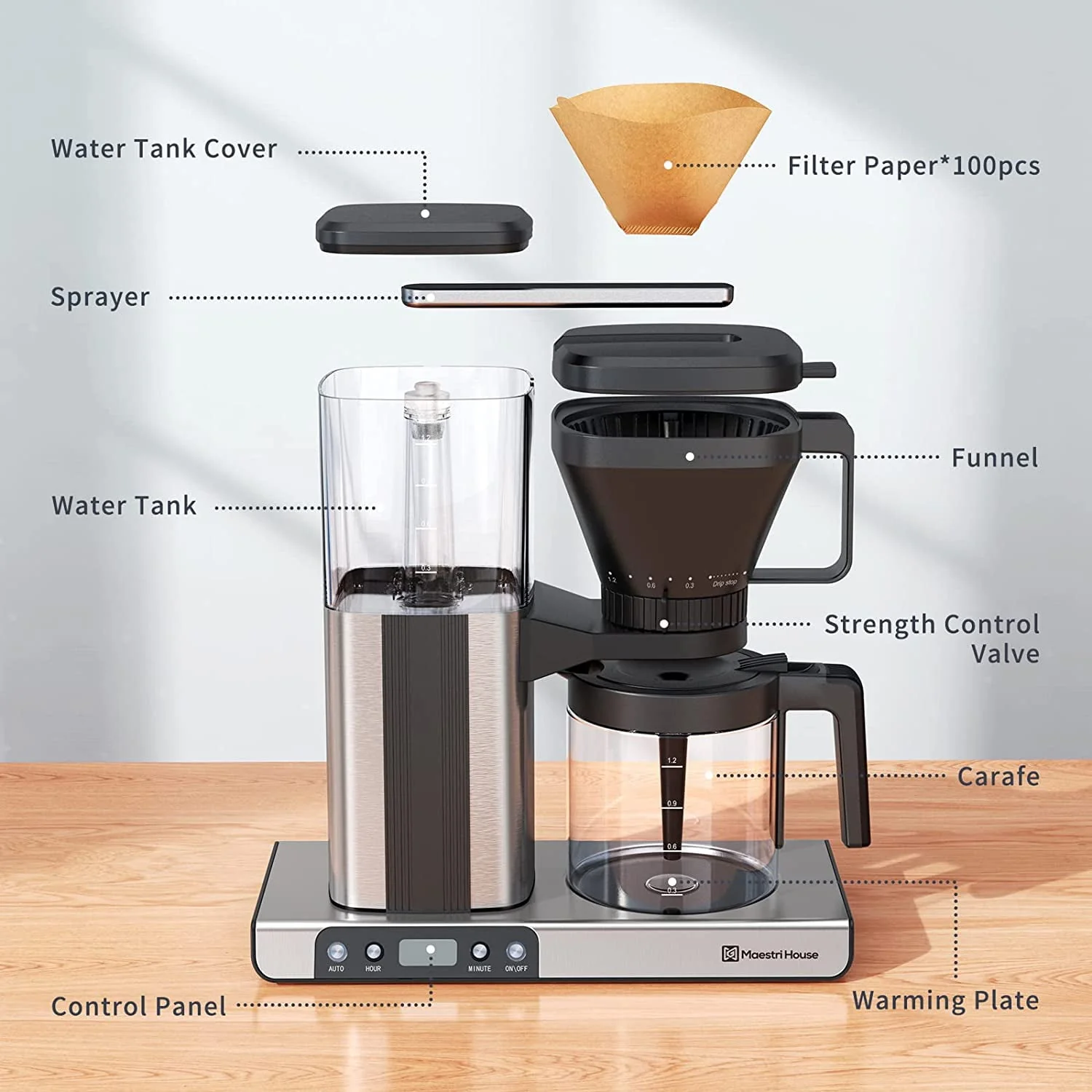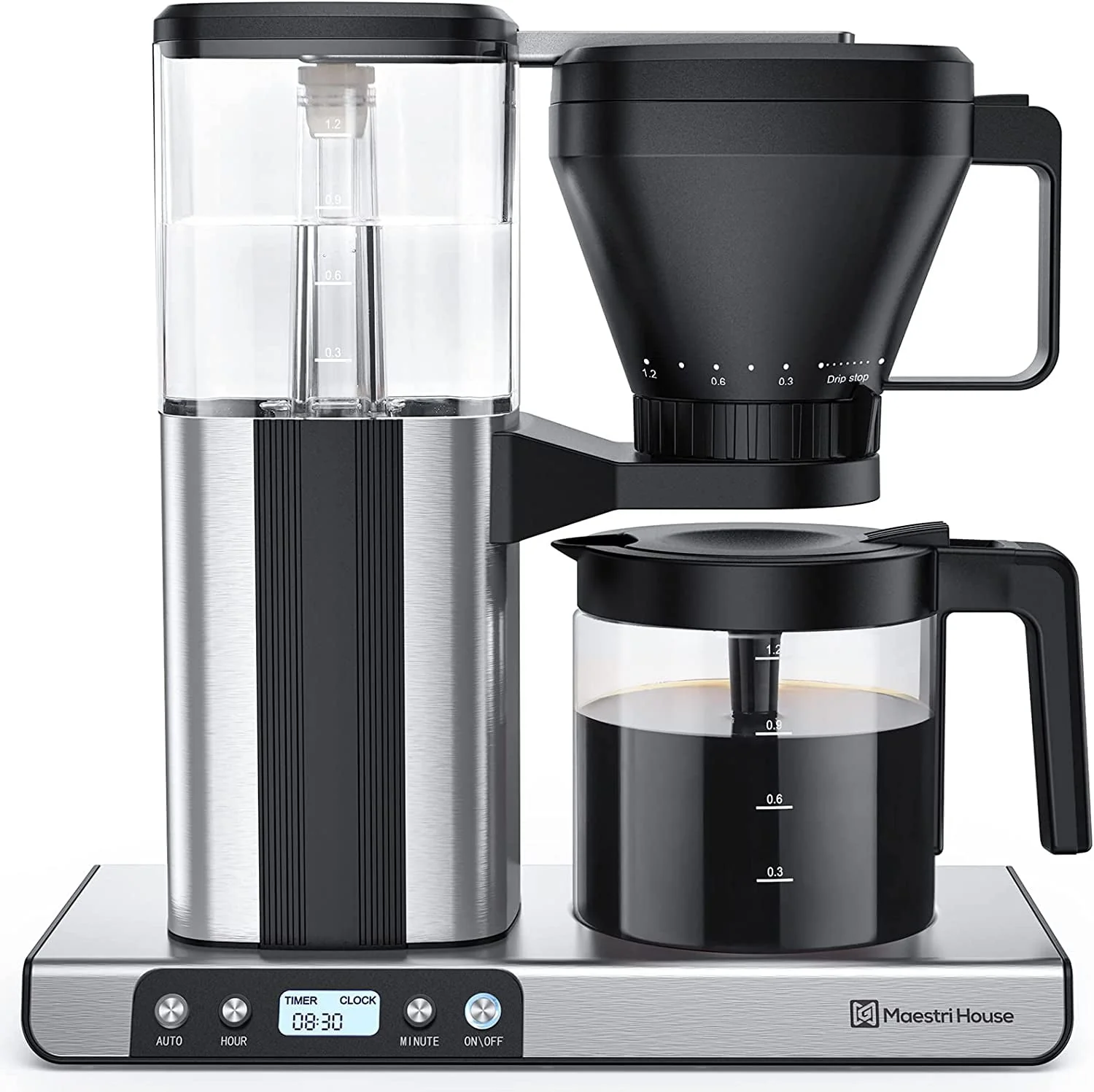 Maestri House Coffee Maker, 8-Cup Drip Coffee Machine, One-Touch Brewing Coffee Machine with Warming Plate, Automatic Drip Coffee Pot, 1.2L Water Tank