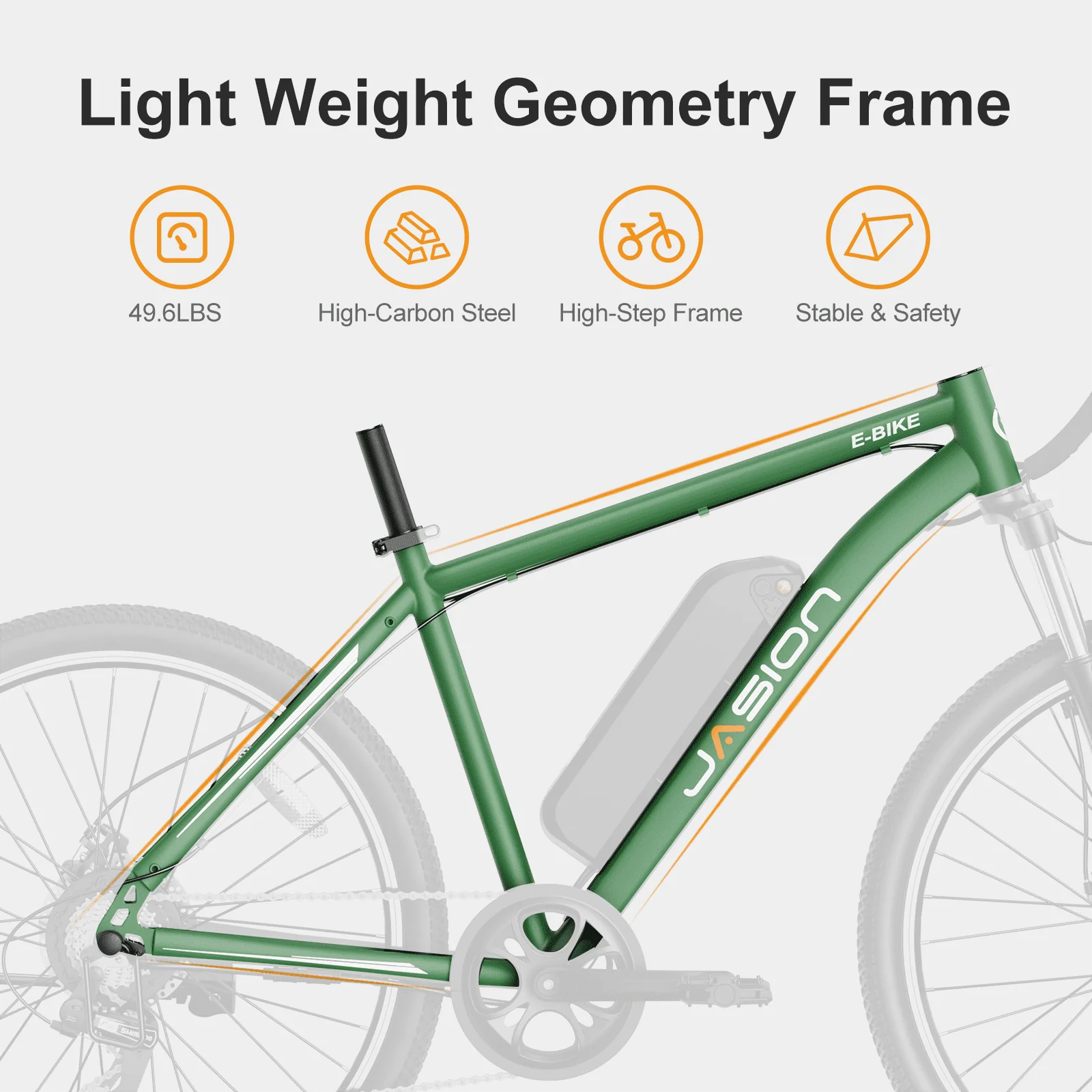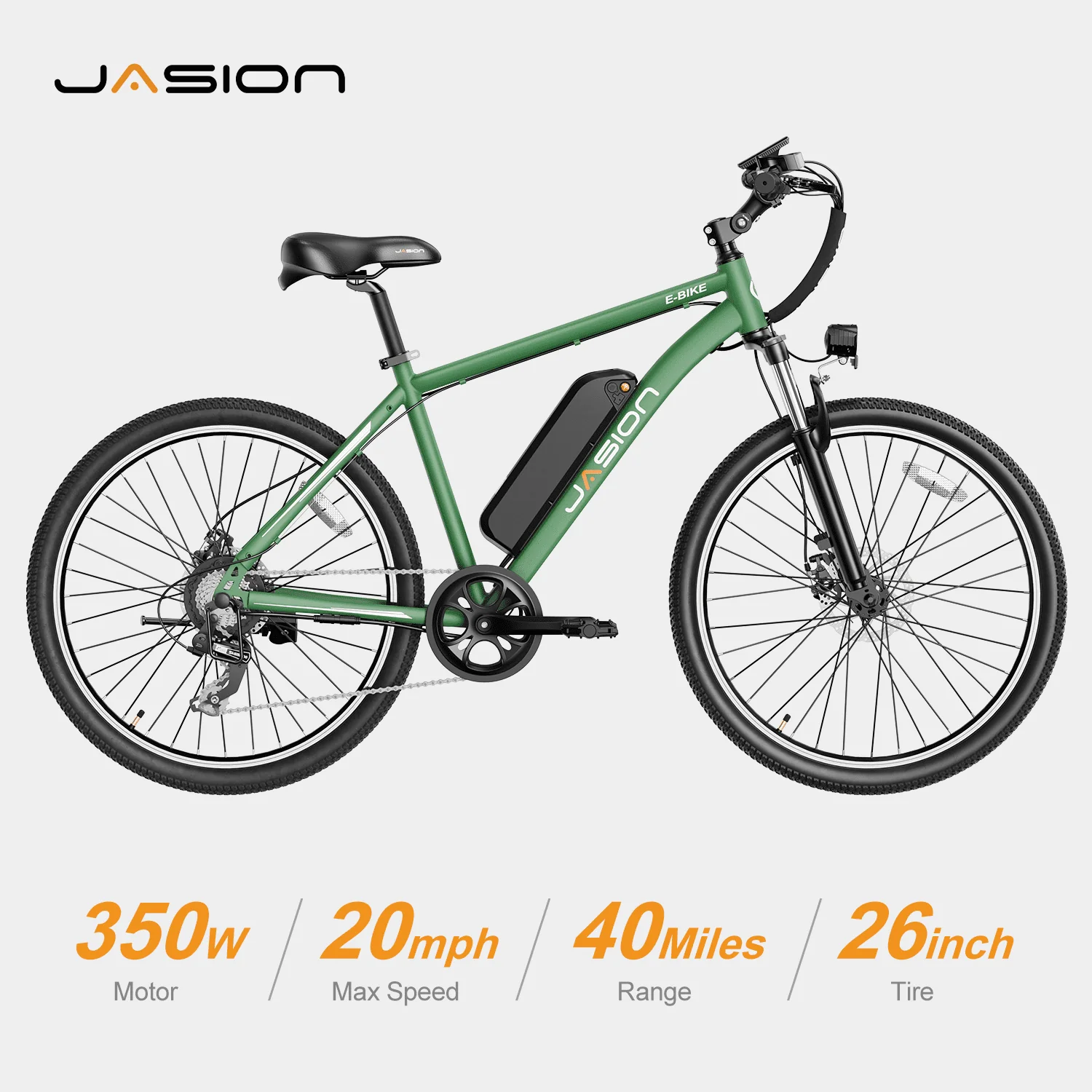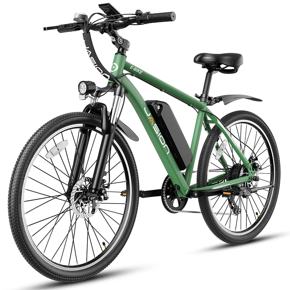 Jasion Electric Mountain Bike for Adults, 26 Tires, 350W Brushless Motor, 40 Miles Commuting Range, Front Fork Suspension, Shimano 7 Speed, EB5 Green