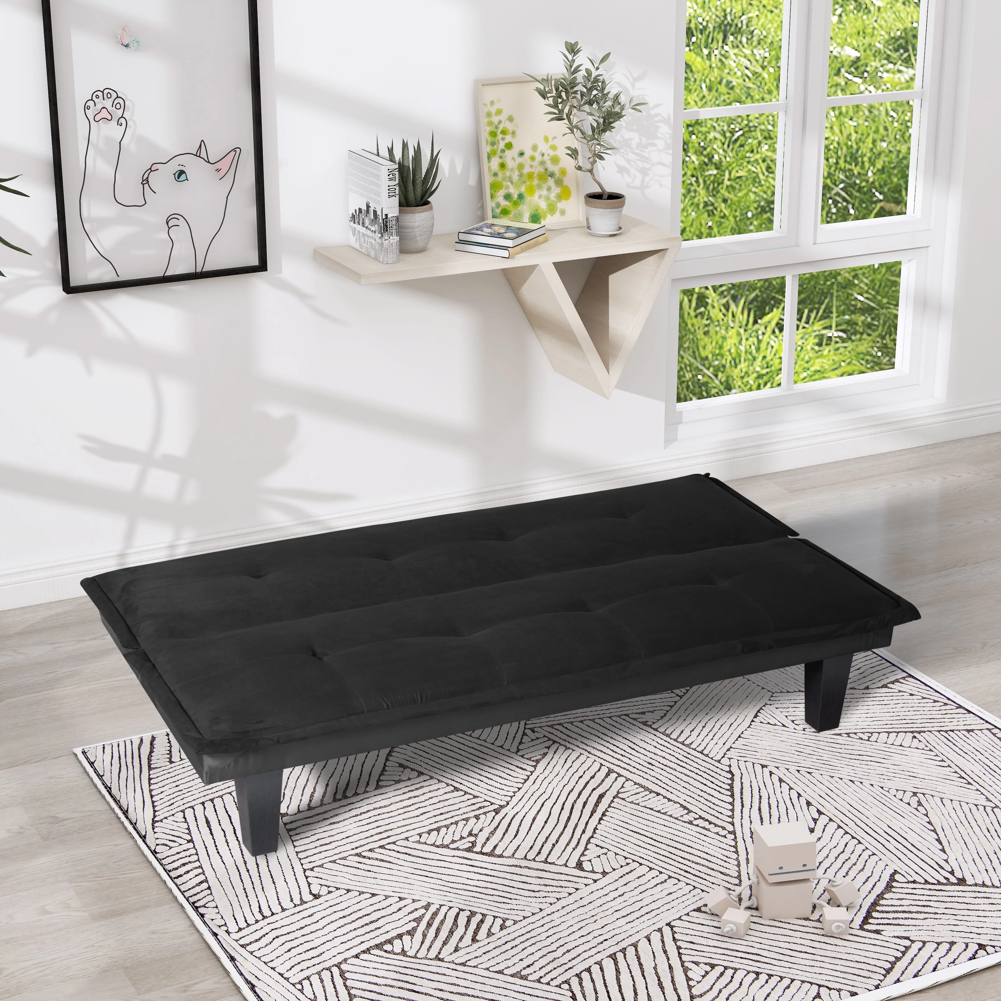 BSHTI 63.8 inch Armless Tufted Convertible Sleeper Futon Sofa Faux Suede Fabric Sofa Sleeper(Black)