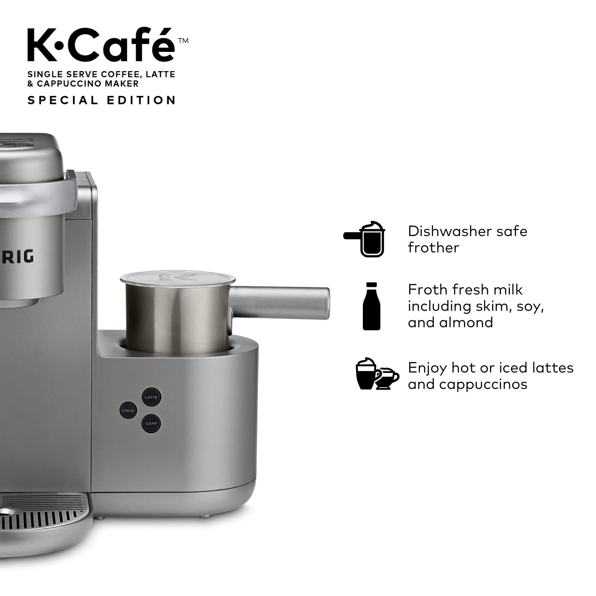 Keurig K-Cafe Special Edition Single Serve K-Cup Pod Coffee, Latte and Cappuccino Maker, Nickel