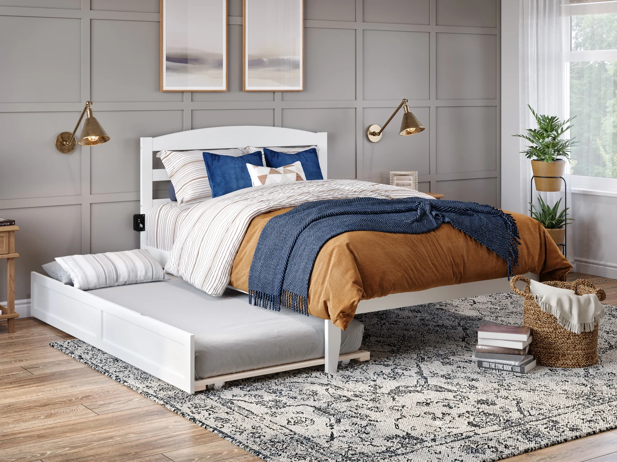AFI Warren 14 Full Wood Platform Bed Frame with Twin Trundle. White