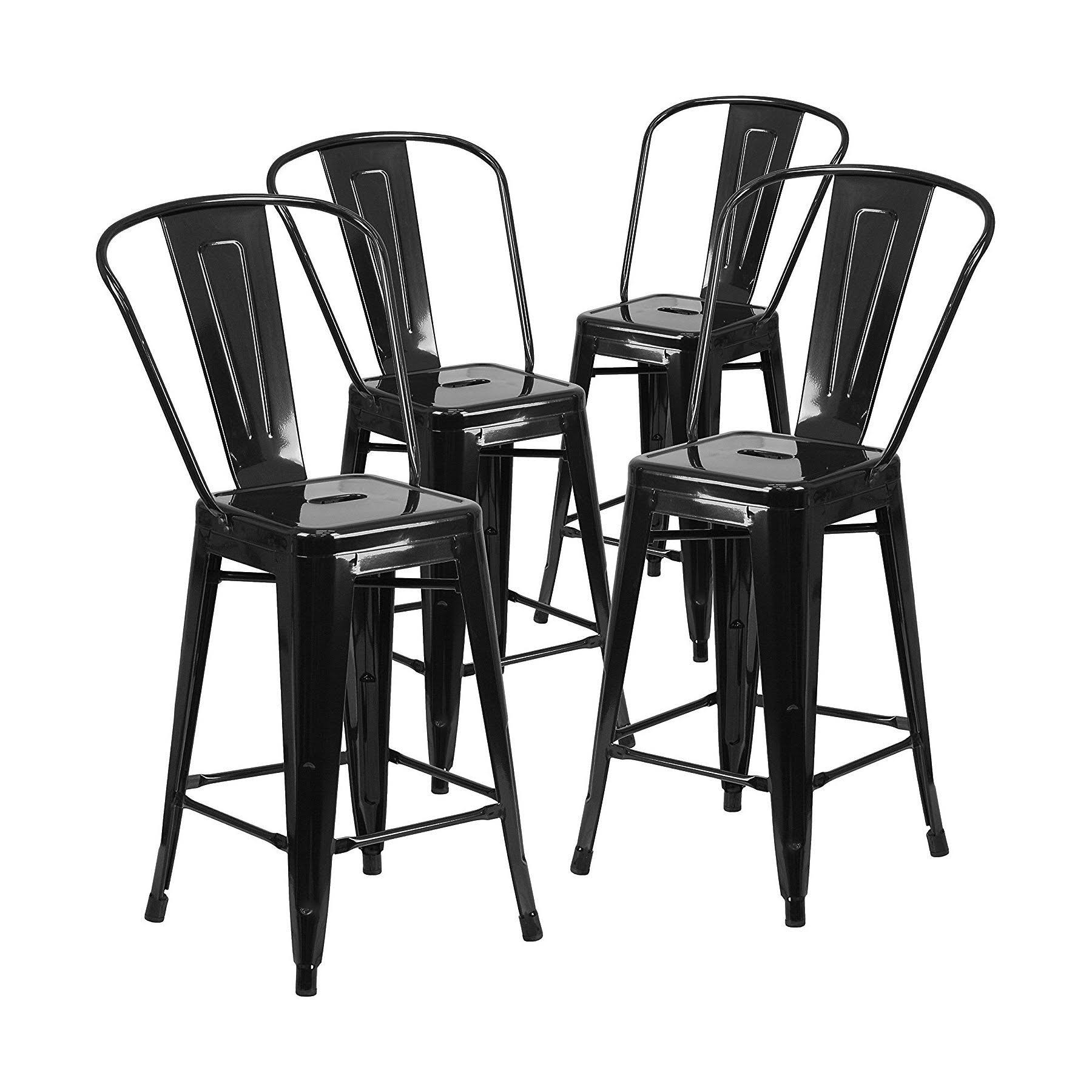 Belleze 24 inch Indoor-Outdoor Counter Height Stool with BACK, Set of (4) Black - Megean