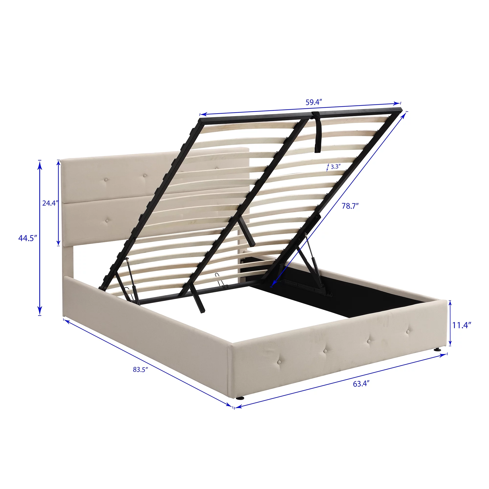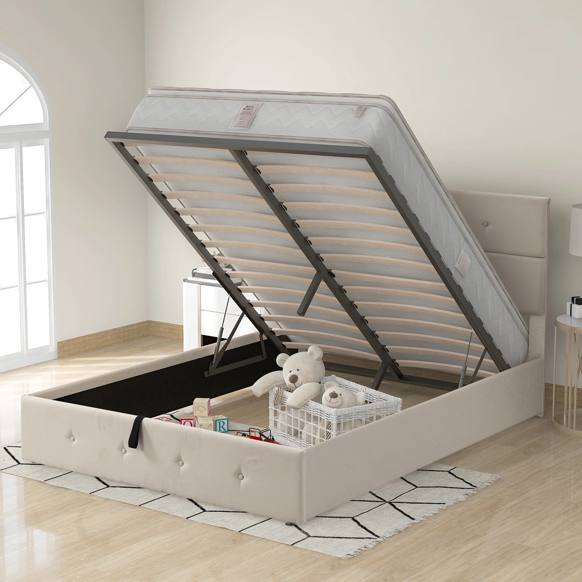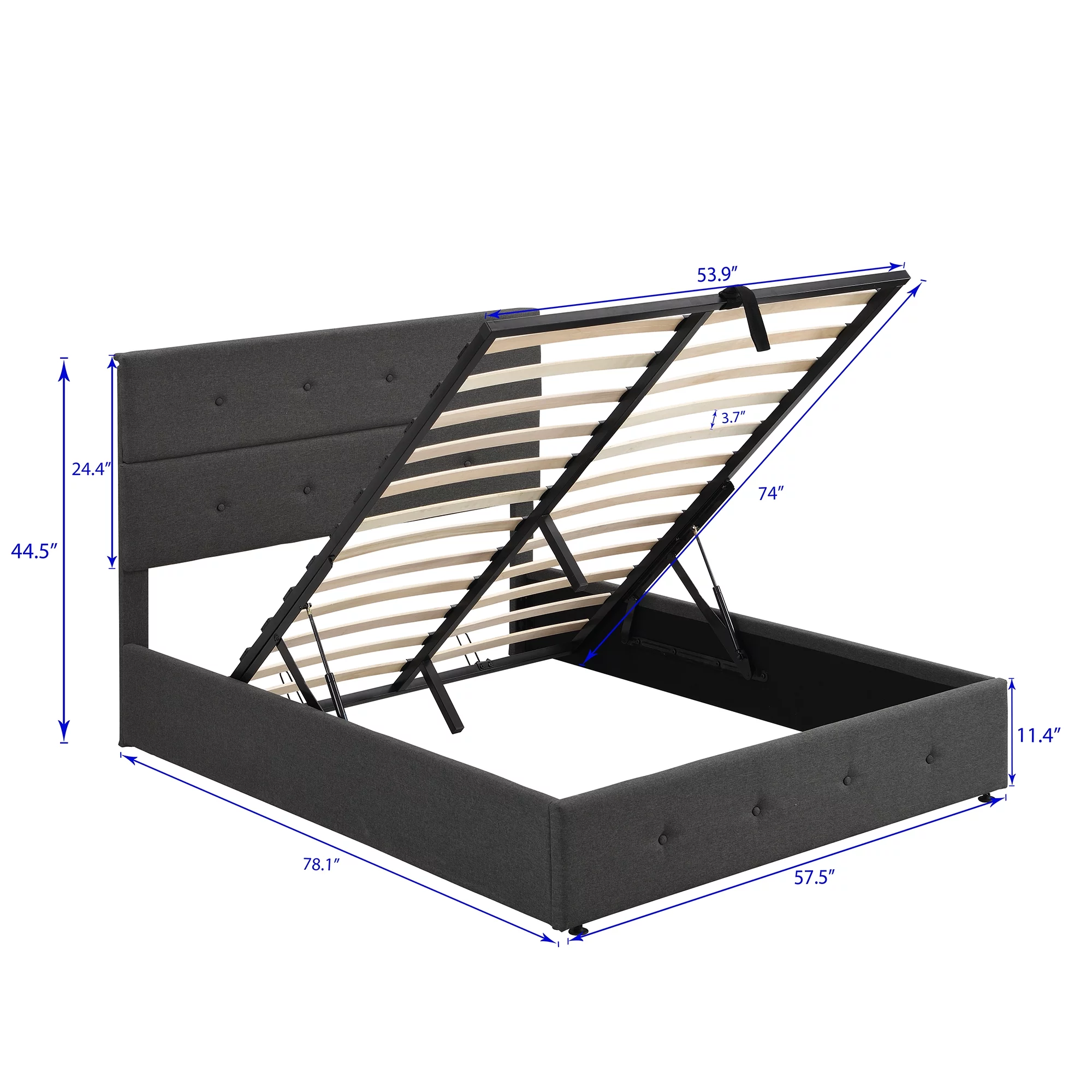 Euroco Upholstered Full Bed, Lift Up Storage Platform Bed