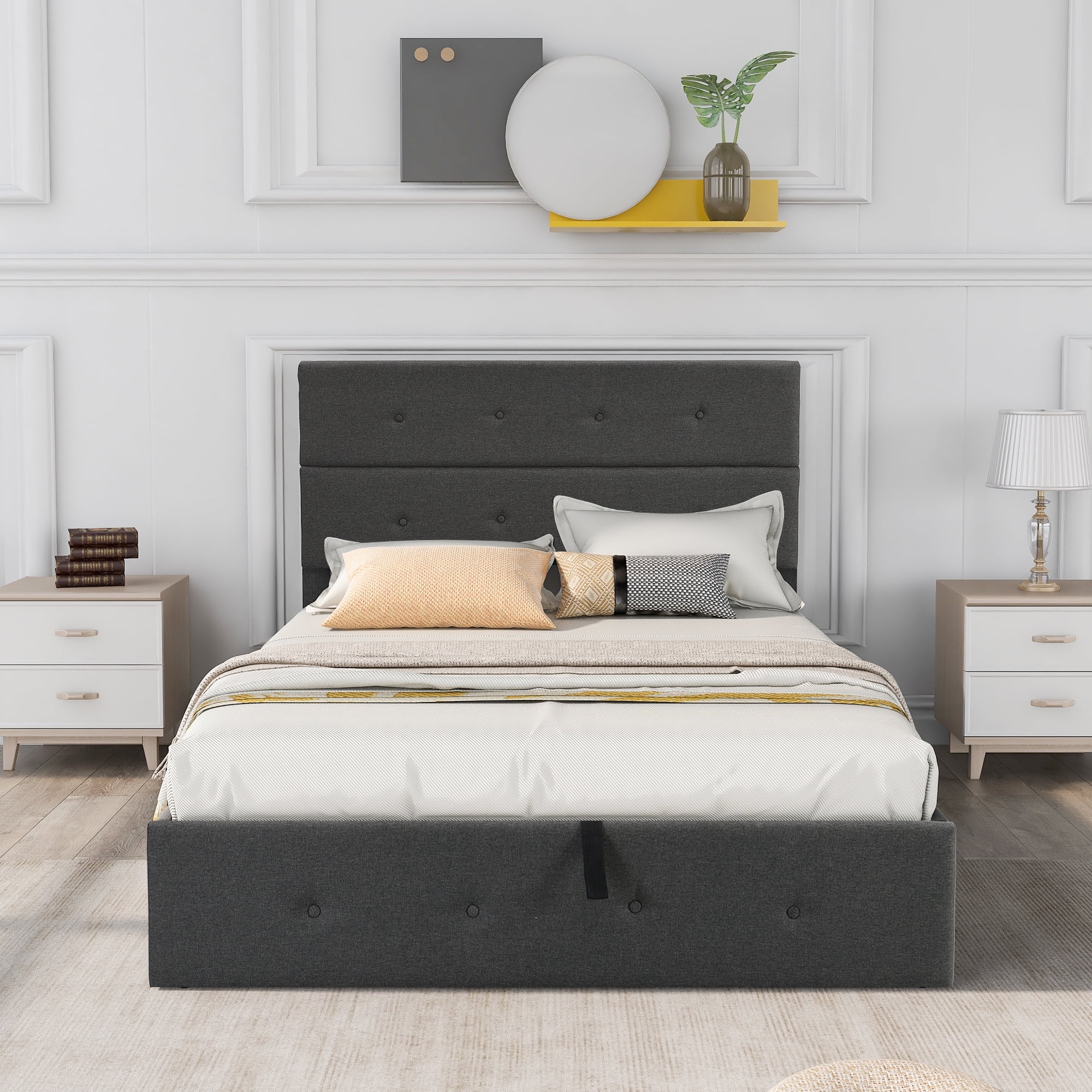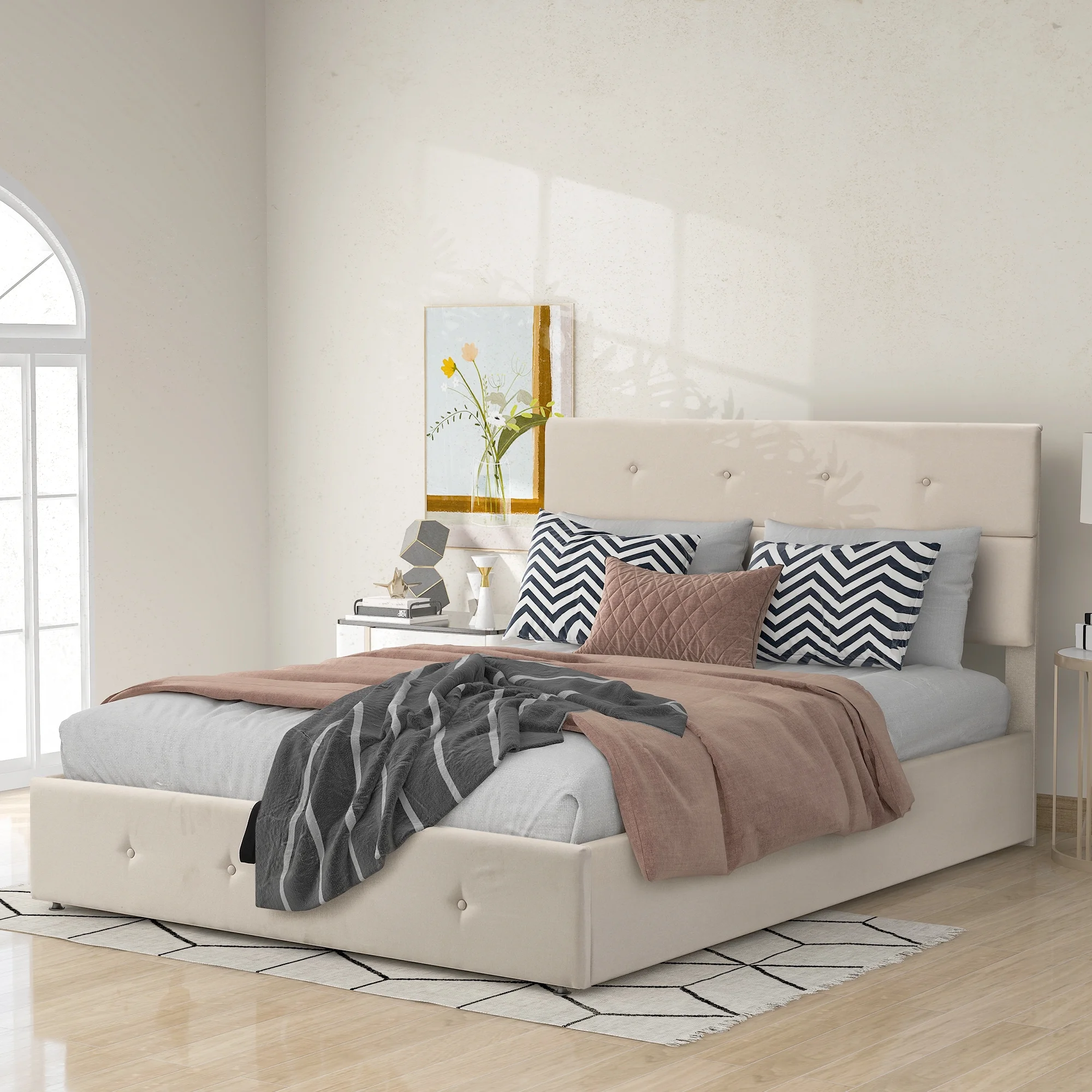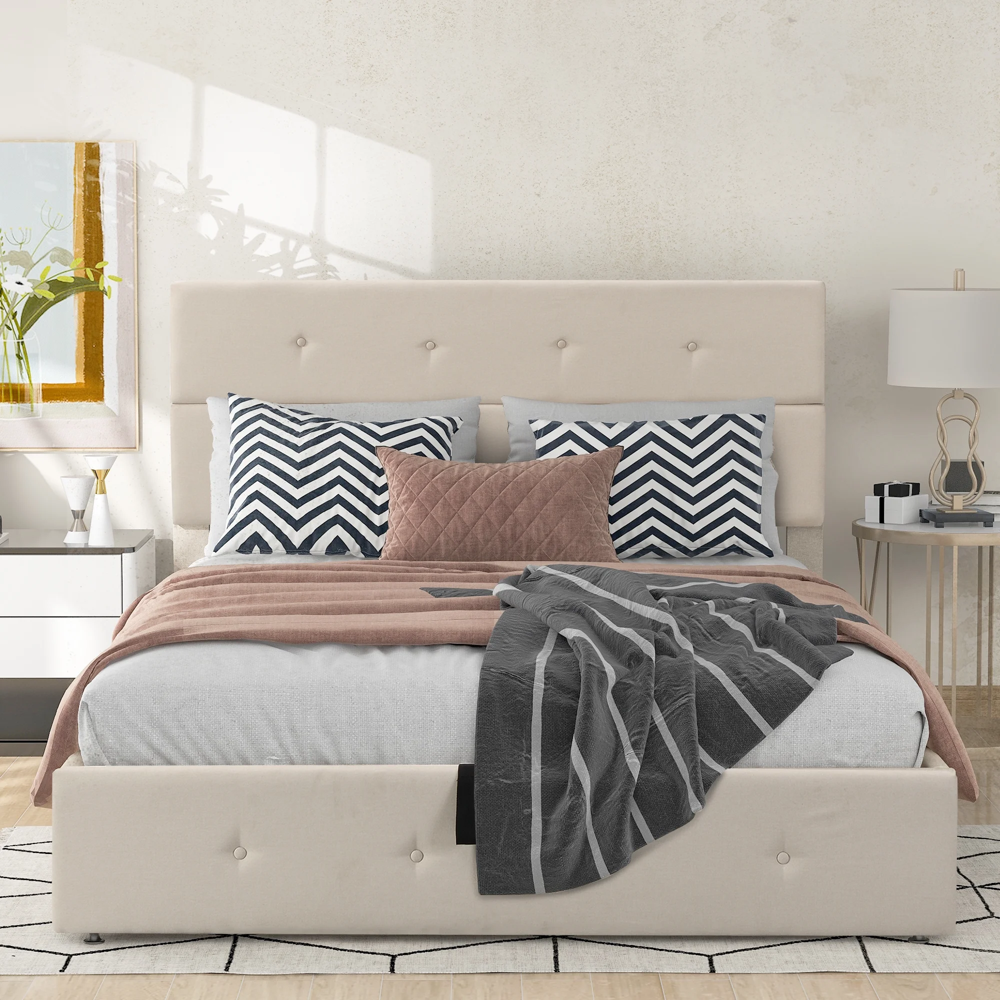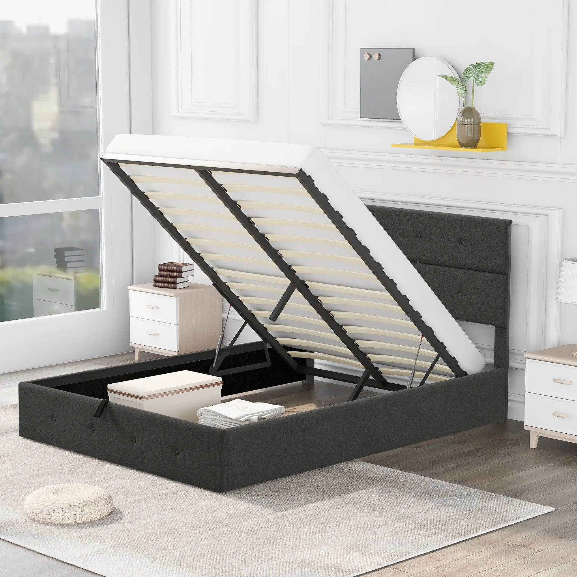 Euroco Upholstered Full Bed, Lift Up Storage Platform Bed