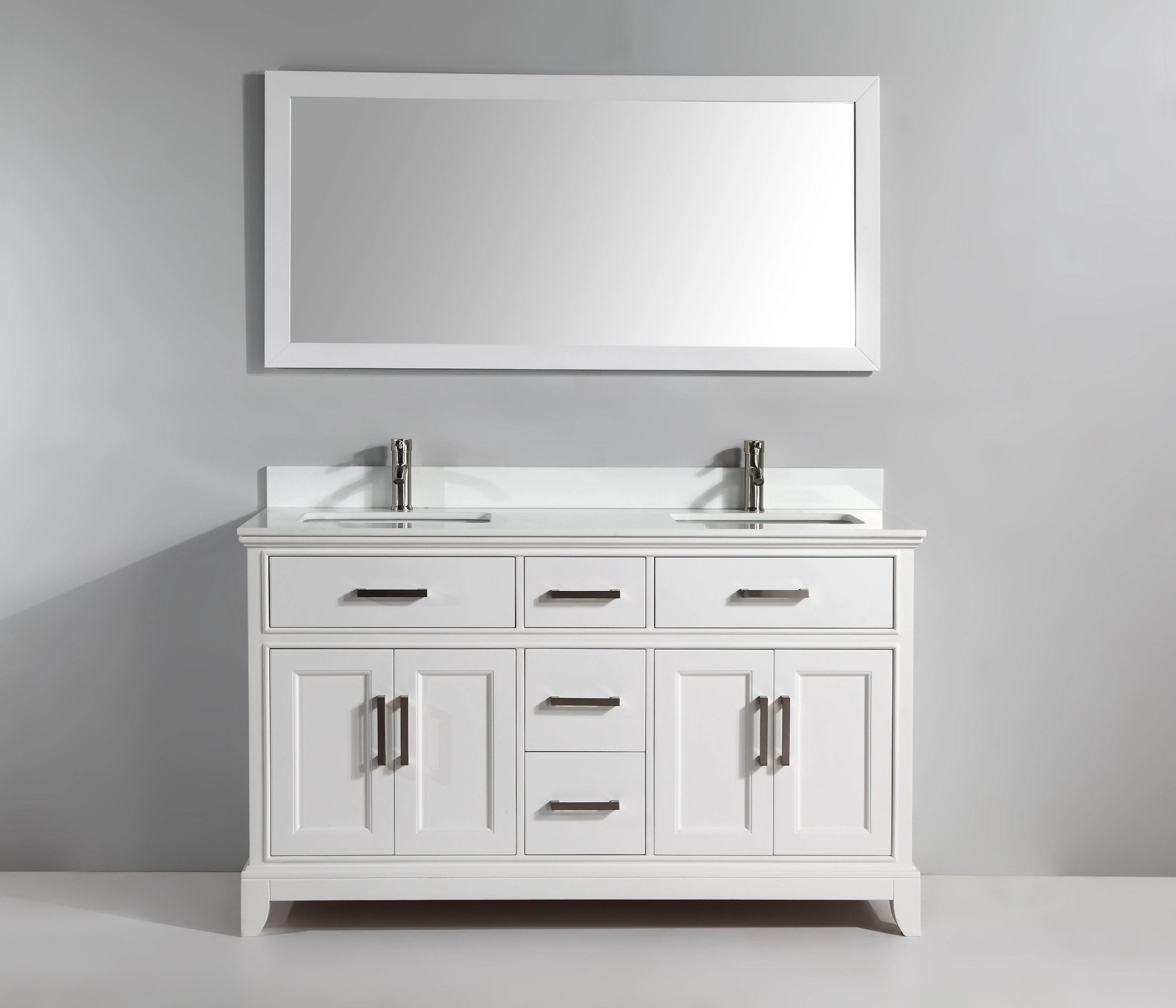 Vanity Art 60 in. Double Sink Vanity & Mirror - White, VA1060DW