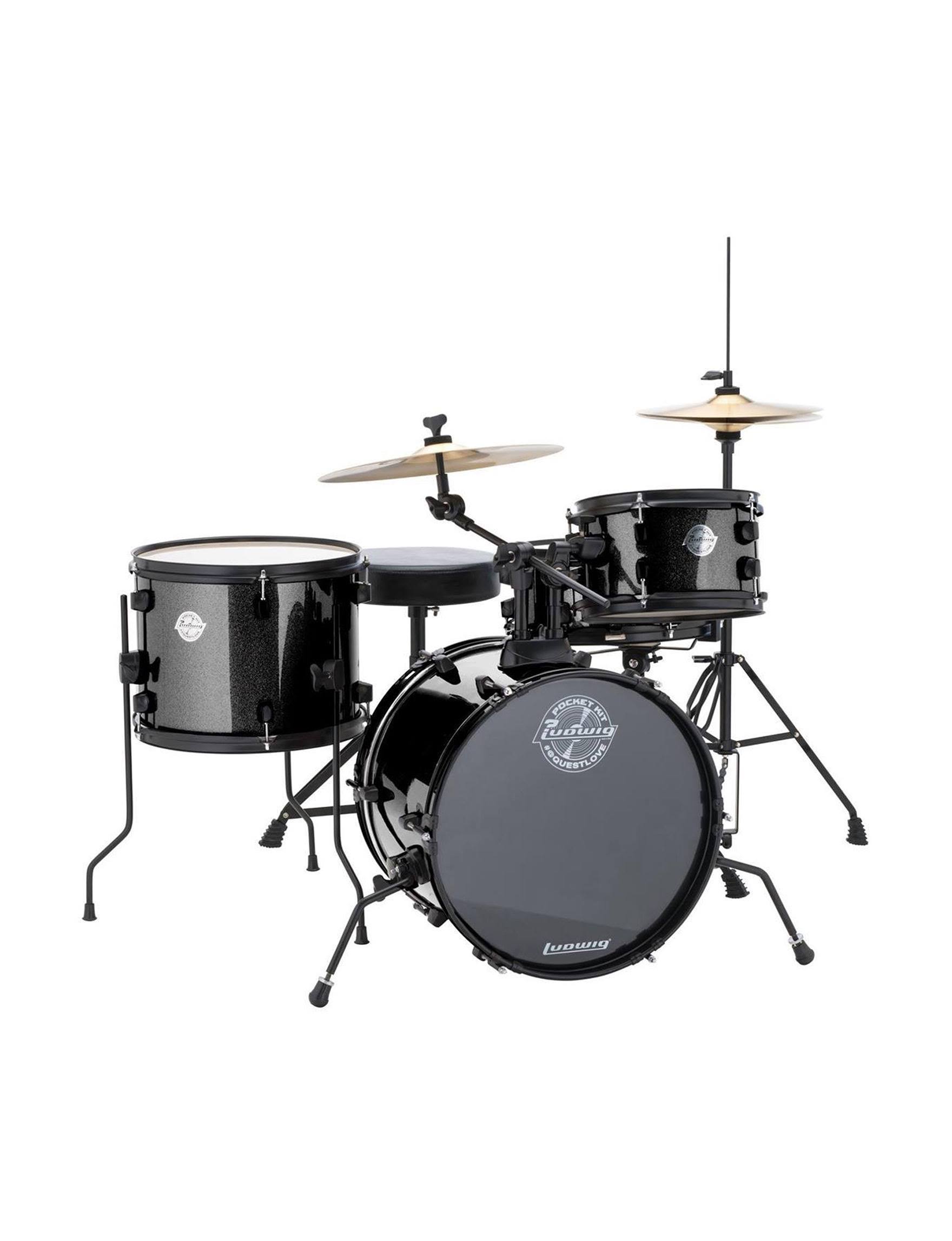 Ludwig LC178X016 4 Piece Questlove Pocket Kit Drum Set - Black Sparkle - Megean