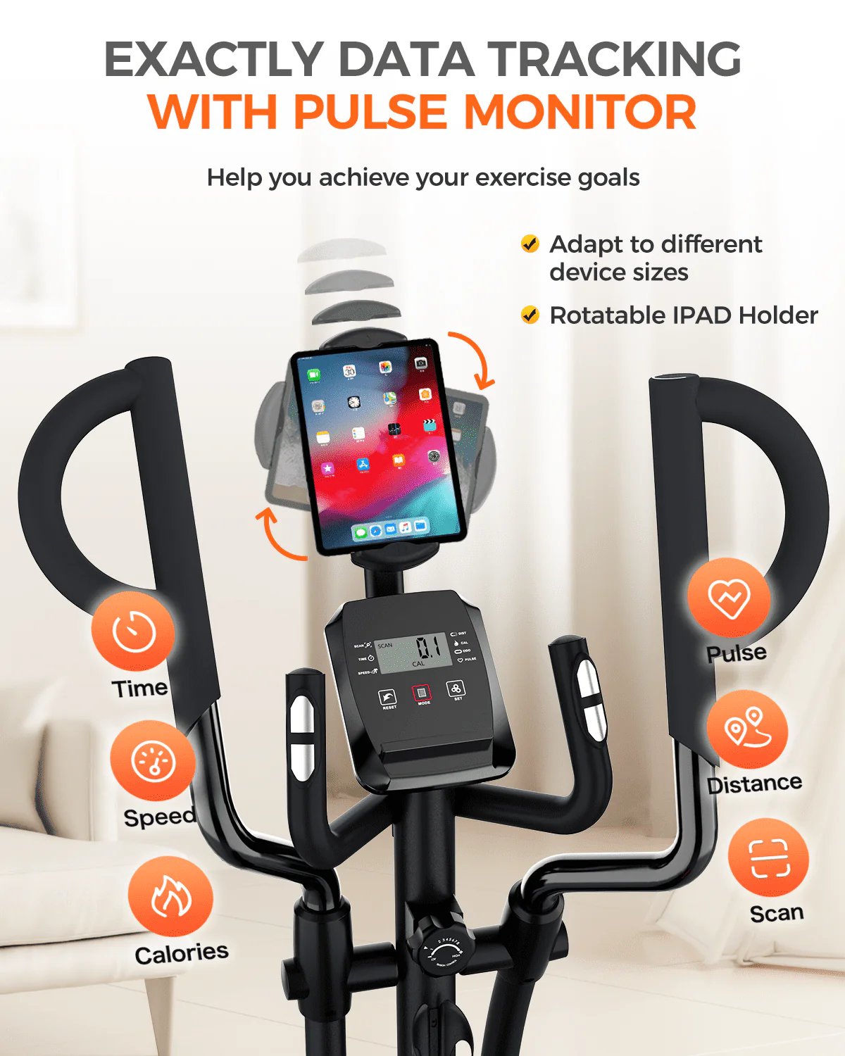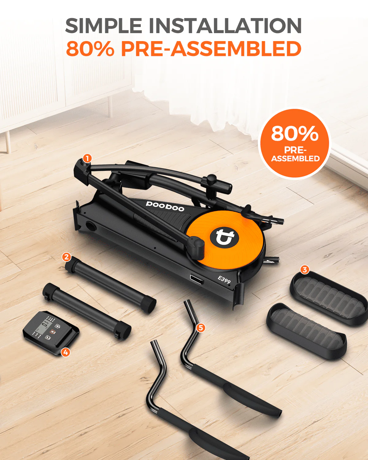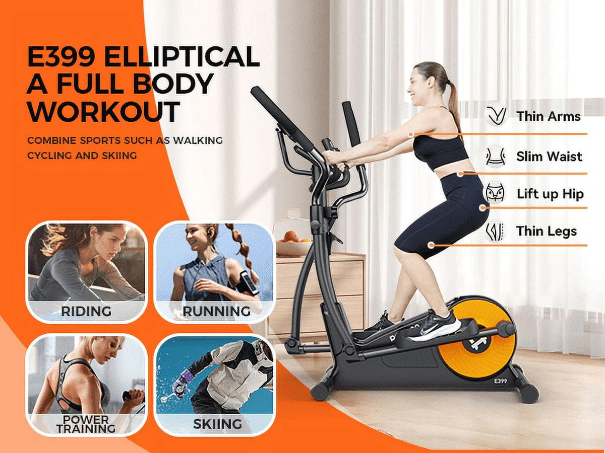 Pooboo Silent Magnetic Elliptical Bike Stationary Exercise Machine for Home Gym Cardio Workout 350lb