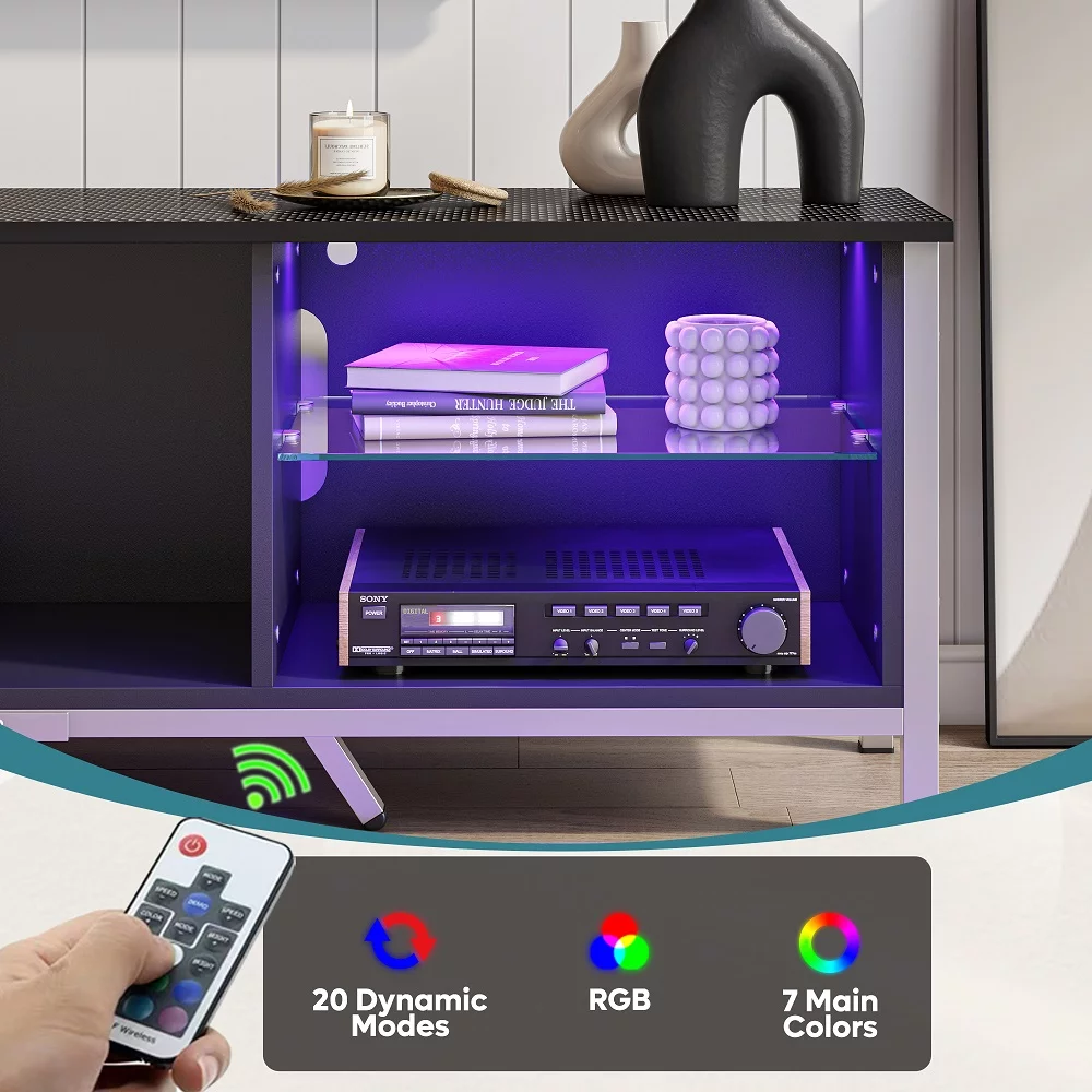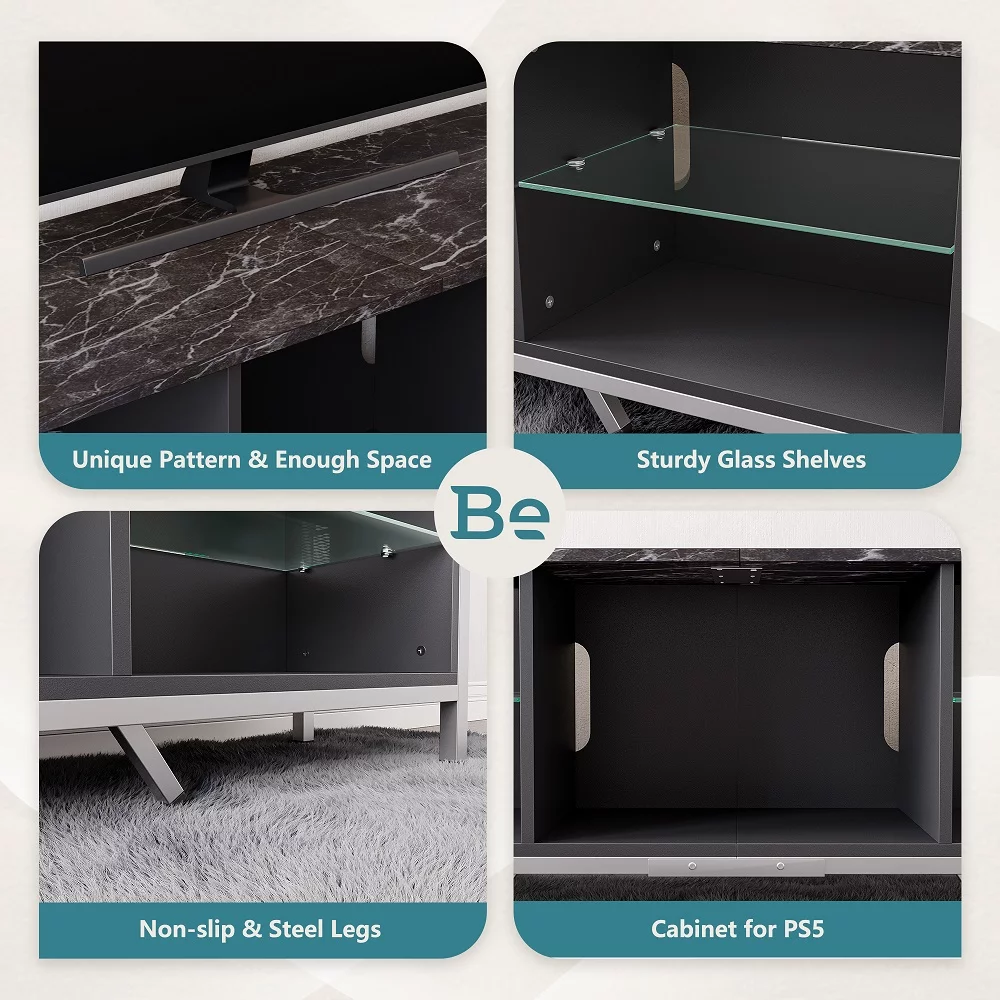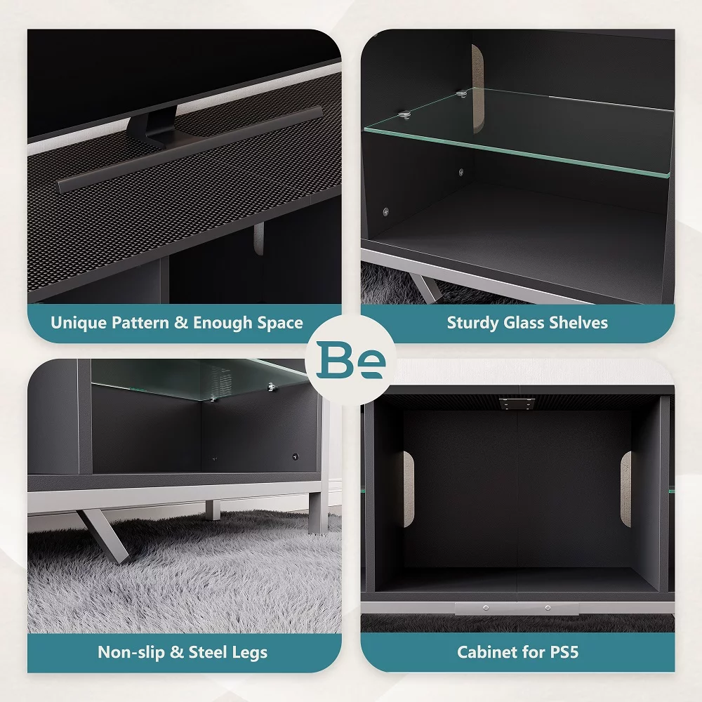 Bestier 70 TV Stand for TVs up to 80 with LED Lights Modern Gaming Entertainment Center, Black