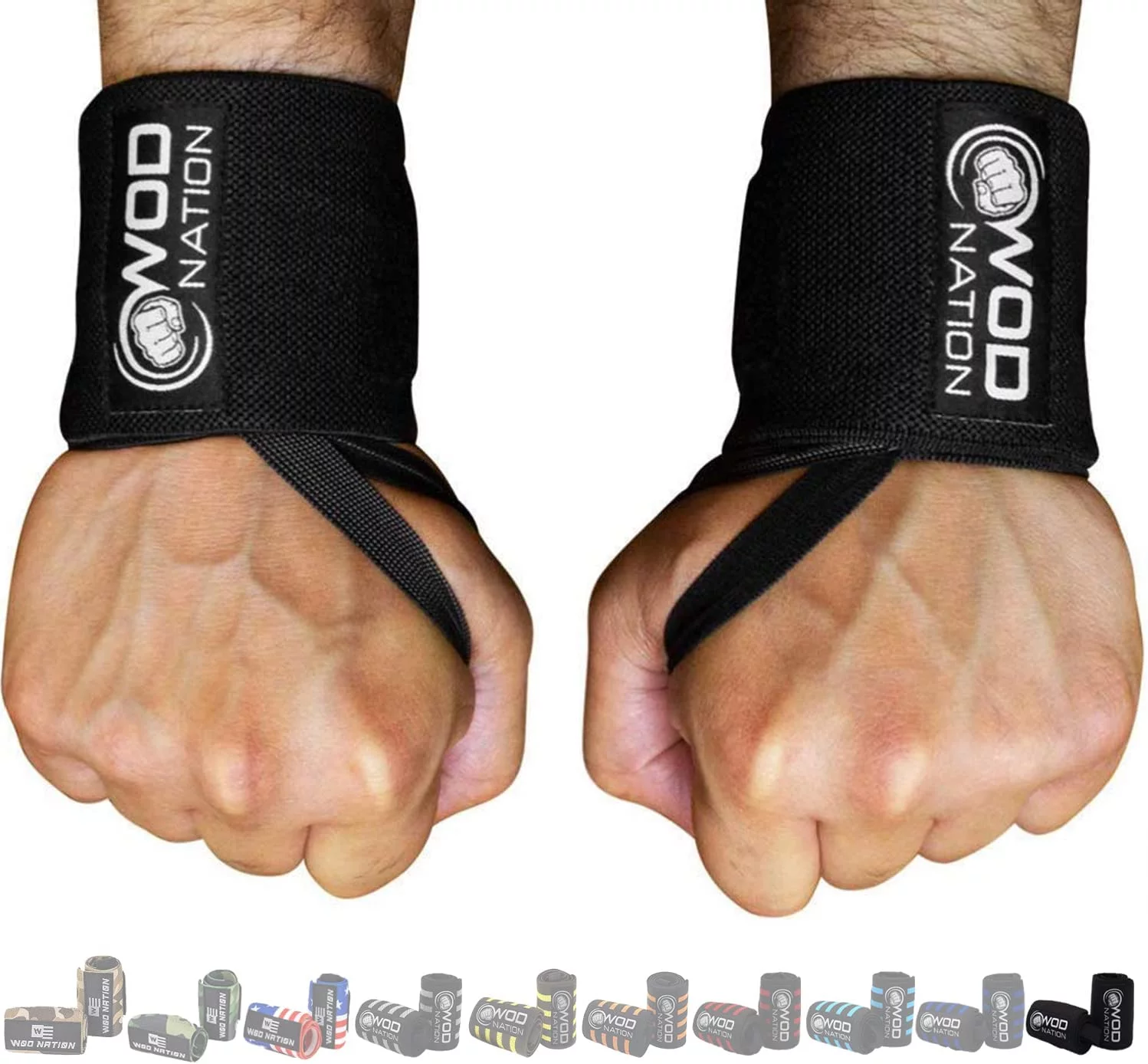 WOD Nation 12 Weightlifting Wrist Wraps for Men & Women, Set of 2, Black, Wrist Strap Support for Strength Training, Bodybuilding, Endurance