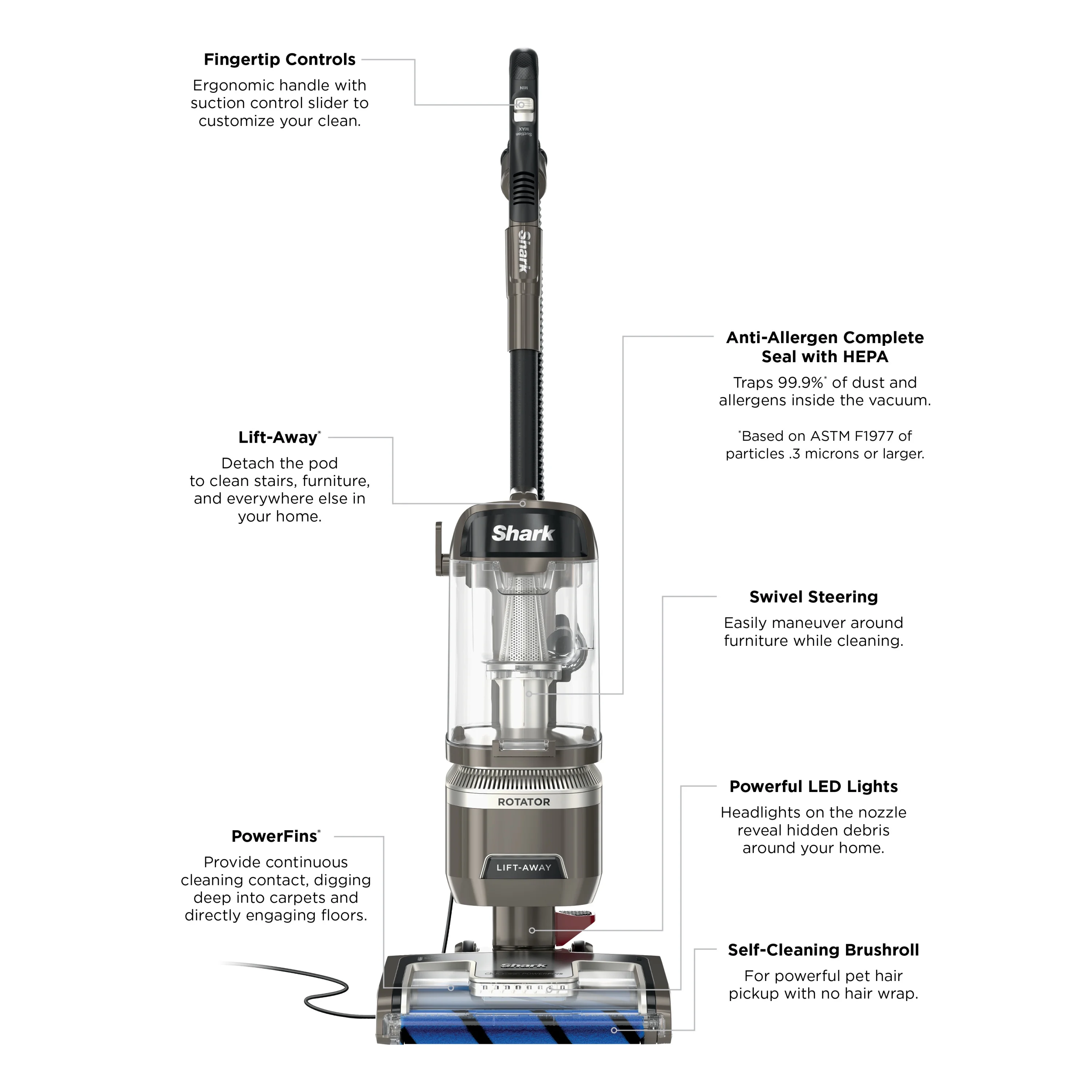 Shark Rotator Lift-Away Upright Vacuum with DuoClean PowerFins and Self-Cleaning Brushroll, LA500WM