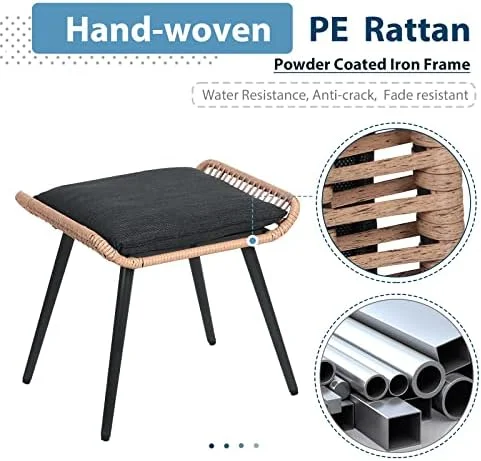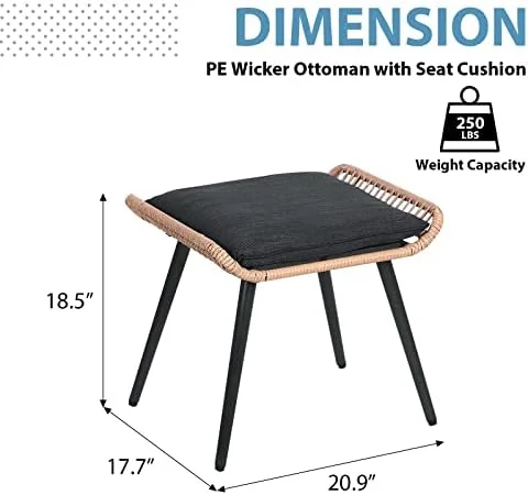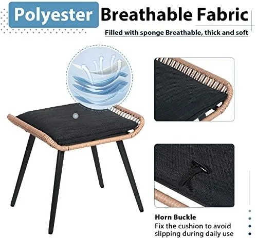 GEROBOOM Outdoor Wicker Ottoman Patio Rattan Ottomans with Seat Cushions 2 Pieces Footstool Footrest Seat for Outside Garden Balcony Living Room Gray - Curated Treasures Market