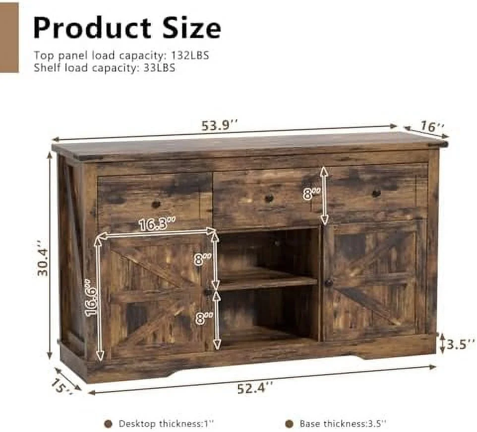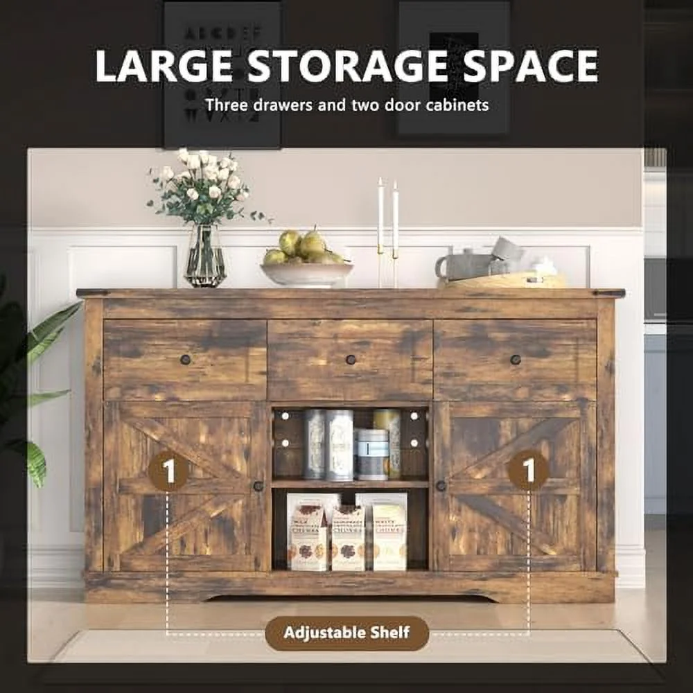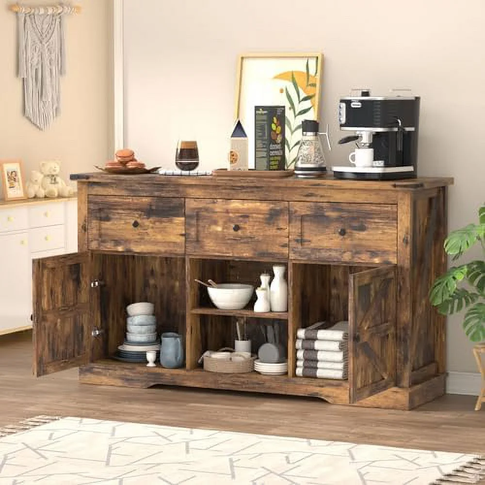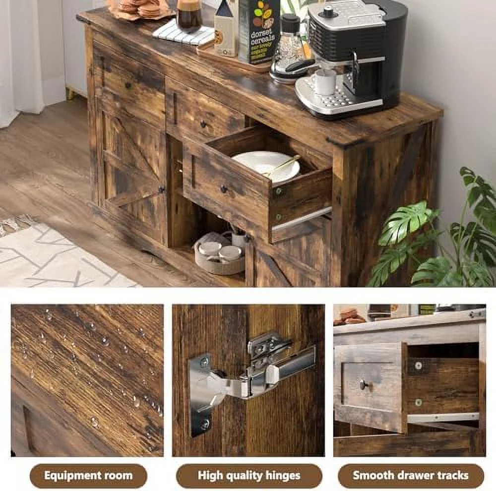 TJCGDTY Farmhouse Buffet 3 Drawers Cabinet with Morden Barn Doors Cabinets with Drawers and Shelves Coffee Cabinet for Kitchen Dining Room Living Room Brown - Curated Treasures Market