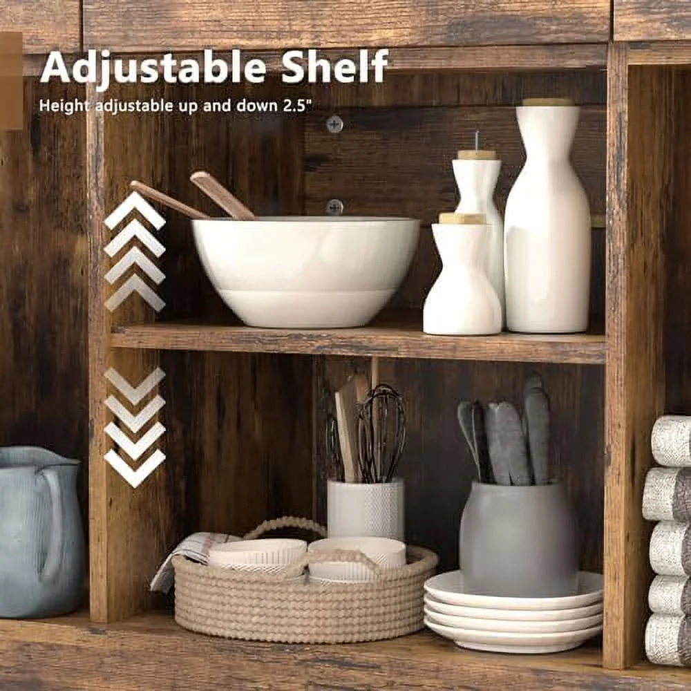 48.in Wood Oak Buffet Sideboard Accent Storage Cabinet - Curated Treasures Market