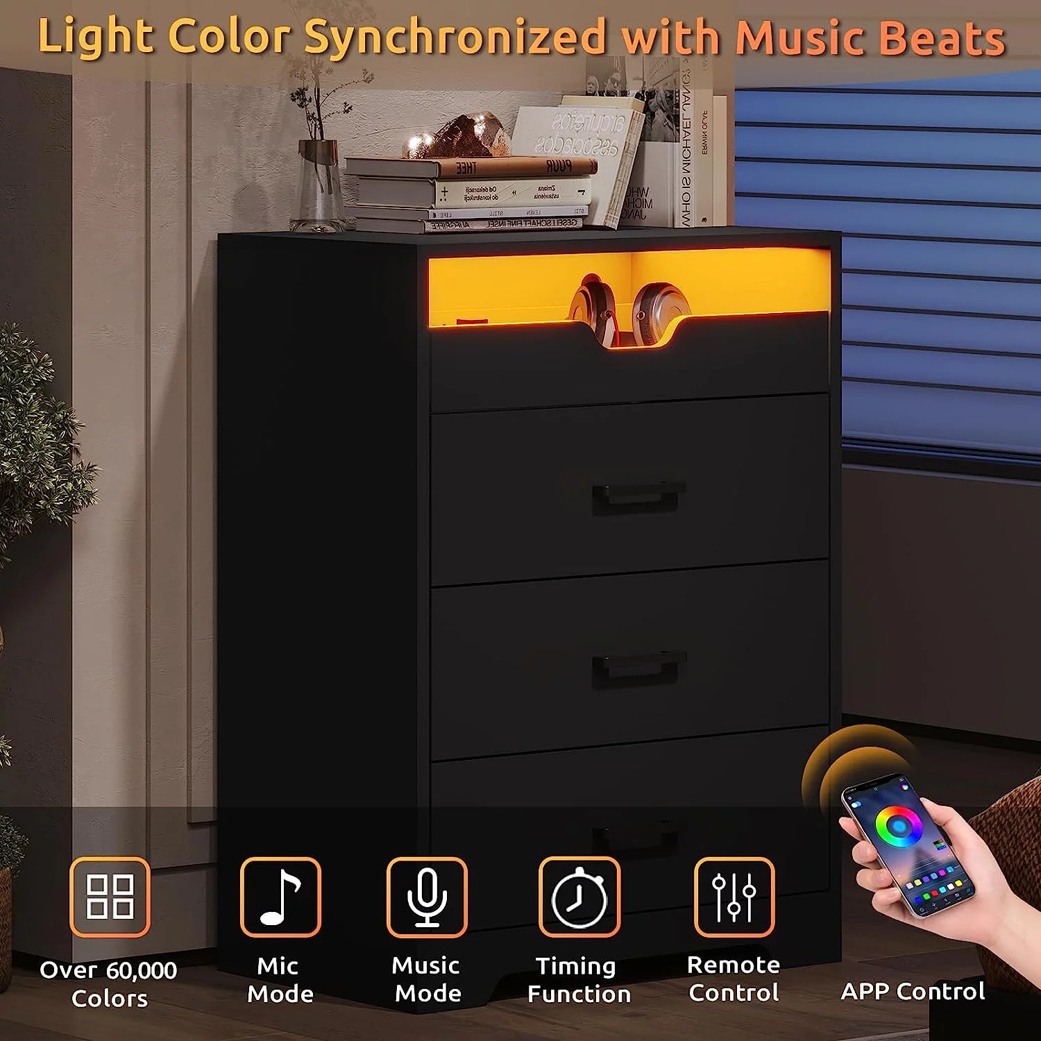 3 Drawers Dresser with LED Lights, Tall Dresser with Pull-Out Tray, Black