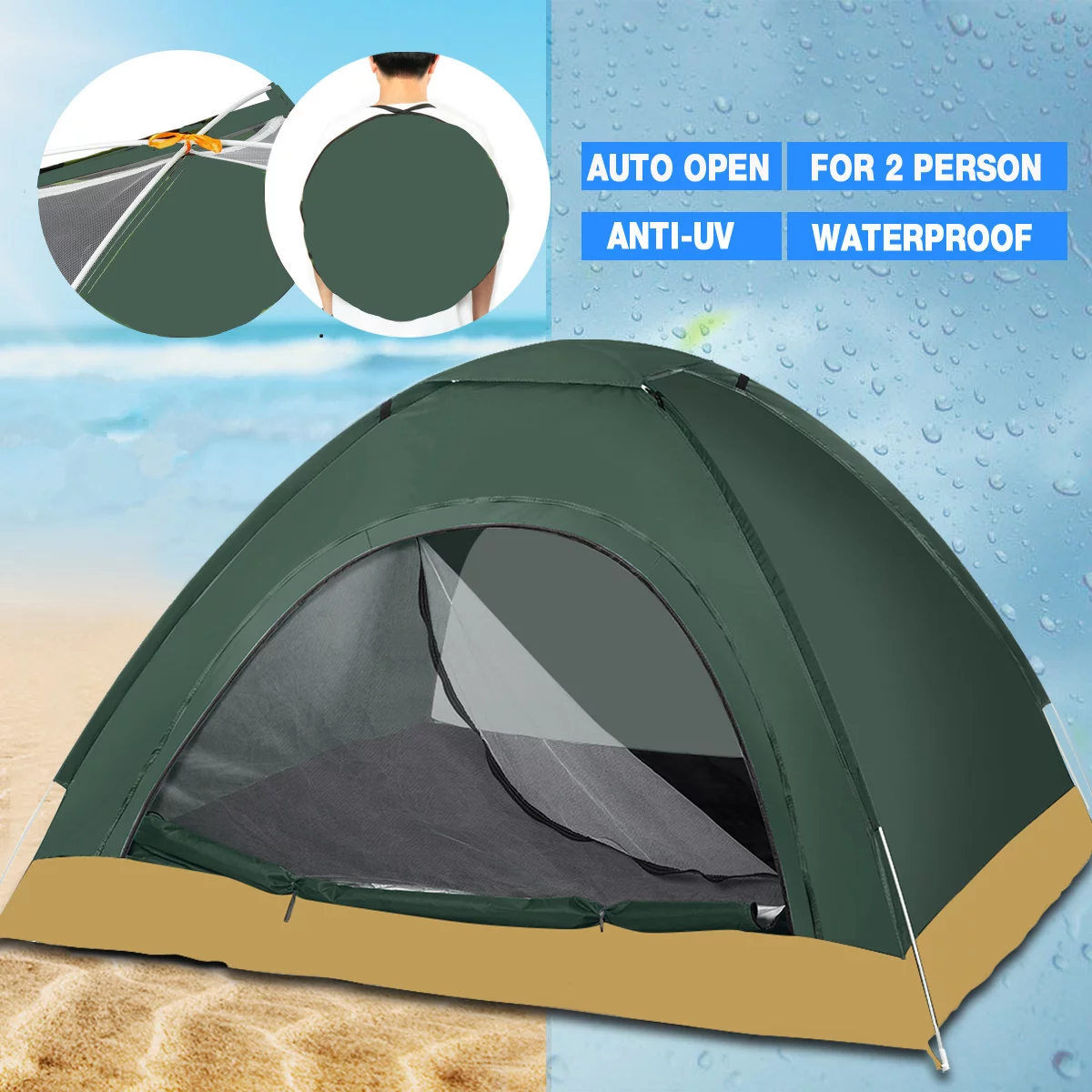 1-2 Person Camping Tent Family Automatic up Tent Folding Tent Rainproof Travel Outdoor Hiking Beach Fishing Picnic, for All Seasons
