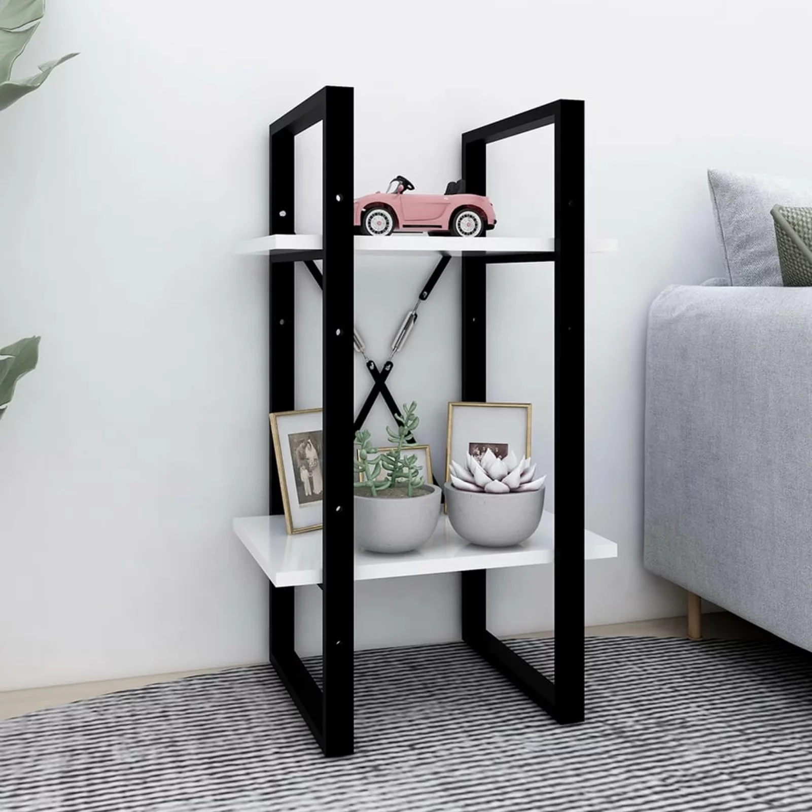 moobody 2-Tier Book Cabinet Chipboard Storage Shelf Bookcase Organizer Metal Frame Bookshelf White for Living Room, Bedroom, Home 15.7 x 11.8 x 27.6 Inches (W x D x H) - Curated Treasures Market
