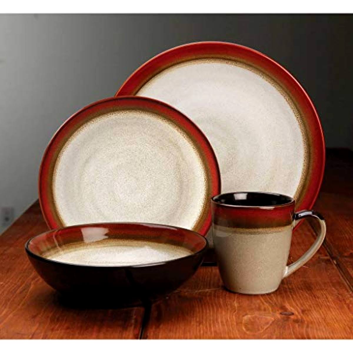 Gibson Couture Bands Reactive Glaze Dinnerware Set 16 Piece Red and Cream - Megean