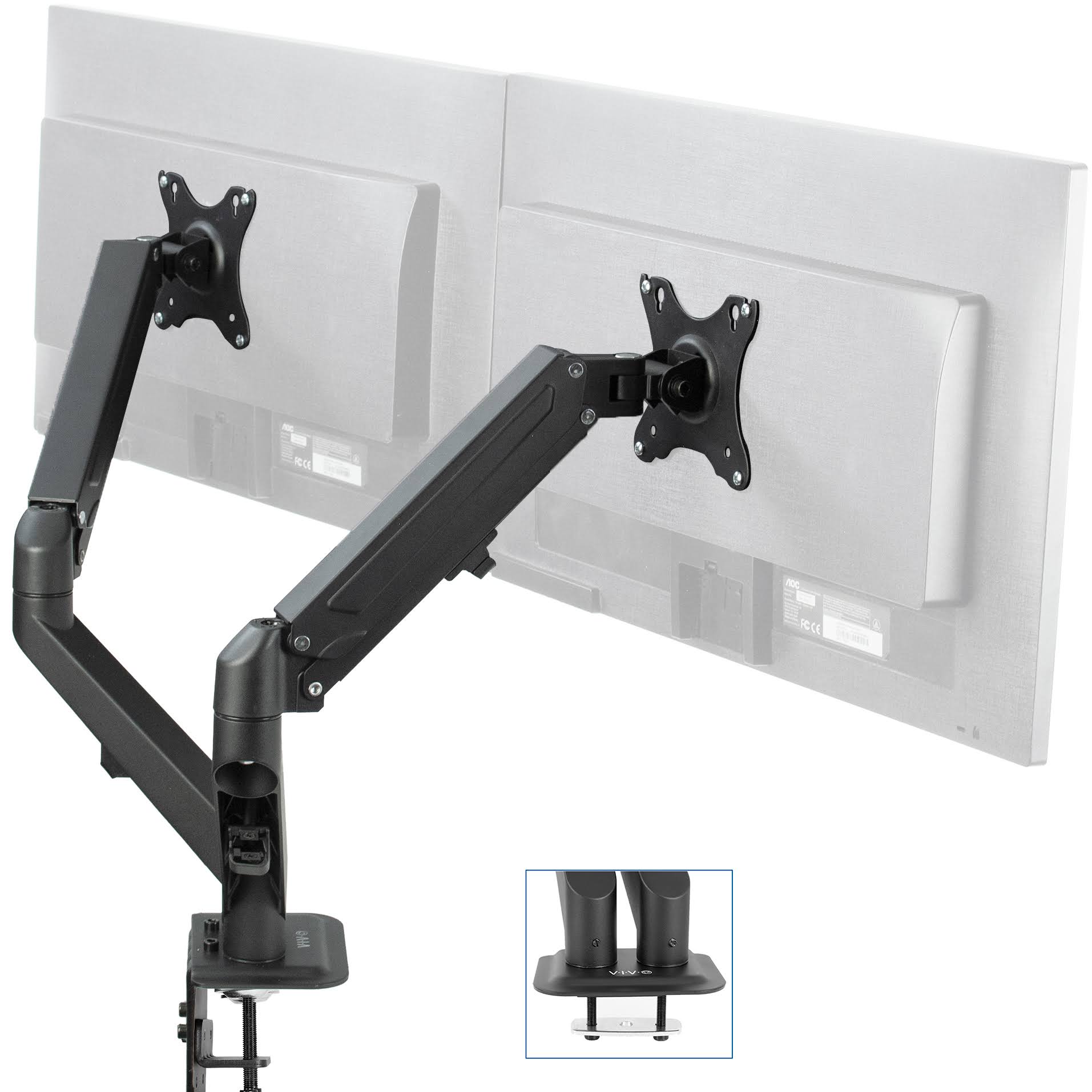 Vivo Dual Monitor Counterbalance Desk Mount Stand | Fits Screens 17 inch to 27 inch, Black - Megean
