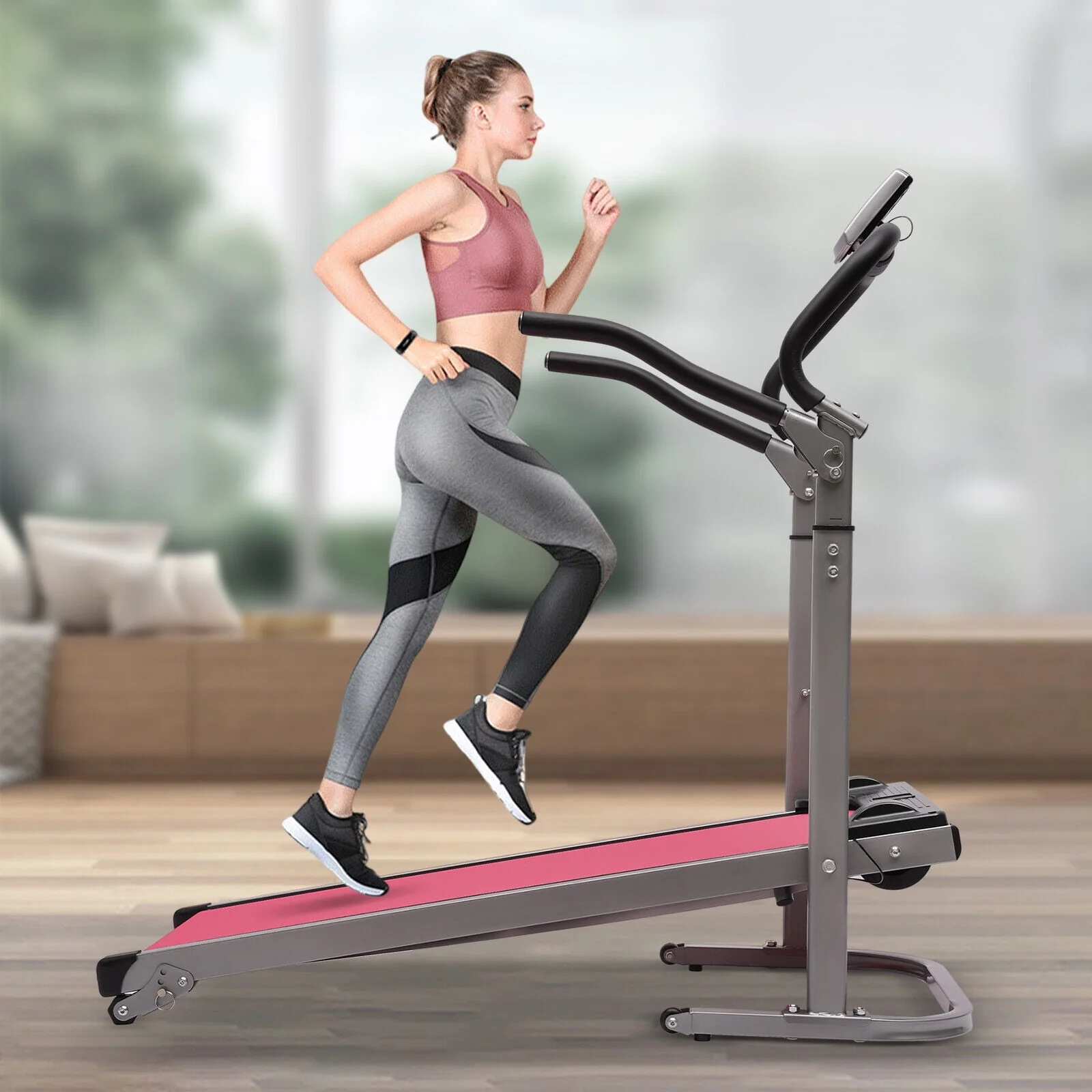 Oukaning 22'' Folding Treadmill with Incline LED Display 2 in 1 Walking Pad Treadmill Foldable Compact Treadmill Home Gym (Pink)