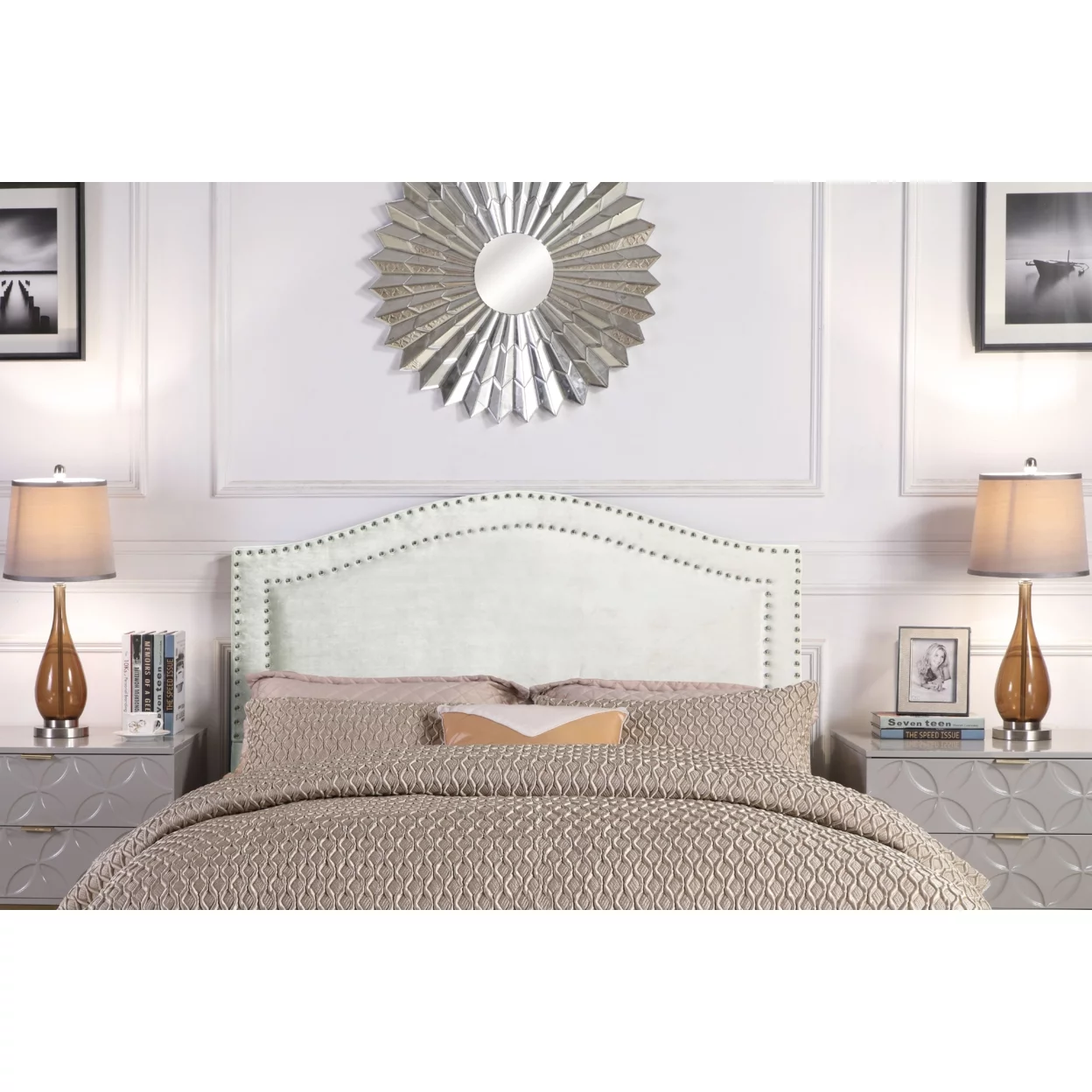 Godiva Headboard Velvet Upholstered Double Row Silver Nailhead Trim