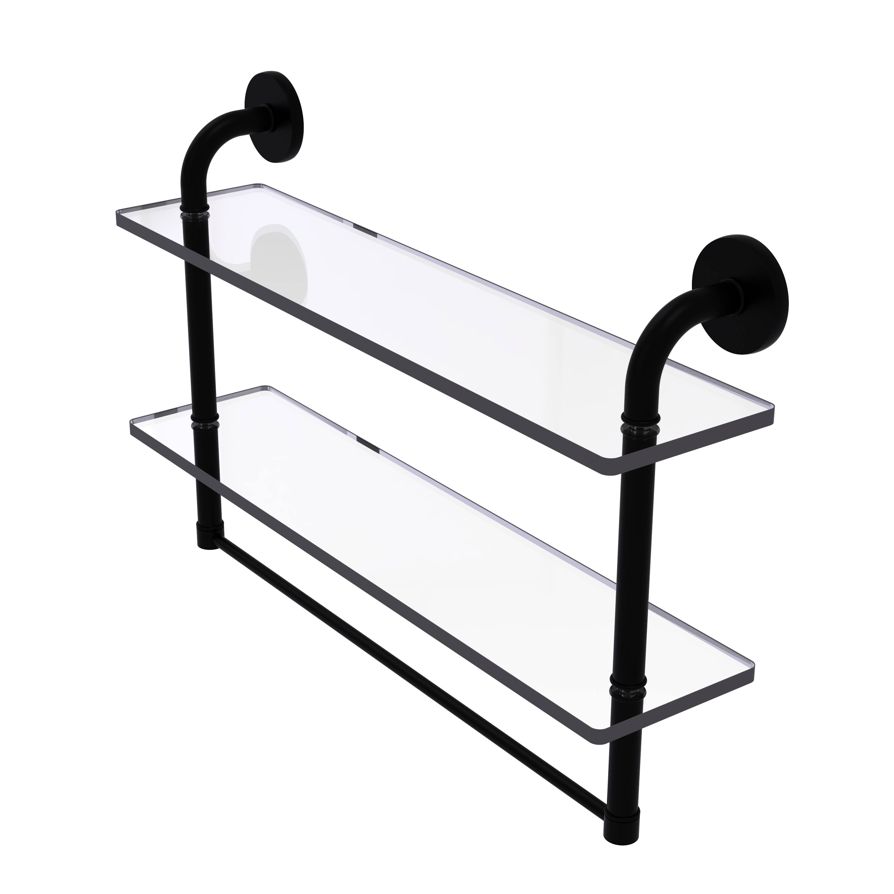 Allied Brass Remi Collection Two Tiered Glass Shelf with Integrated Towel Bar - Matte Black - 22 inch - Megean