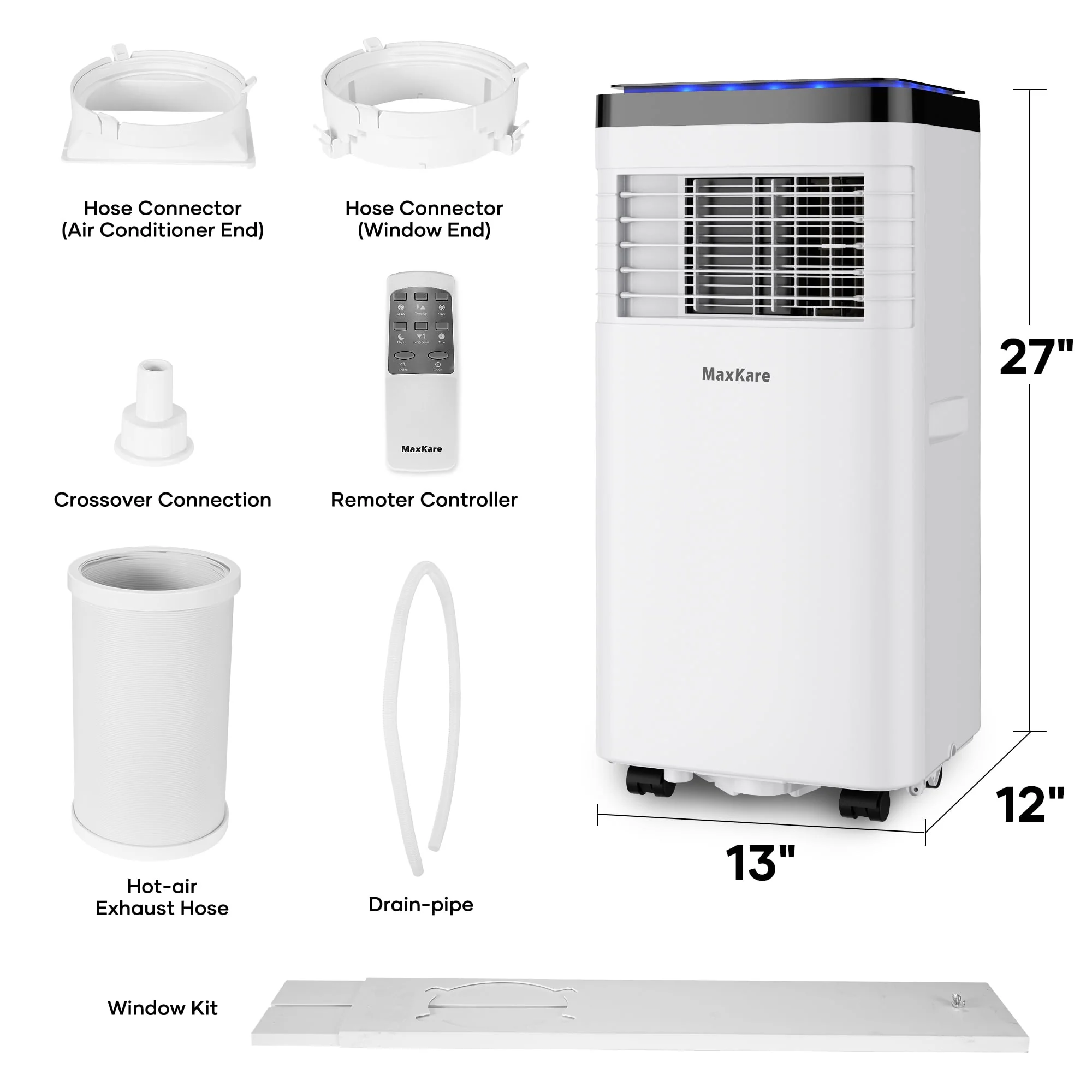 MaxKare Portable Air Conditioner, 8000 BTU with Cooler, Dehumidifier Cooling Rooms up to 150 Sq.ft with Remote Control
