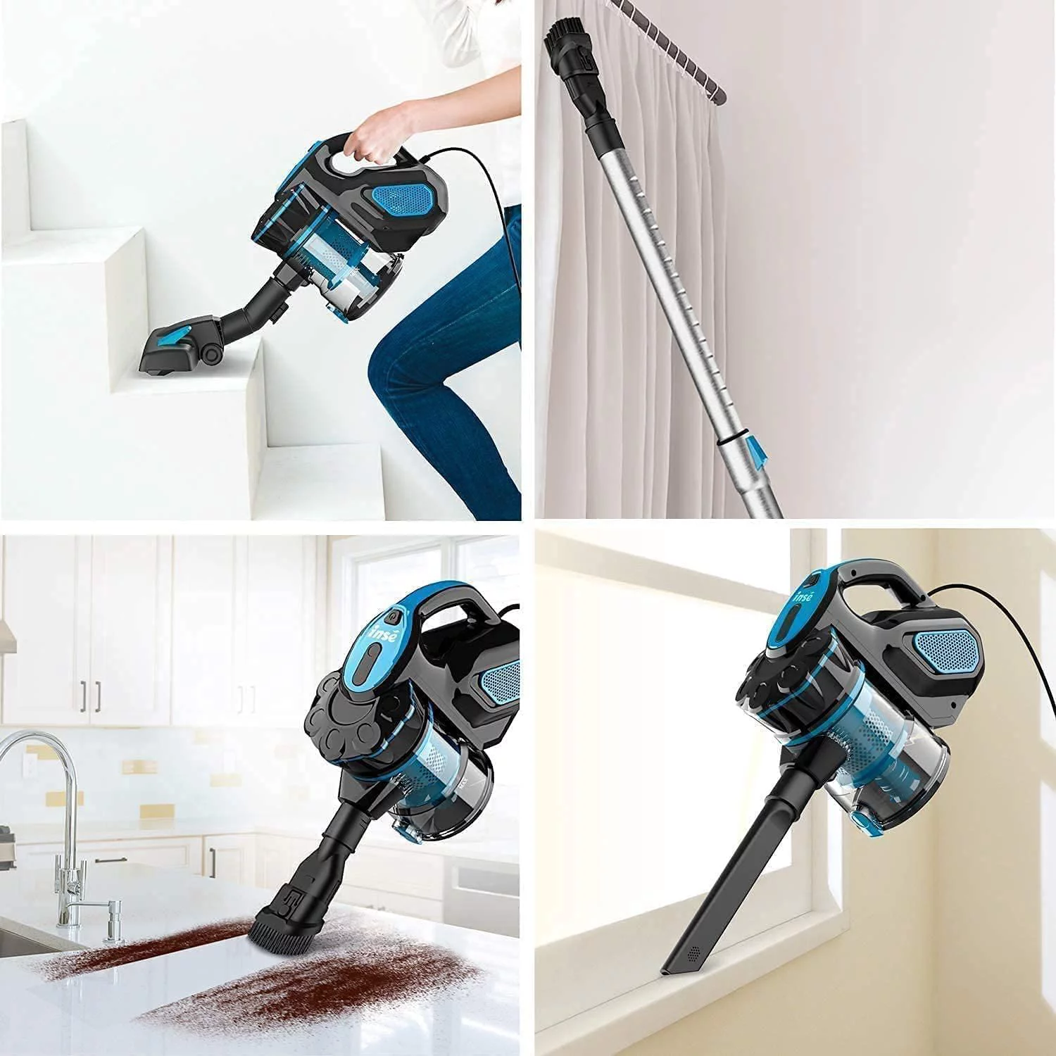 INSE Corded Stick Vacuum Cleaner, 16kPa Powerful Suction 2 in 1 Lightweight Bagless Handheld Vacuum Cleaner for Hard Floors Carpet Car, Blue