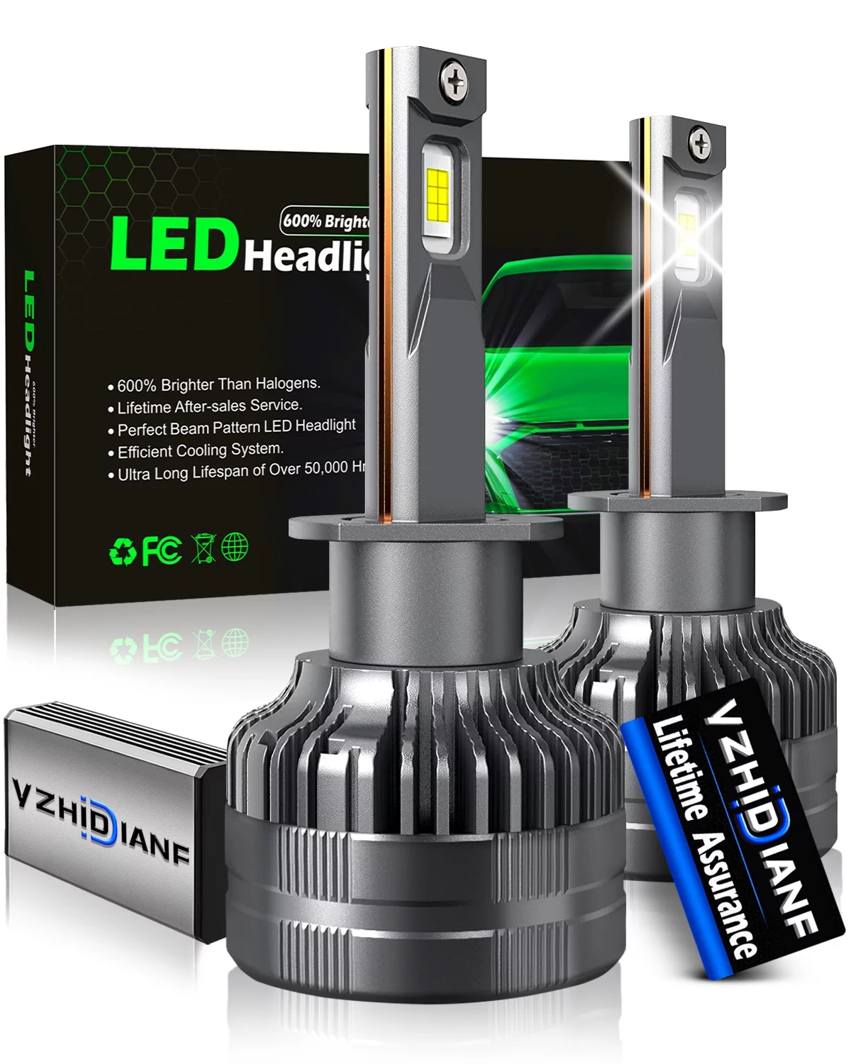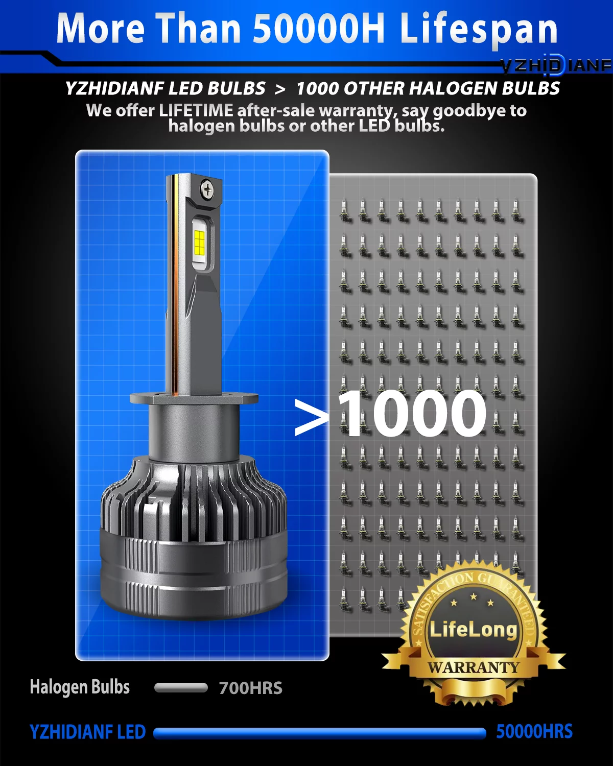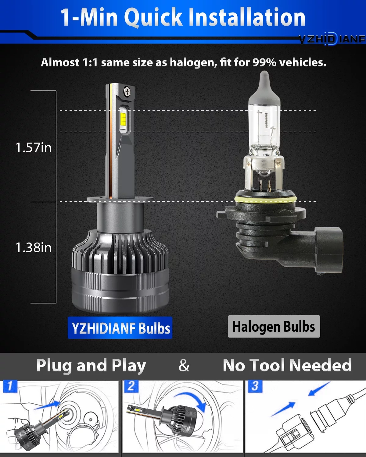 YZHIDIANF 2023 Upgraded H1 LED Headlight Bulbs - 120W 22000 Lumens Huge Bright LED Headlights Conversion Kit 6500K Cool White IP68 Waterproof, High Beam, Low Beam, Fog Light (2 PACK)