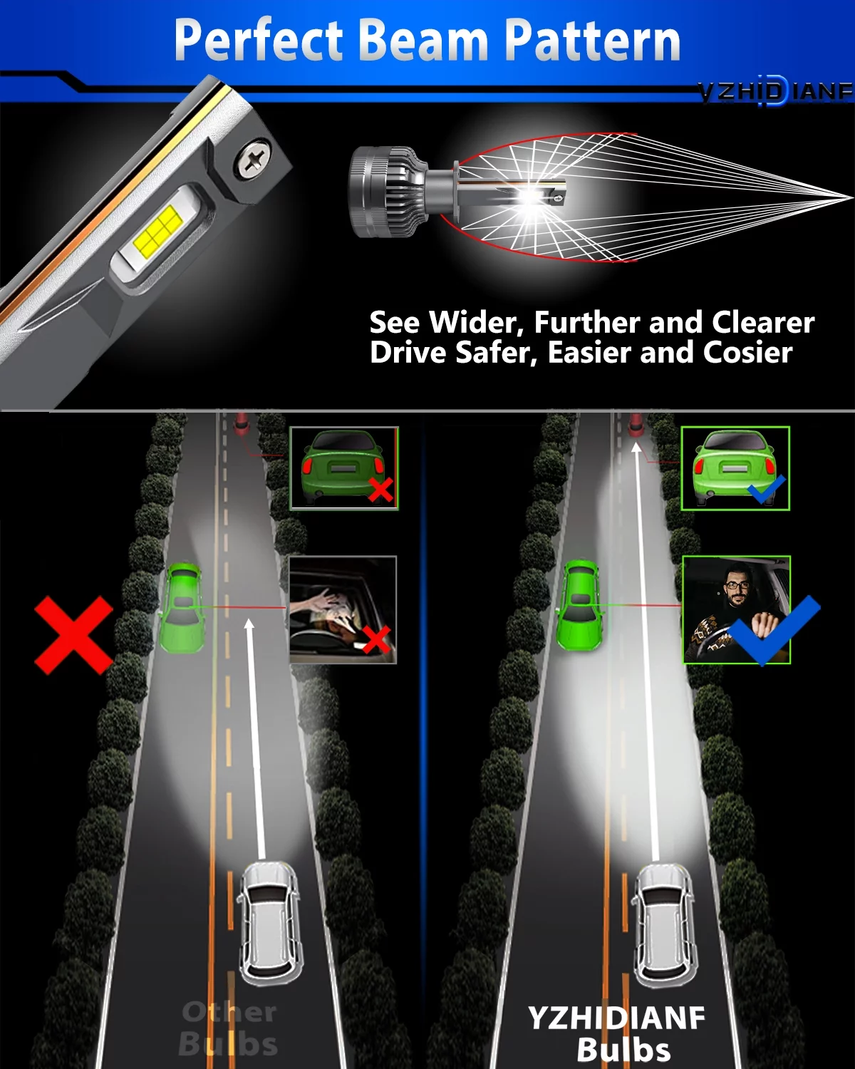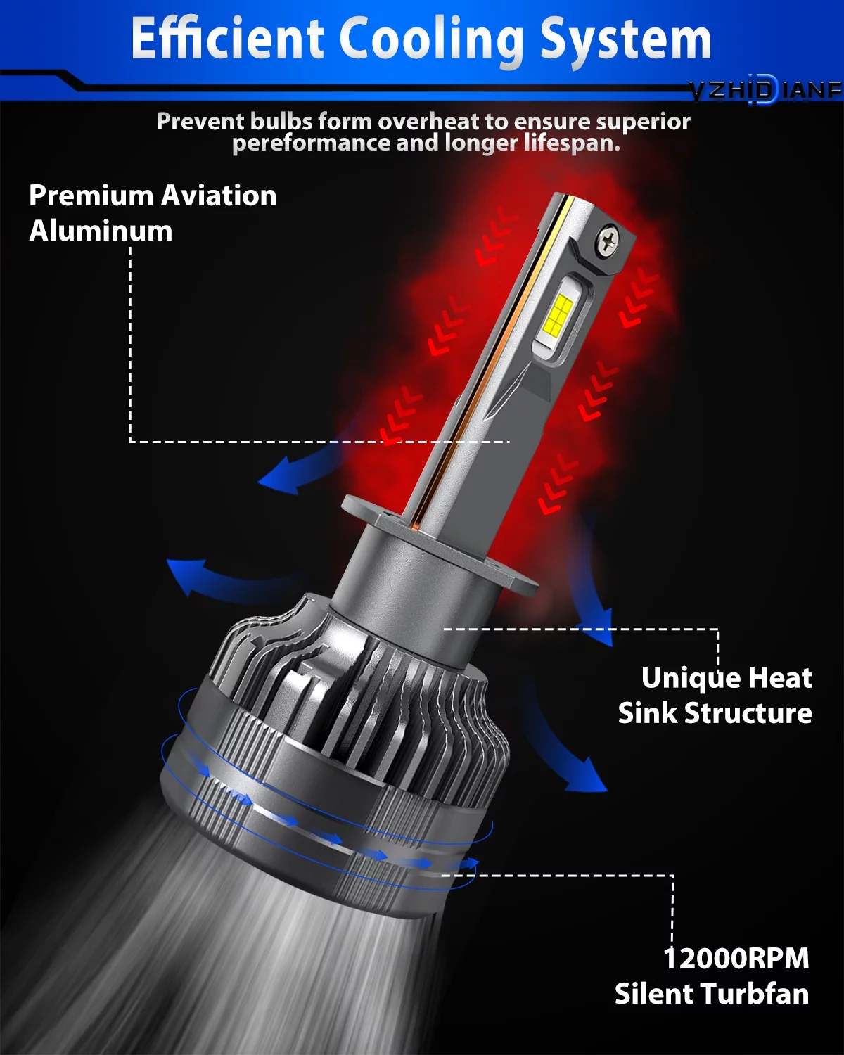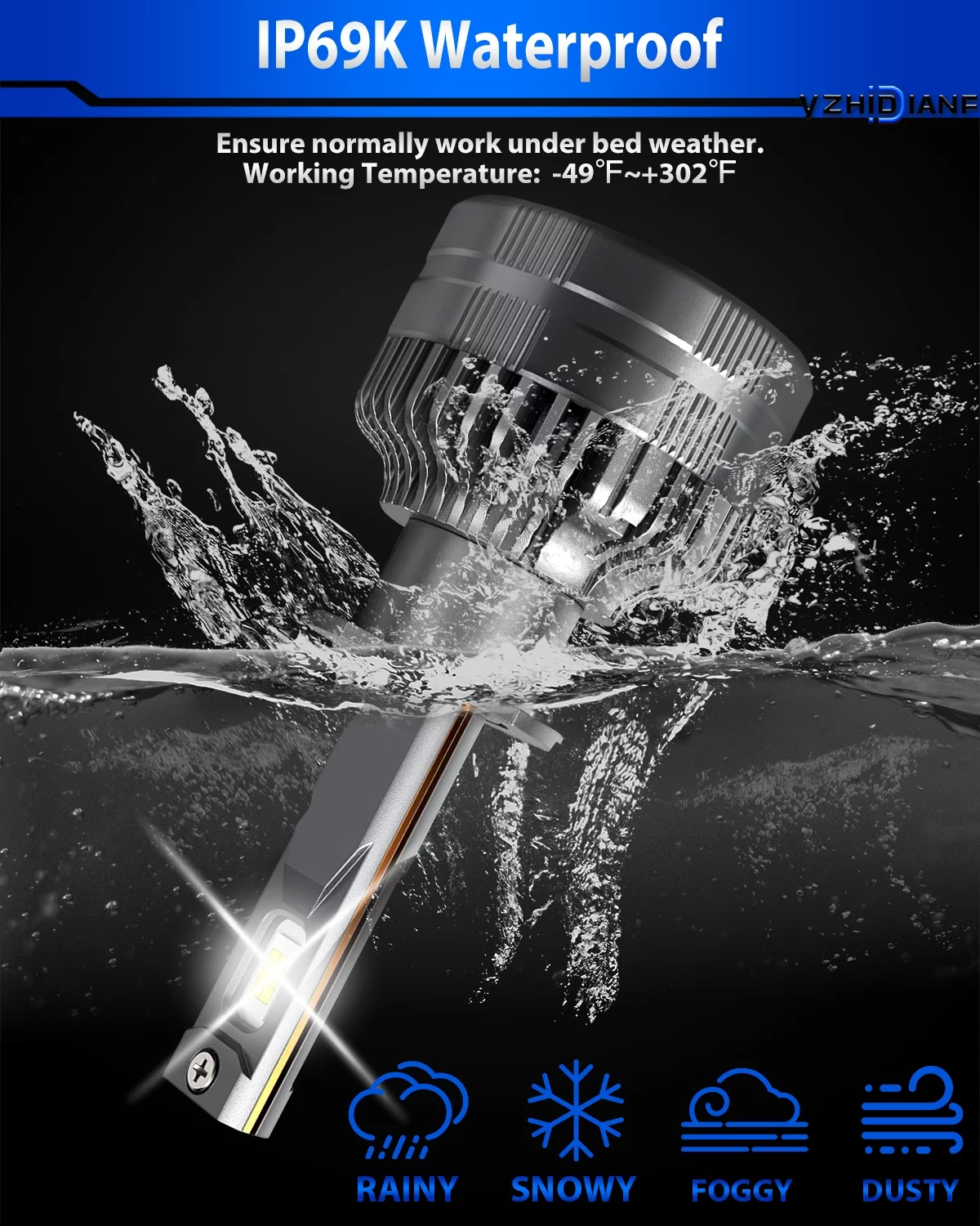 YZHIDIANF 2023 Upgraded H1 LED Headlight Bulbs - 120W 22000 Lumens Huge Bright LED Headlights Conversion Kit 6500K Cool White IP68 Waterproof, High Beam, Low Beam, Fog Light (2 PACK)