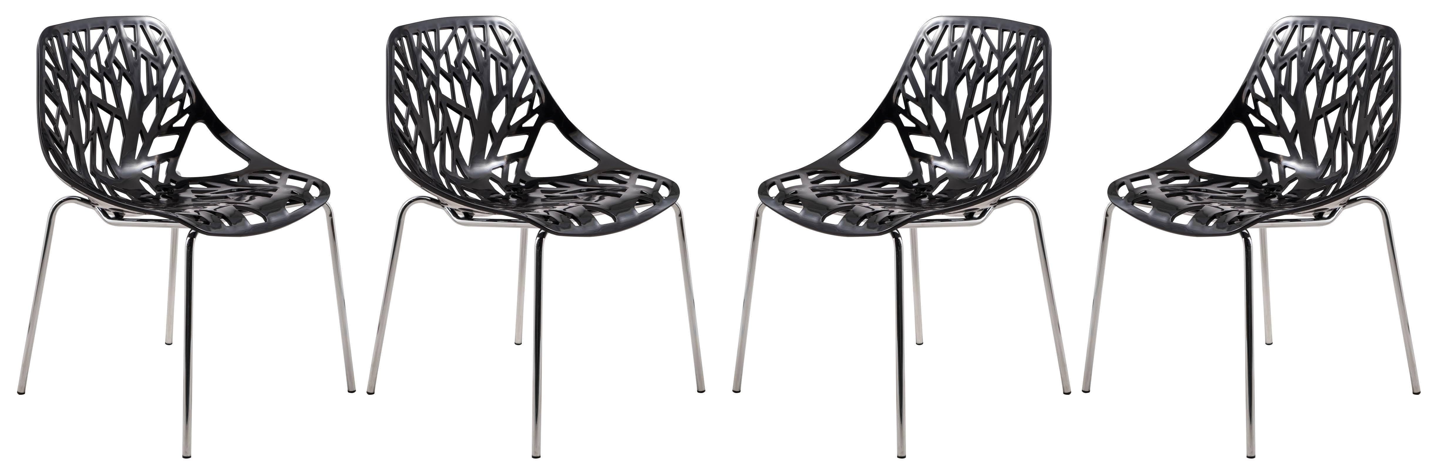 LeisureMod Modern Asbury Set of 4 Dining Chair with Chromed Legs Ac16bl4, Black - Megean