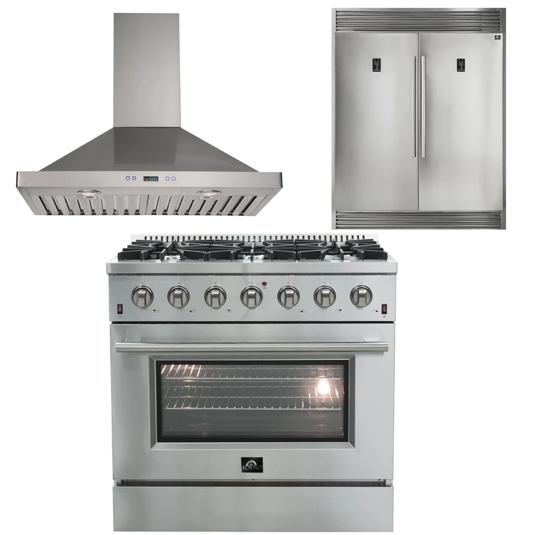Forno Appliance Package - 36 Inch Gas Range, Wall Mount Range Hood, 60 Inch Refrigerator, AP-FFSGS6244-36-W-4