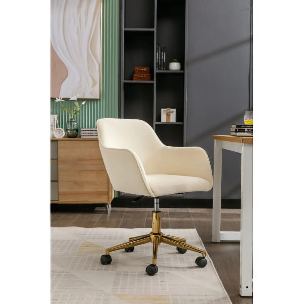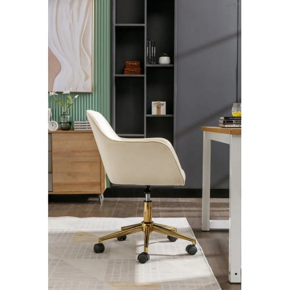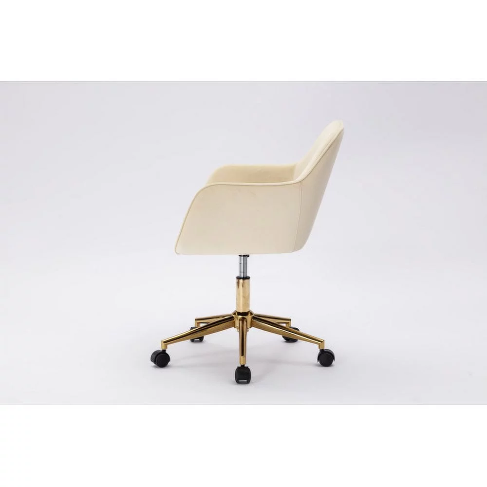 DremFaryoyo Modern Velvet Fabric Adjustable Height revolving Home Office Chair with Gold Metal Legs and Universal Wheels for Indoor Aqua Light Blue - Curated Treasures Market