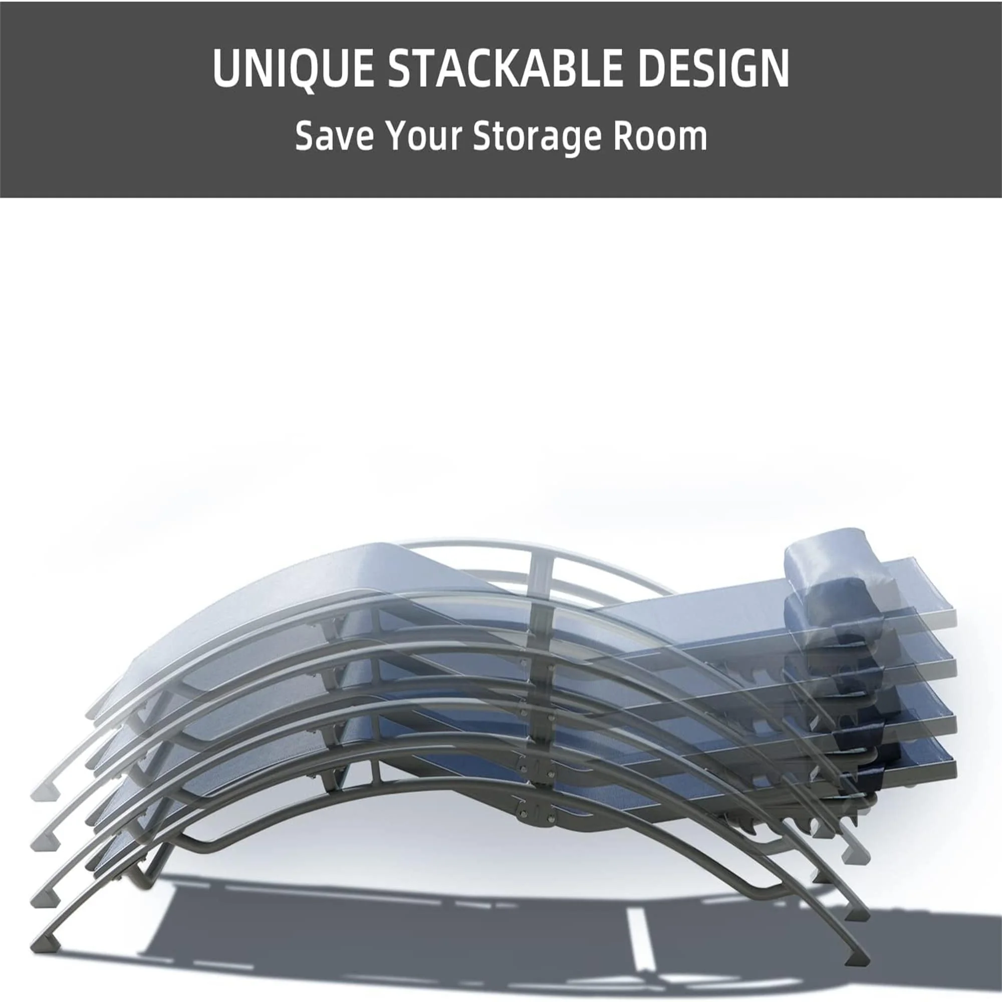Adjustable Aluminum Chaise Lounge Chairs with Metal Side Table,Set of 3 Navy Blue - Curated Treasures Market