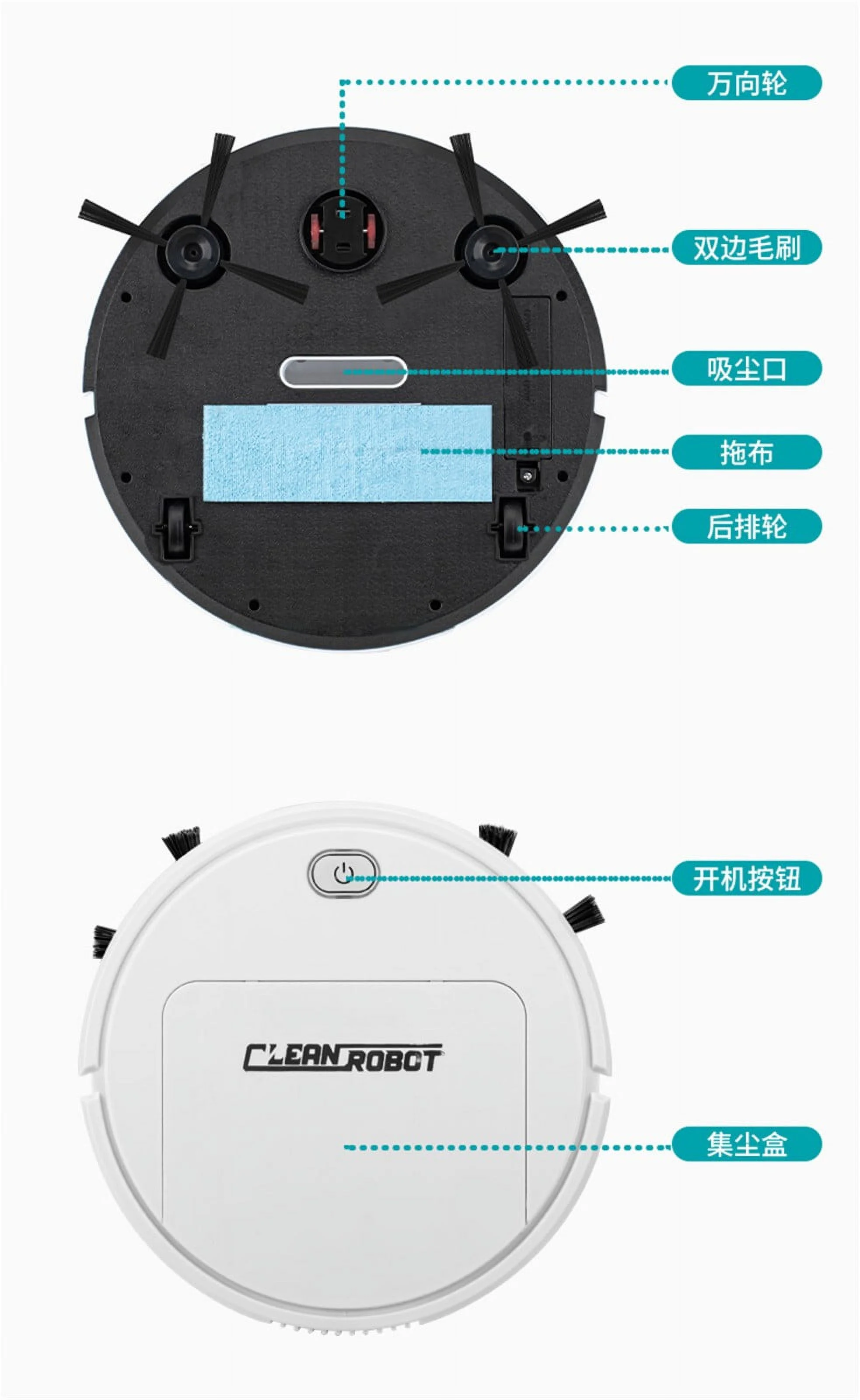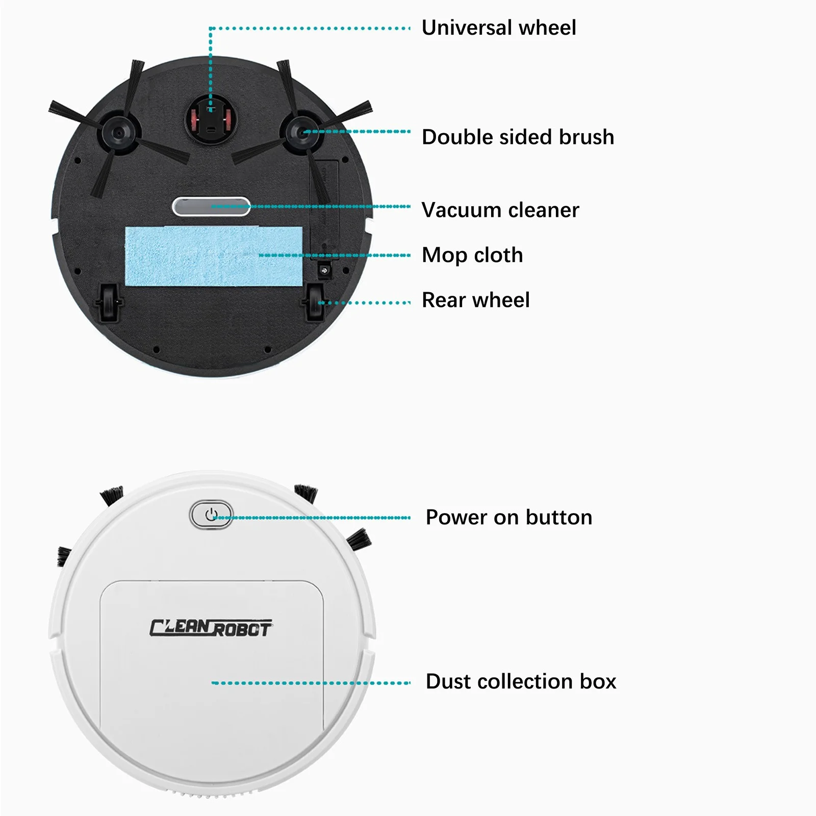 Ruimatai Clearance 3 In 1 Robotic Cleaner With /Dustbin/Brush, Blocked By Hair, Ideal For Hard Floor/Pet