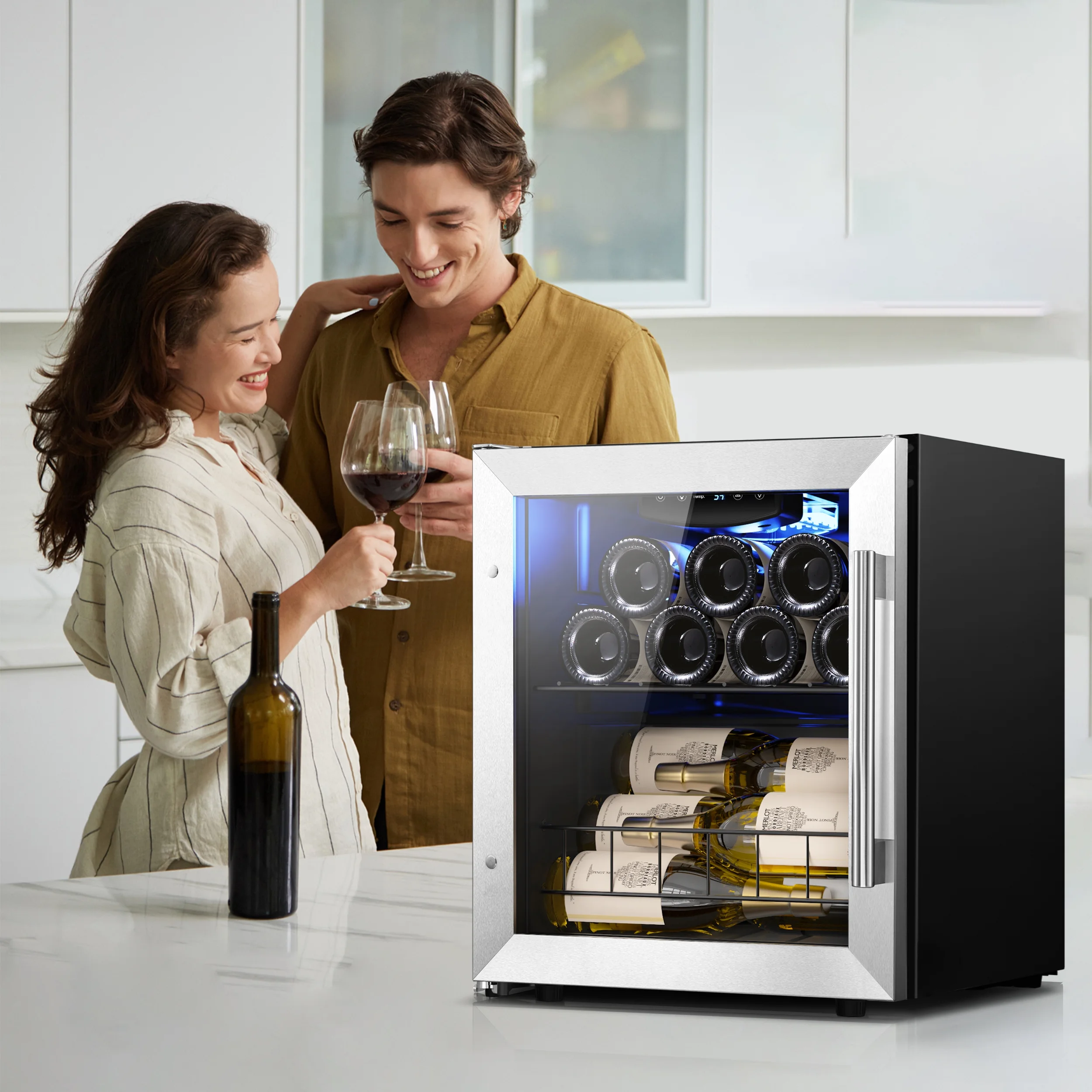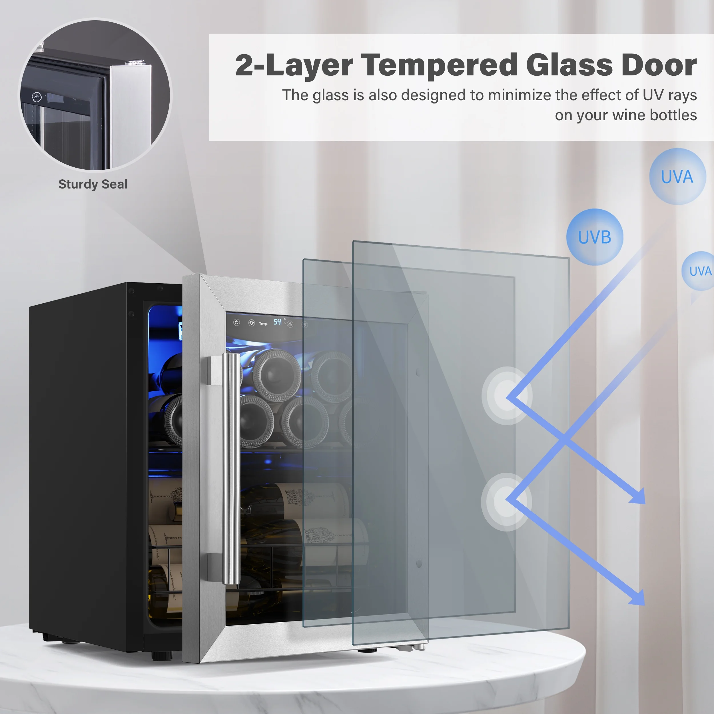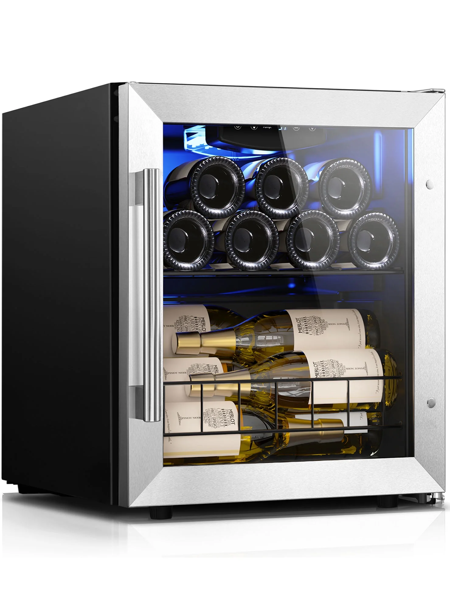 Yeego Wine Refrigerator, Freestanding Mini Wine Cooler with Glass Door, 12 Bottle