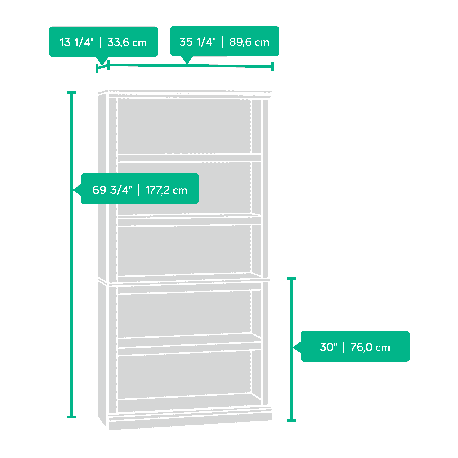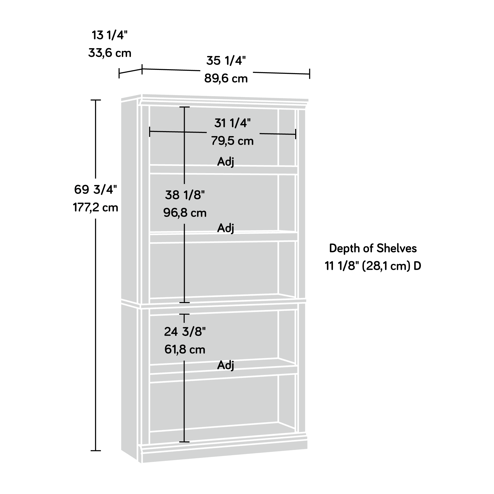 Sauder Select 5-Shelf Bookcase, Chalked Chestnut Finish