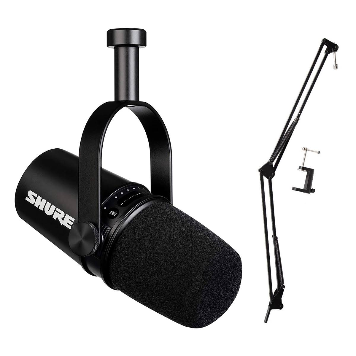 Shure MV7-K MV7 Podcast Microphone - Black with Buhnecaster Boom Arm - Megean