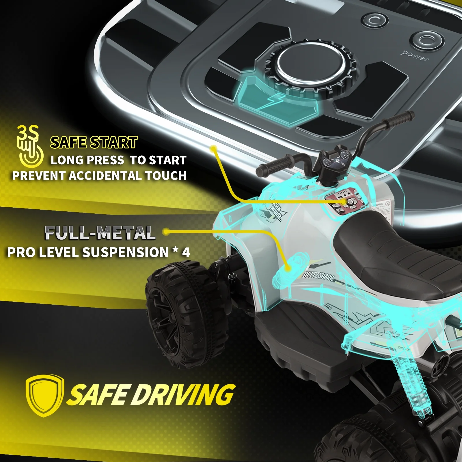 Blitzshark 24V Kids Ride on ATV 4WD Quad Powerful 4-Wheeler, with Big Battery, 6 MPH Speed, Metal Suspension, Police Rider