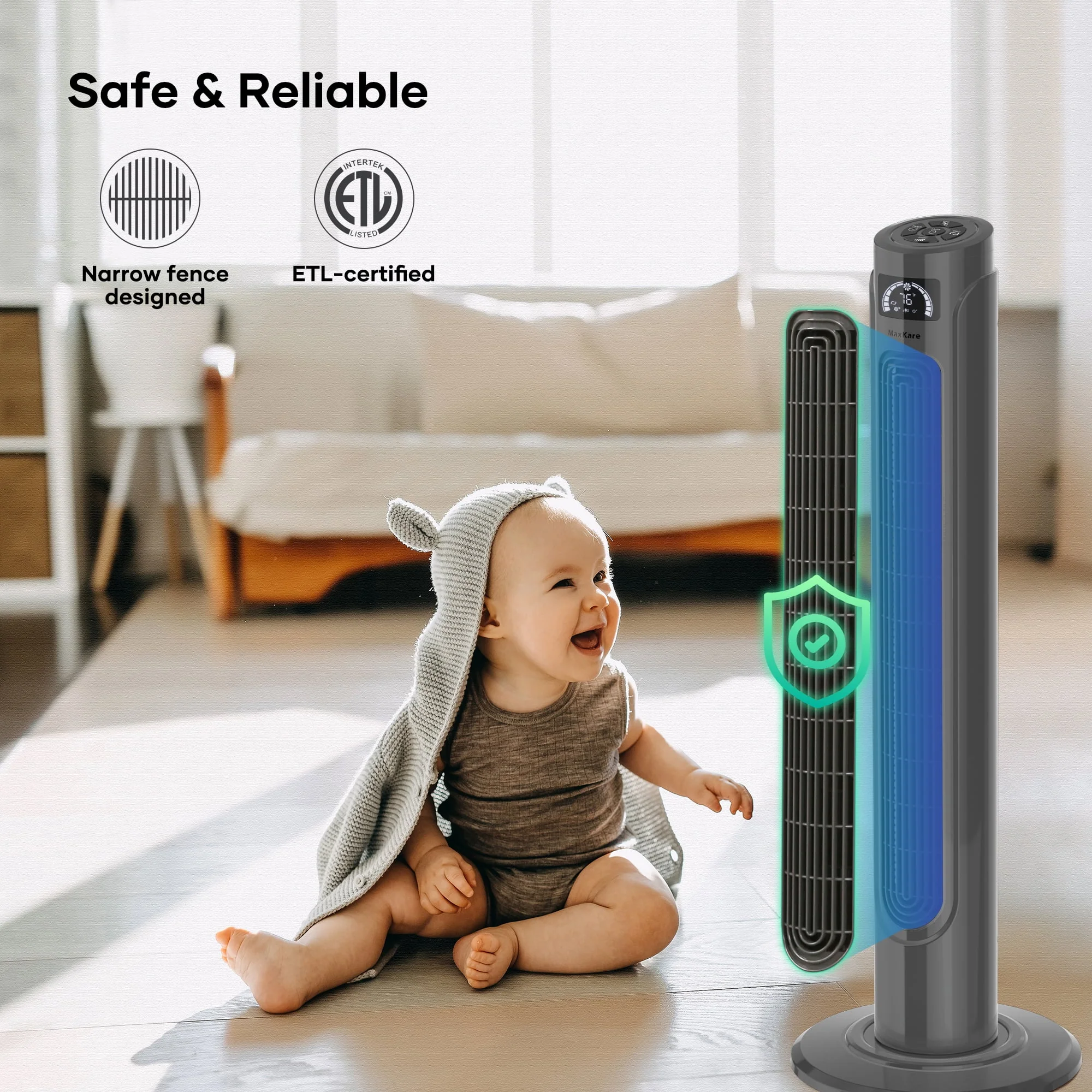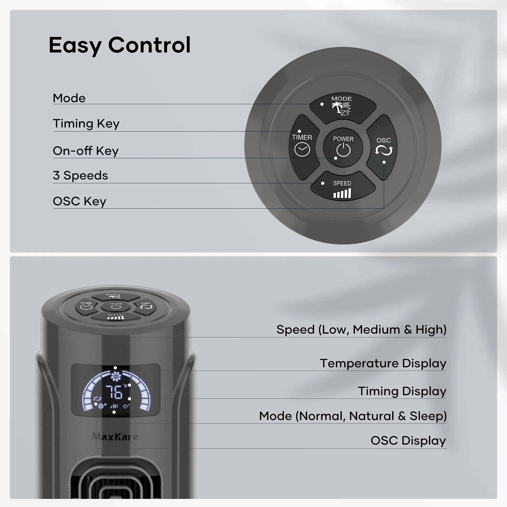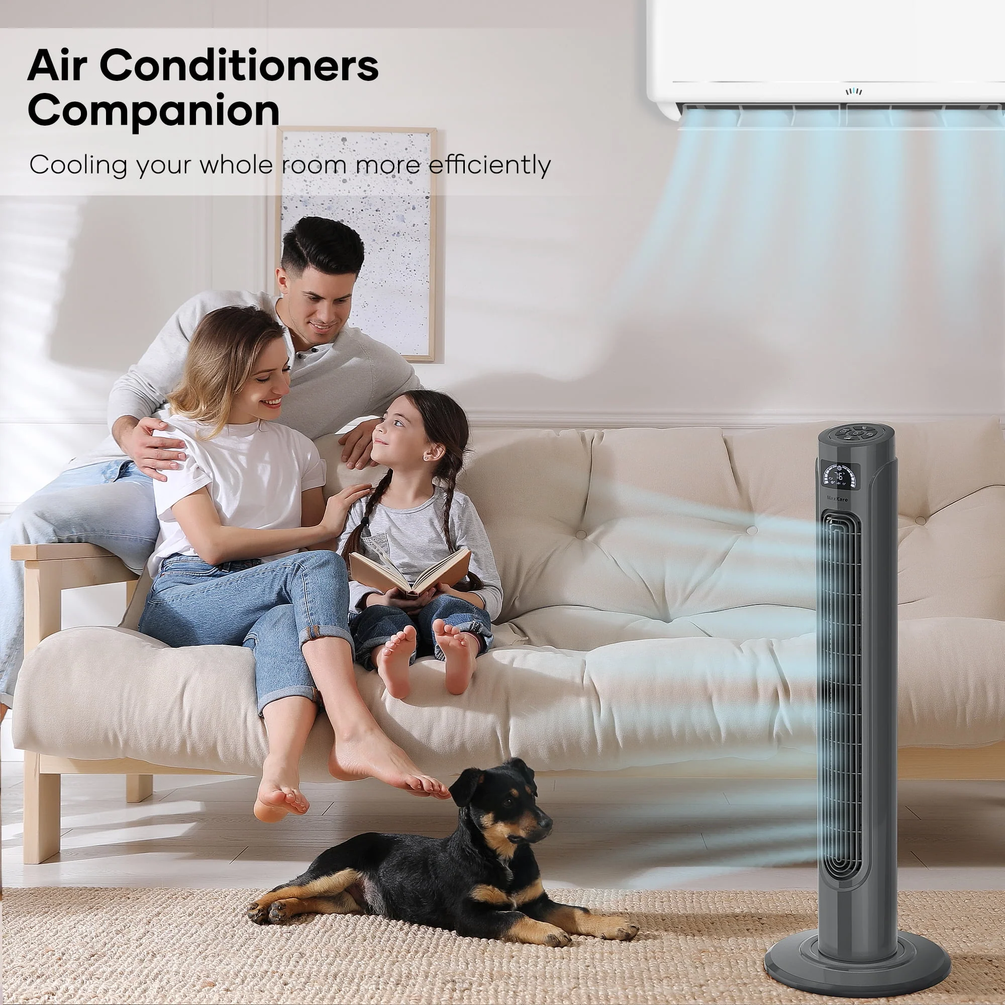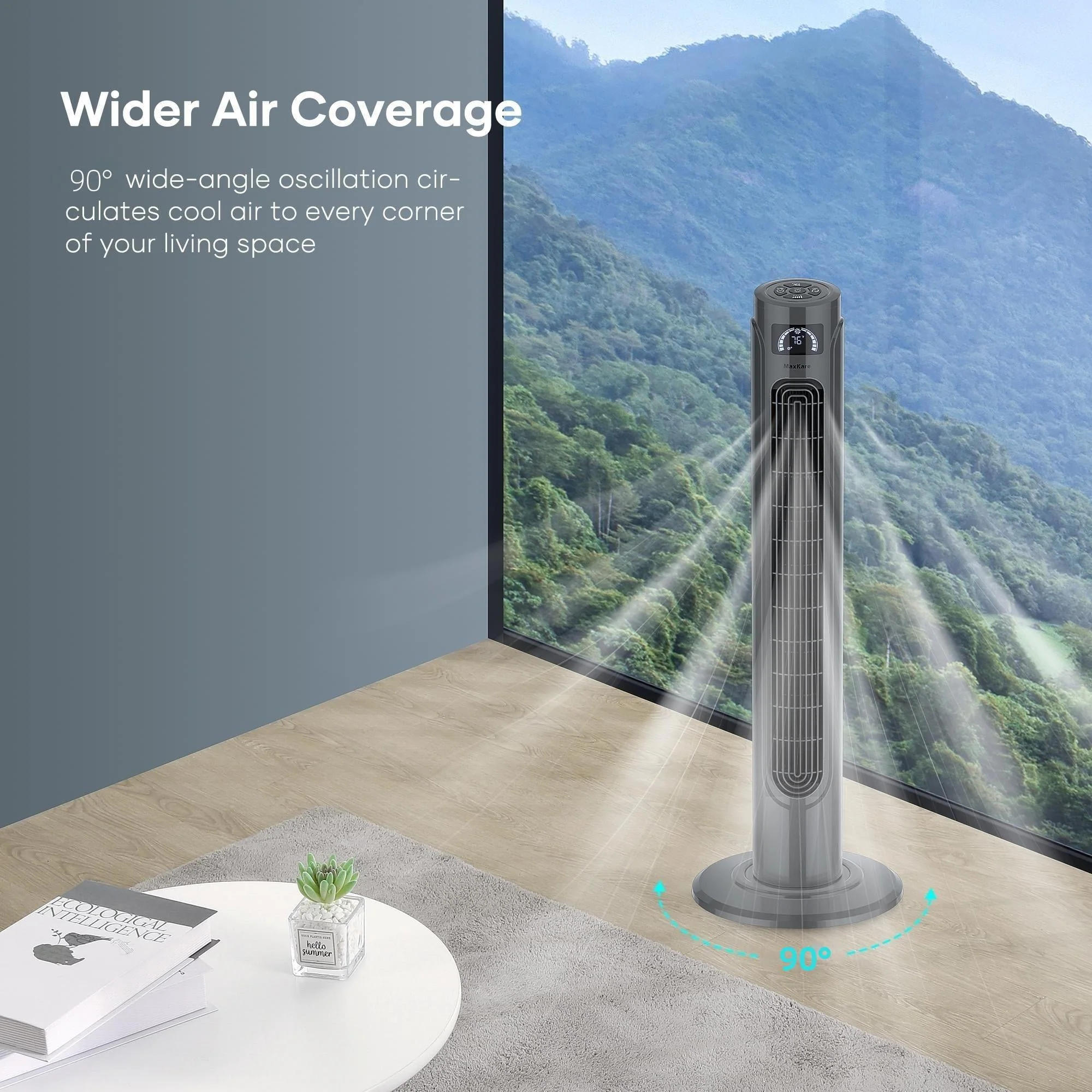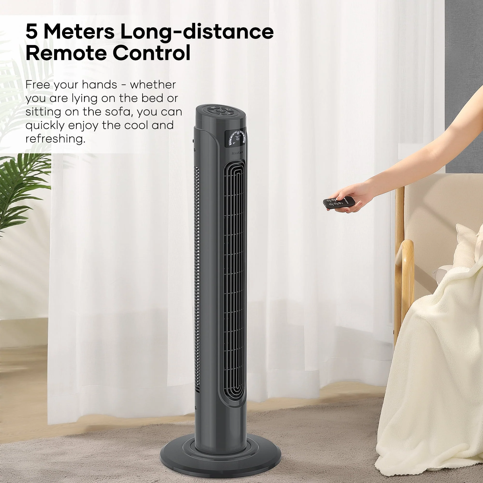 MaxKare 36 Tower Fan with Remote Controller, 3 Speeds 3 Modes 15H Timer Settings, 90° Oscillating, LED Display, 60dB Quiet Fan, Grey