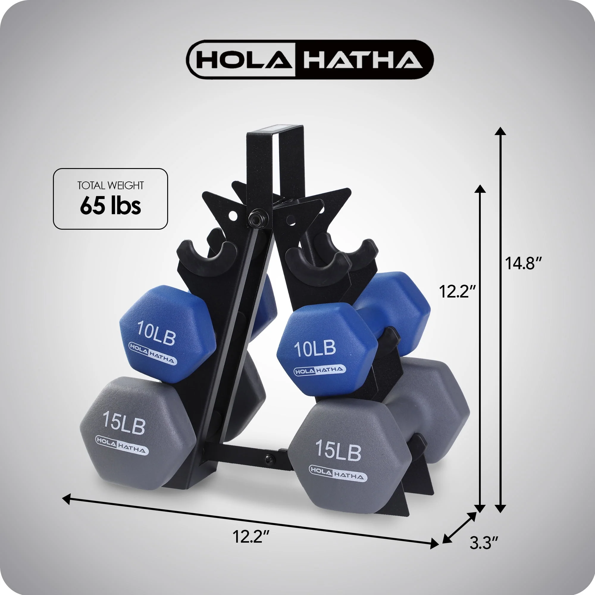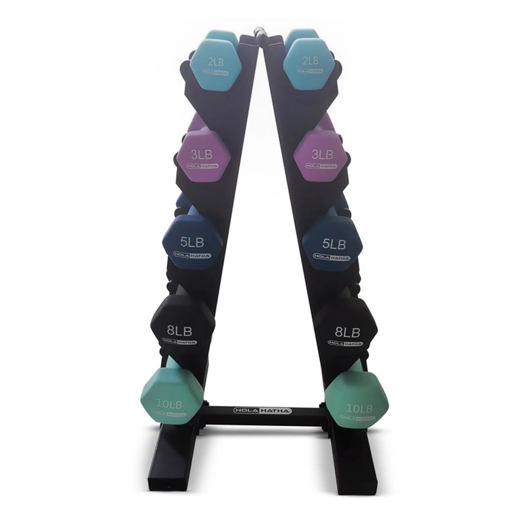 HolaHatha 3, 5, and 8 Pound Dumbbell Hand Weight Set with Storage Rack