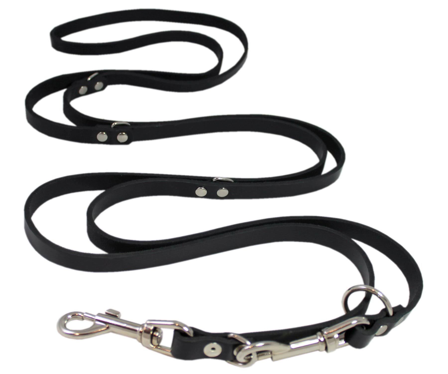 6-Way European Multifunctional Leather Dog Leash Medium Breeds, Adjustable Schutzhund Lead Black 60" - Megean