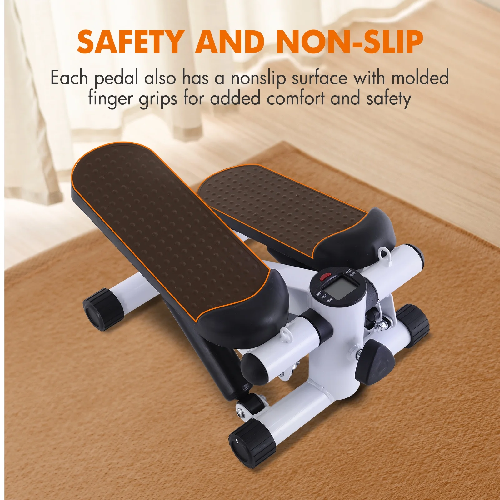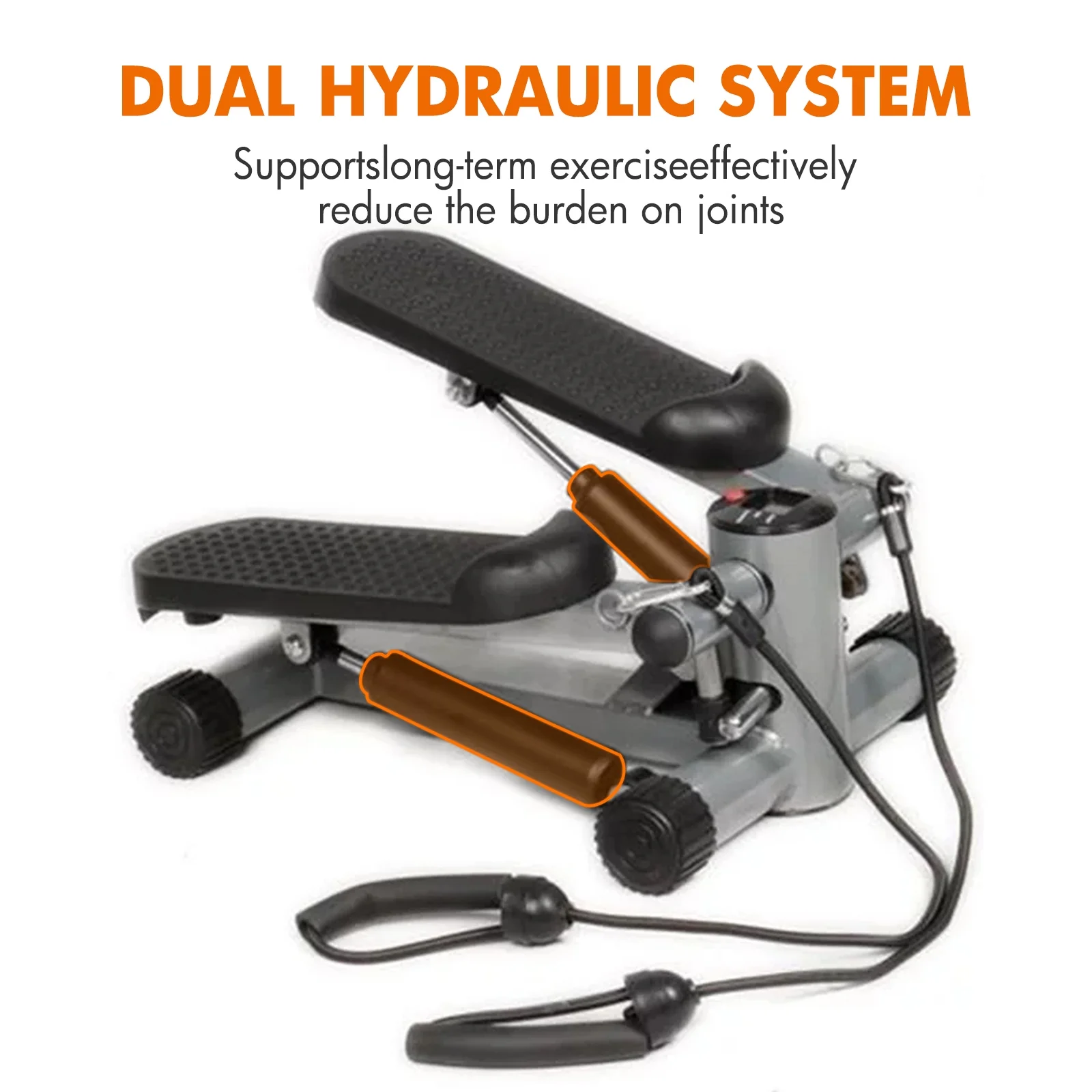 Mini Stepper Air Stair Climber Exercise Machine Health Aerobic Fitness Elliptical Trainers with Resistance Band LCD Display Gray
