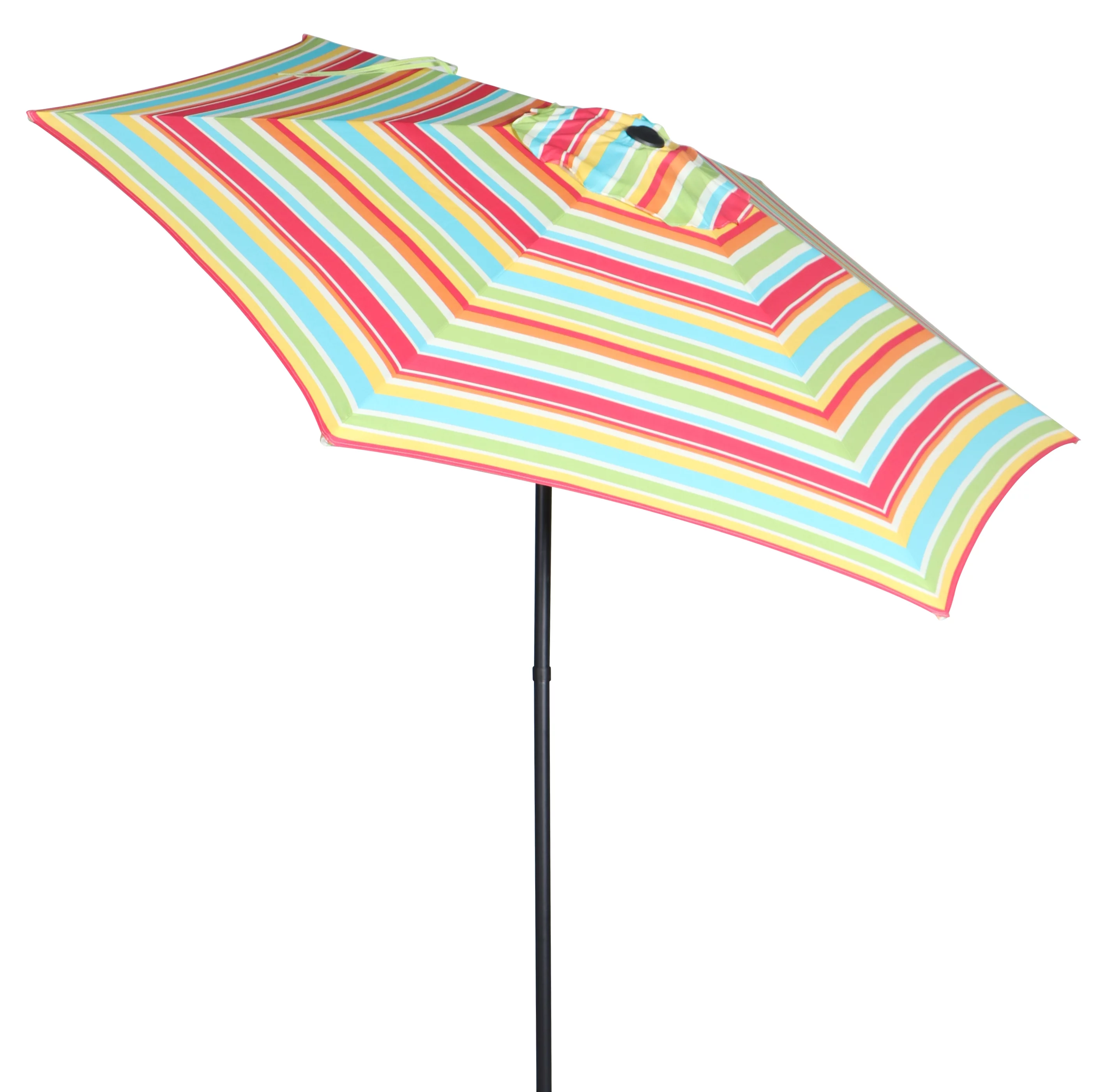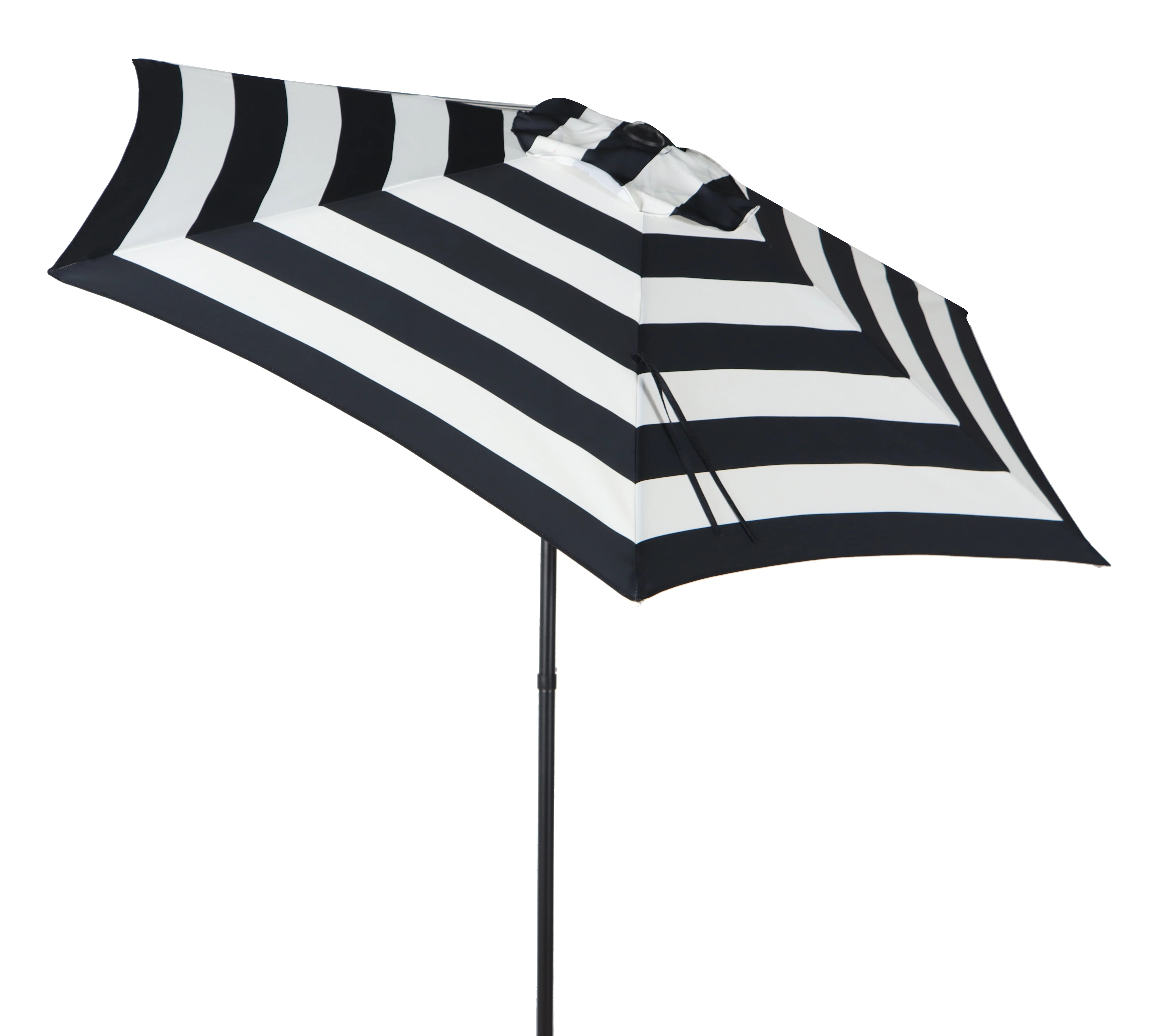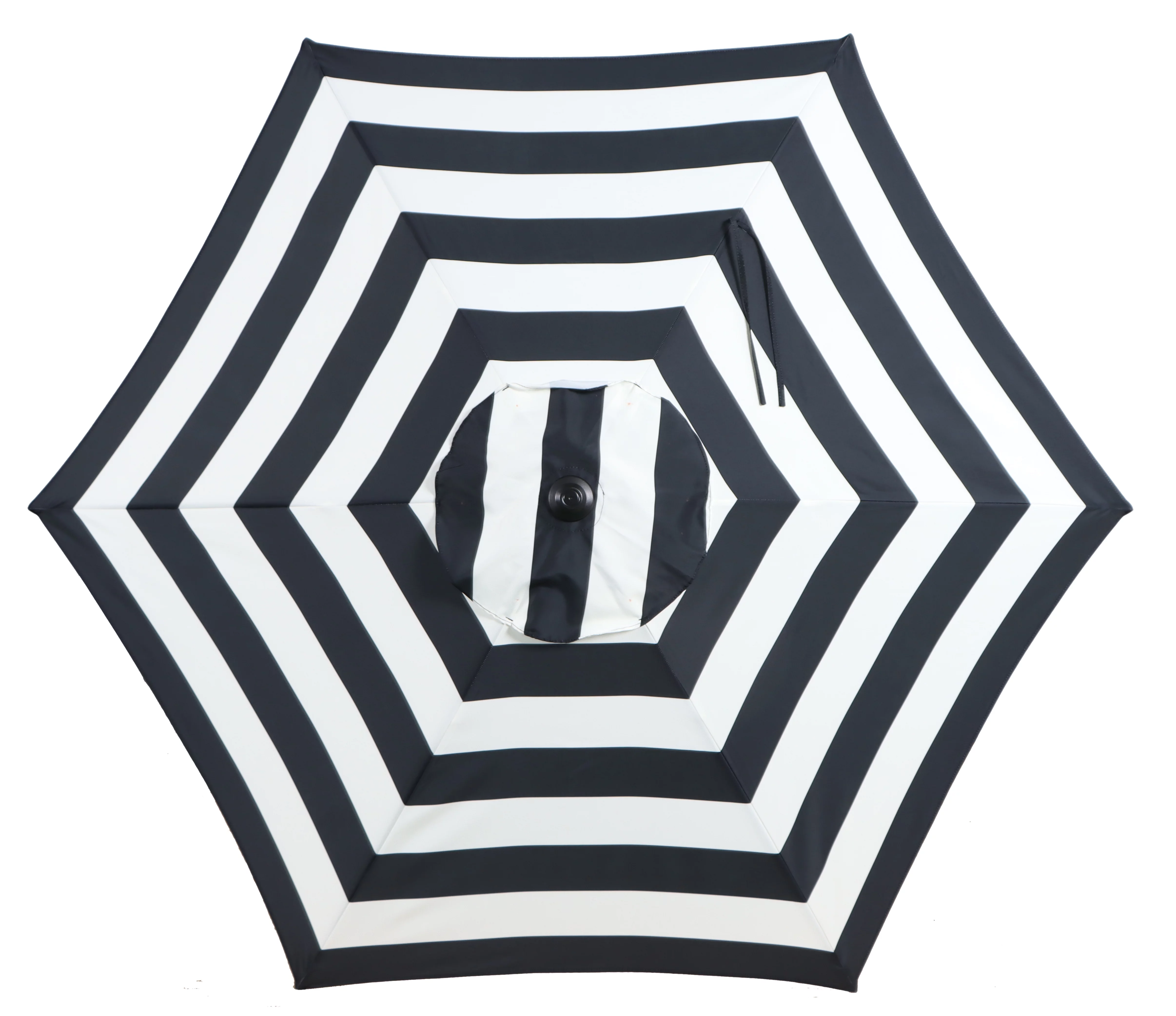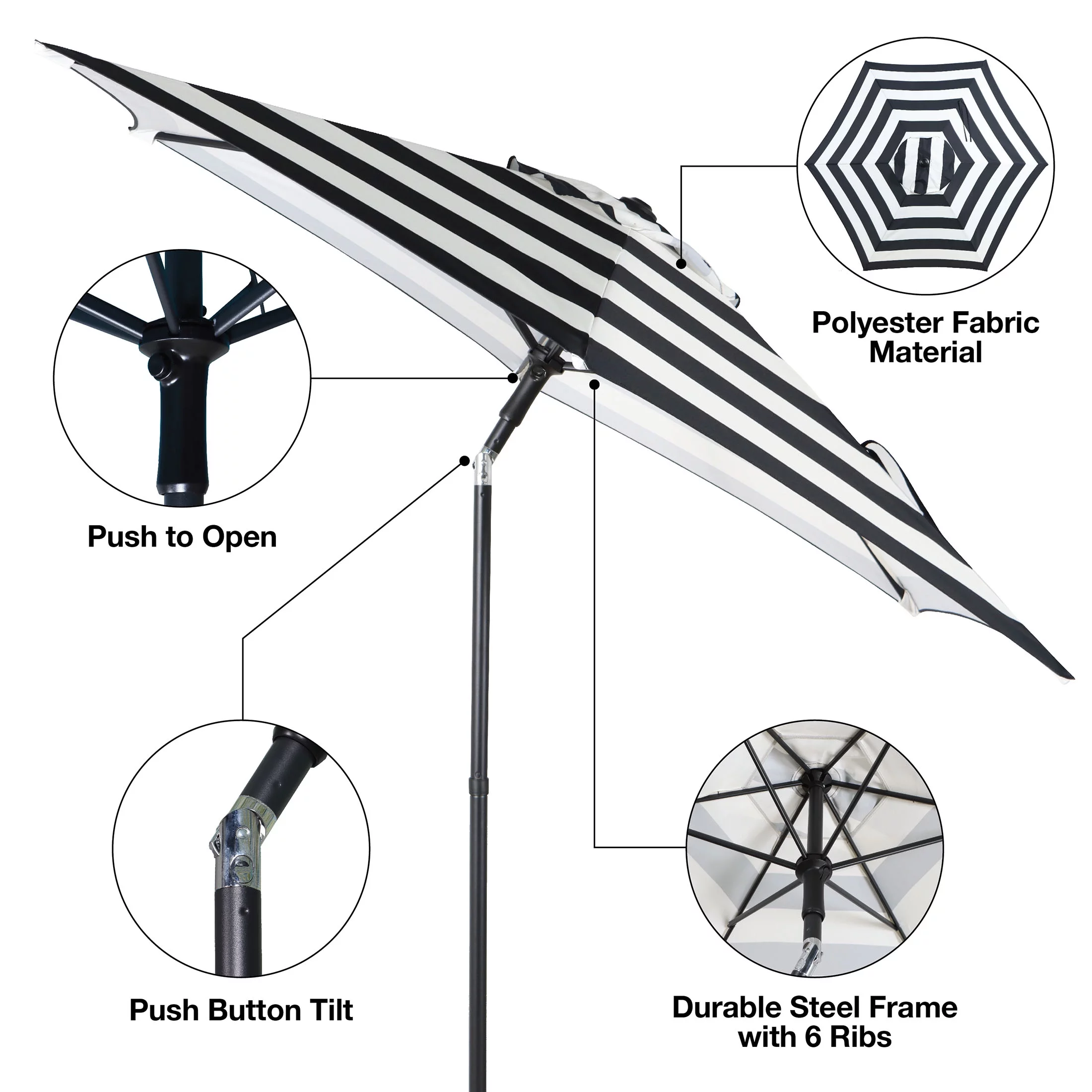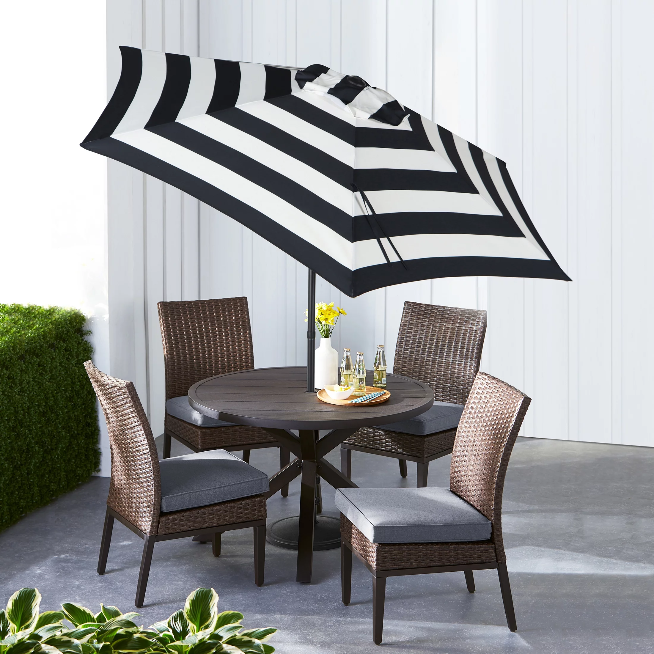 Mainstays 7.5 Foot Push-Up Round Market Umbrella Black & White Cabana Stripe