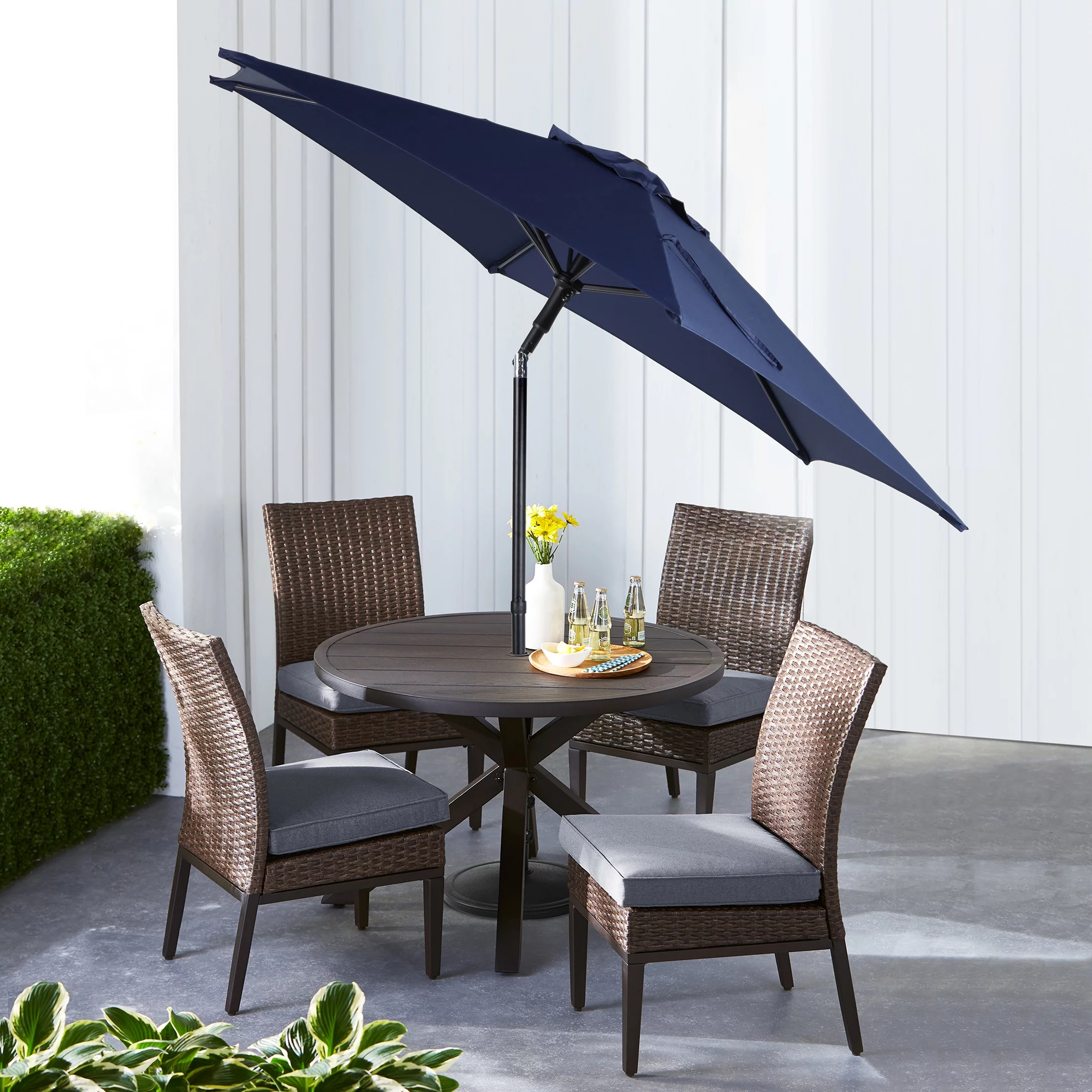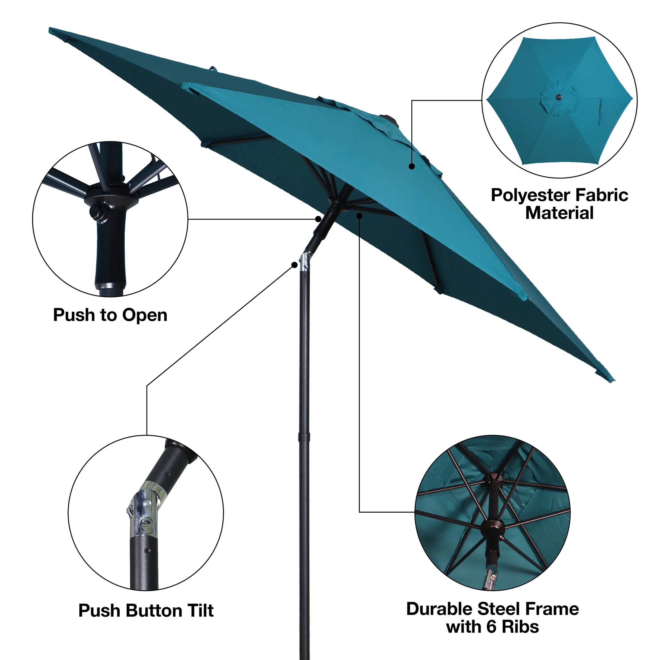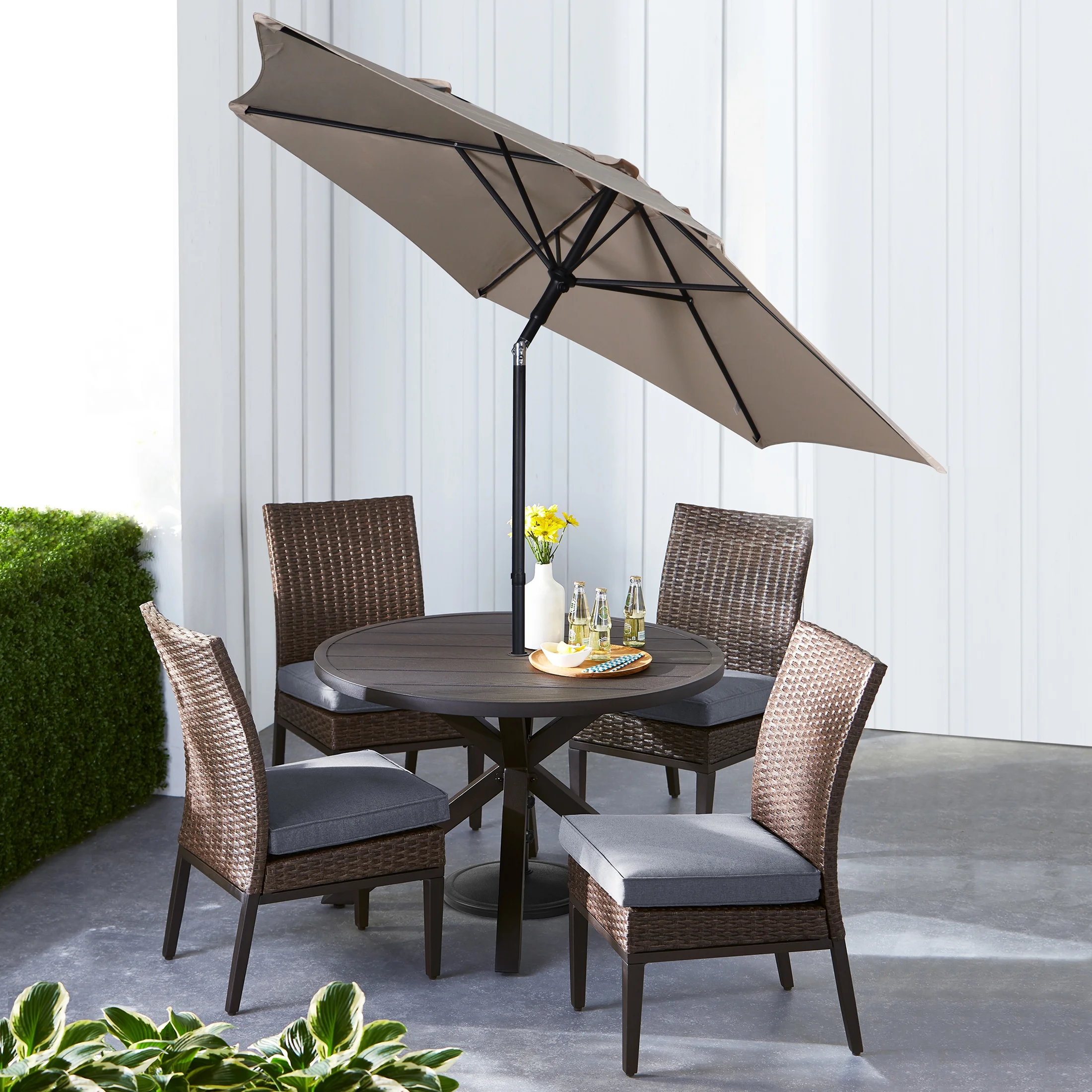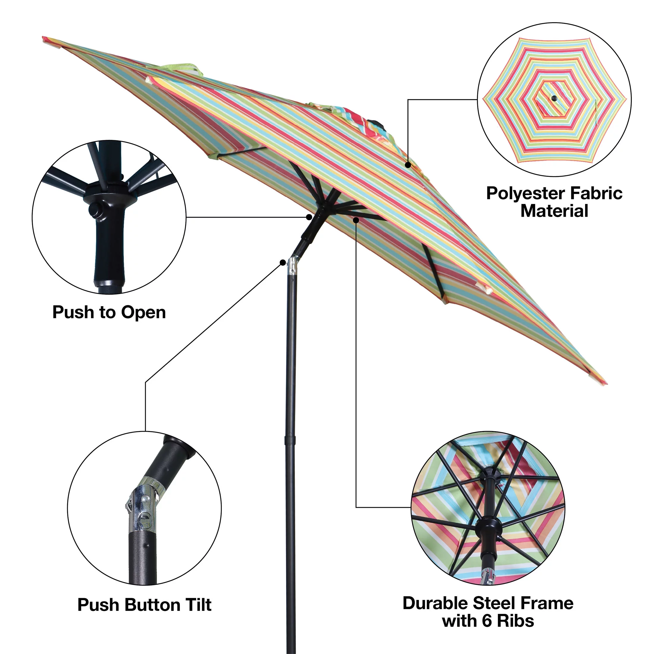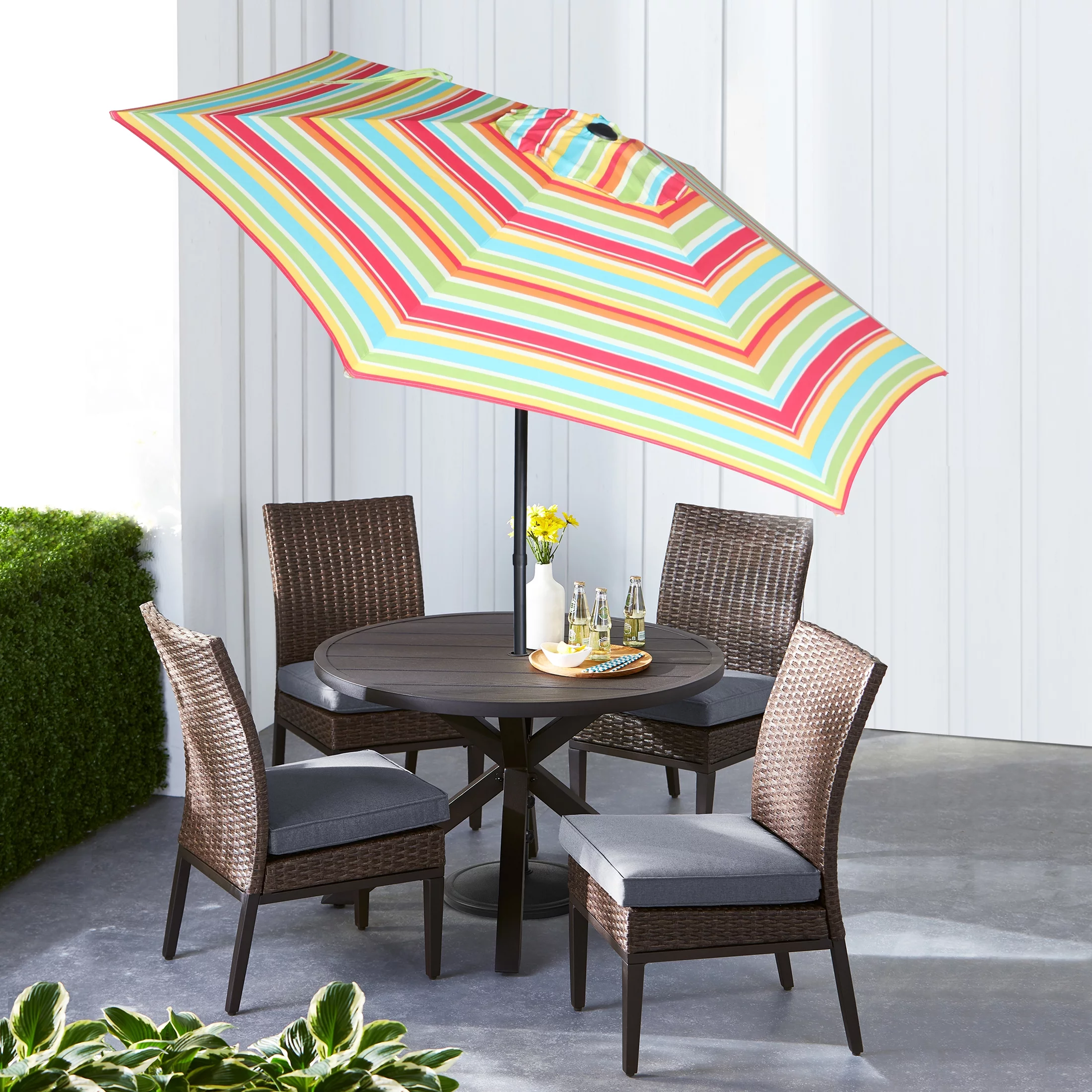 Mainstays 7.5 Foot Push-Up Round Market Umbrella Black & White Cabana Stripe