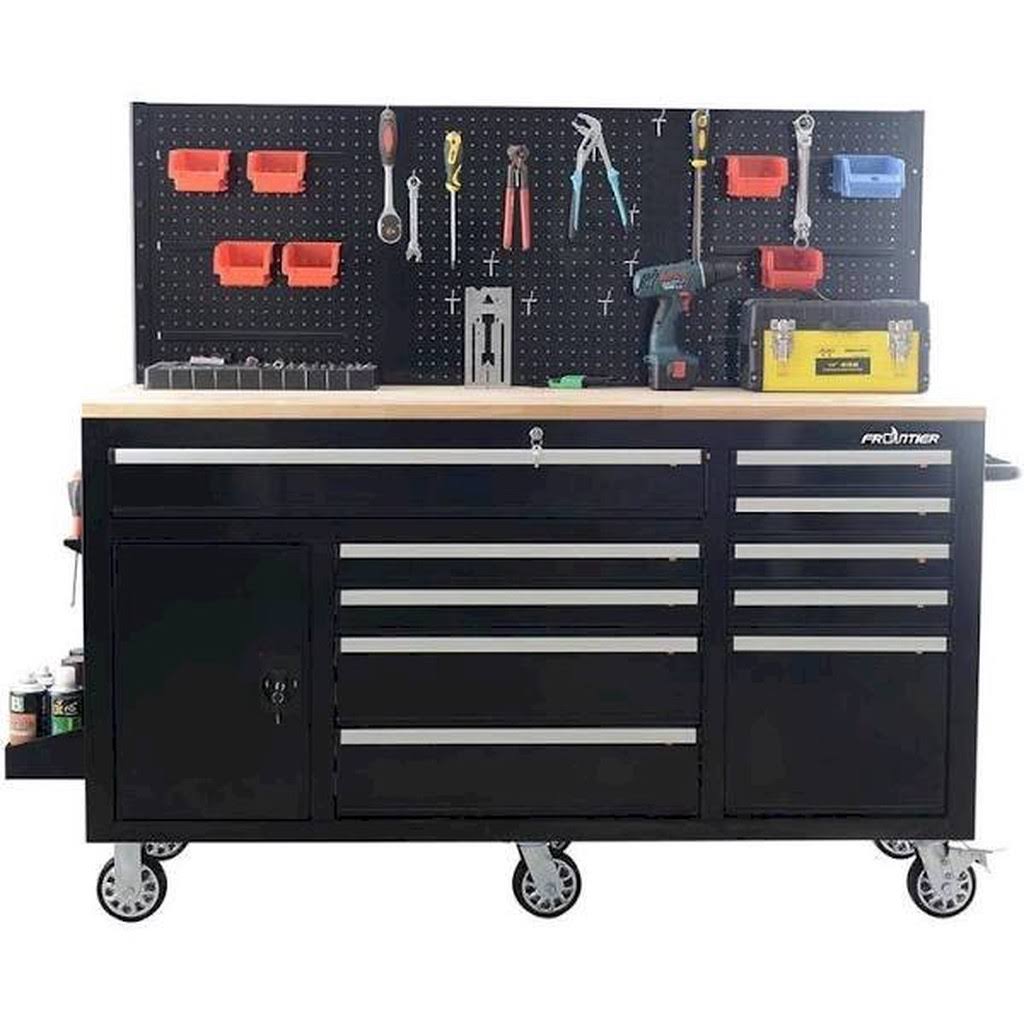 Frontier XTB6210B 62 in. 10-Drawer Tool Chest Cabinet with Pegboard Back Wall, Heavy Duty Mobile Workbench in Black - Megean