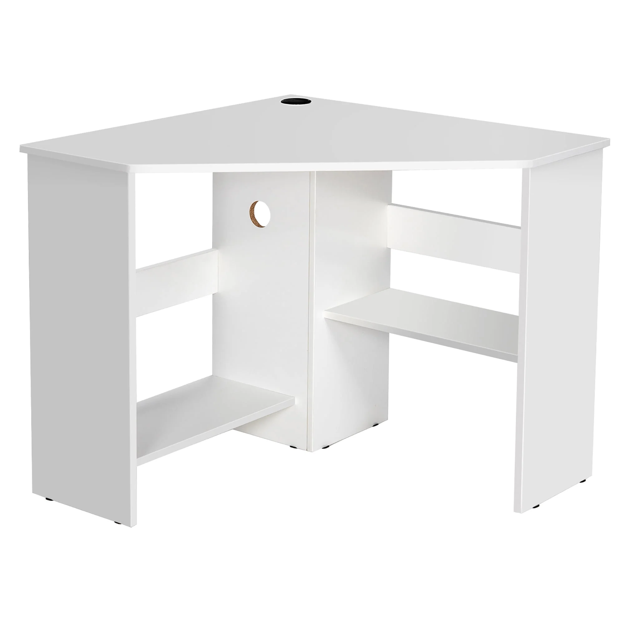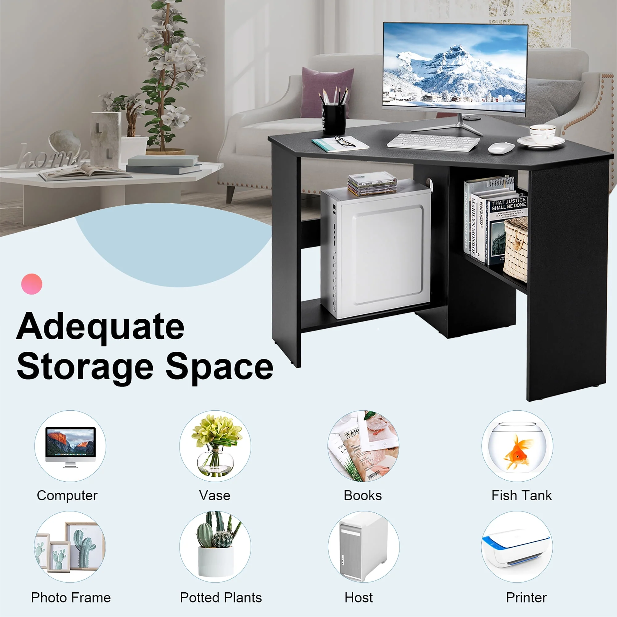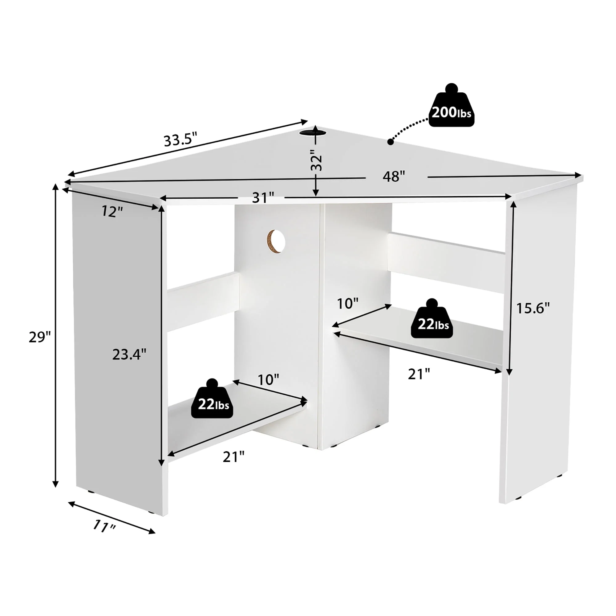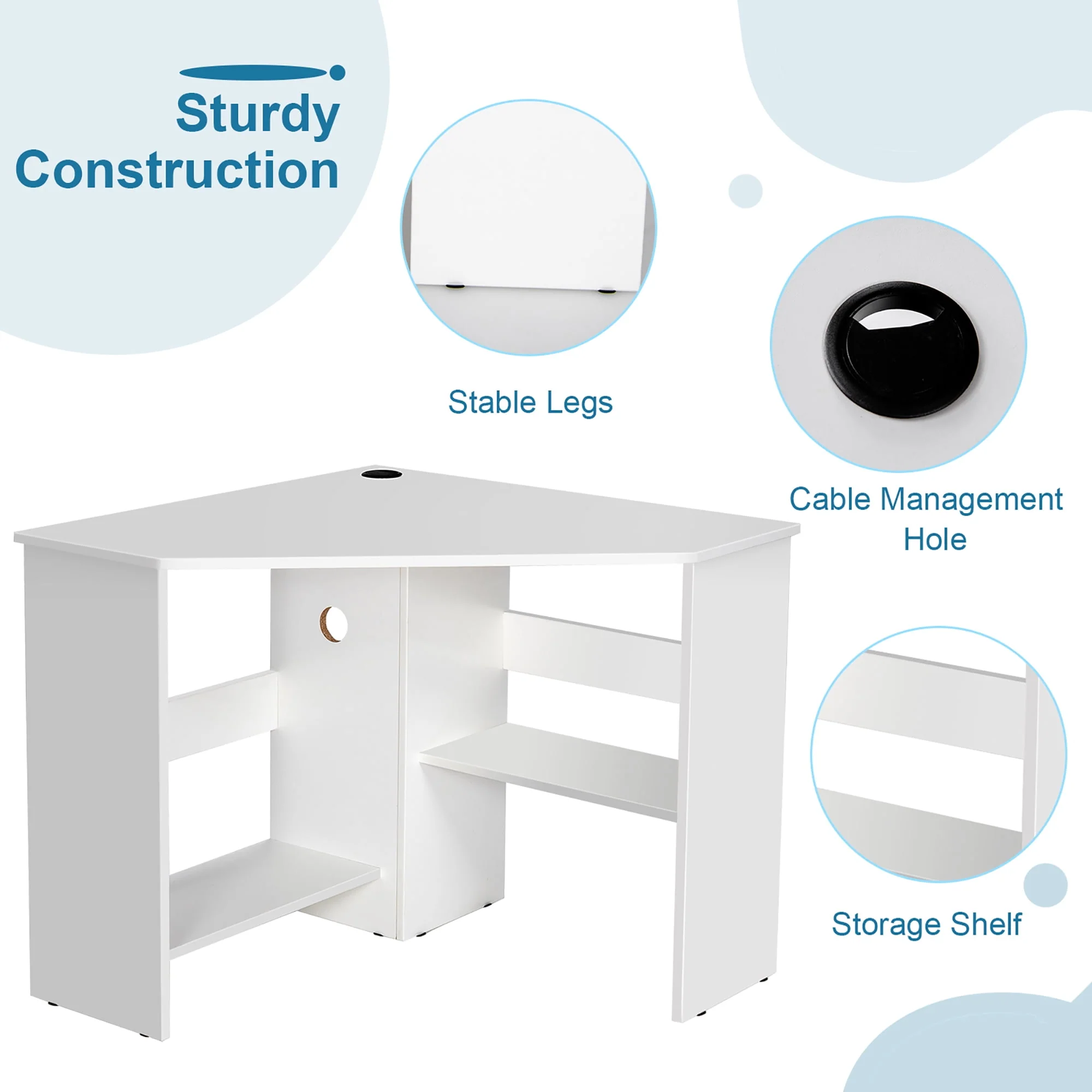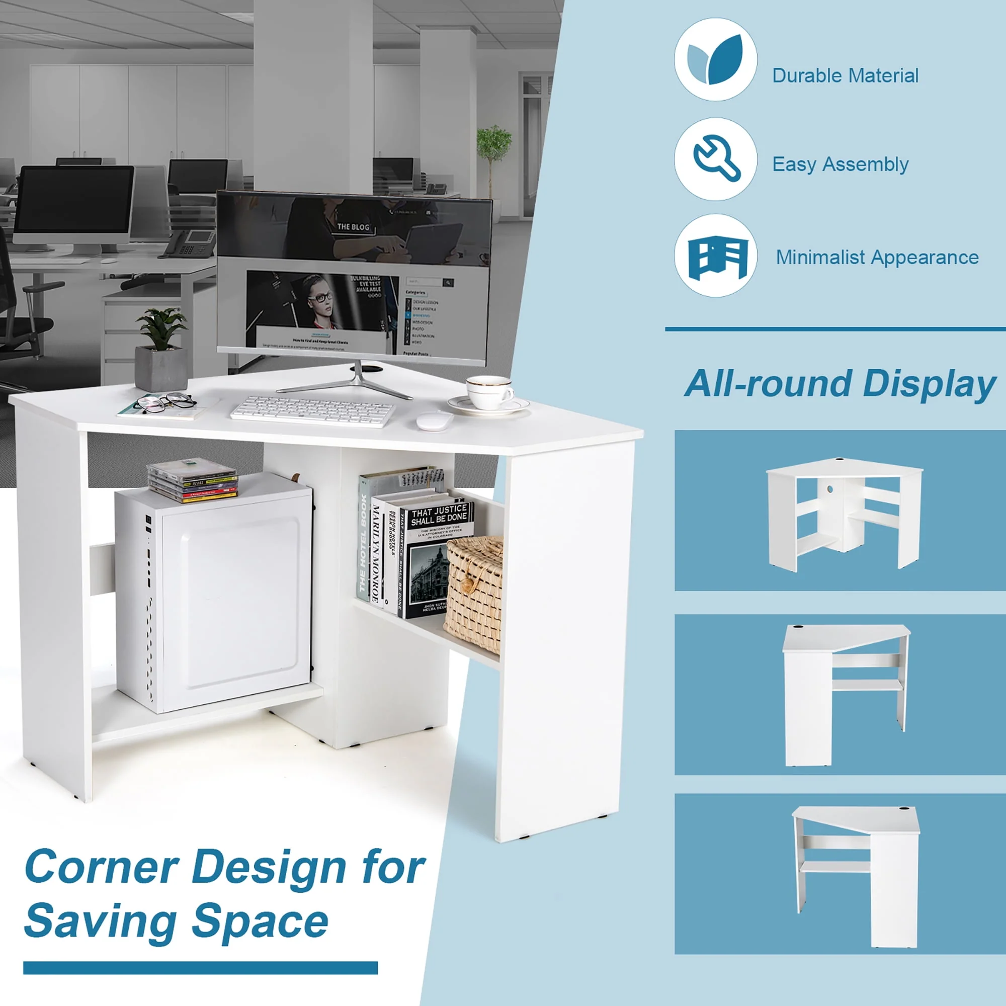 Costway Corner Computer Desk Triangle Writing Workstation w/ Storage Shelf White