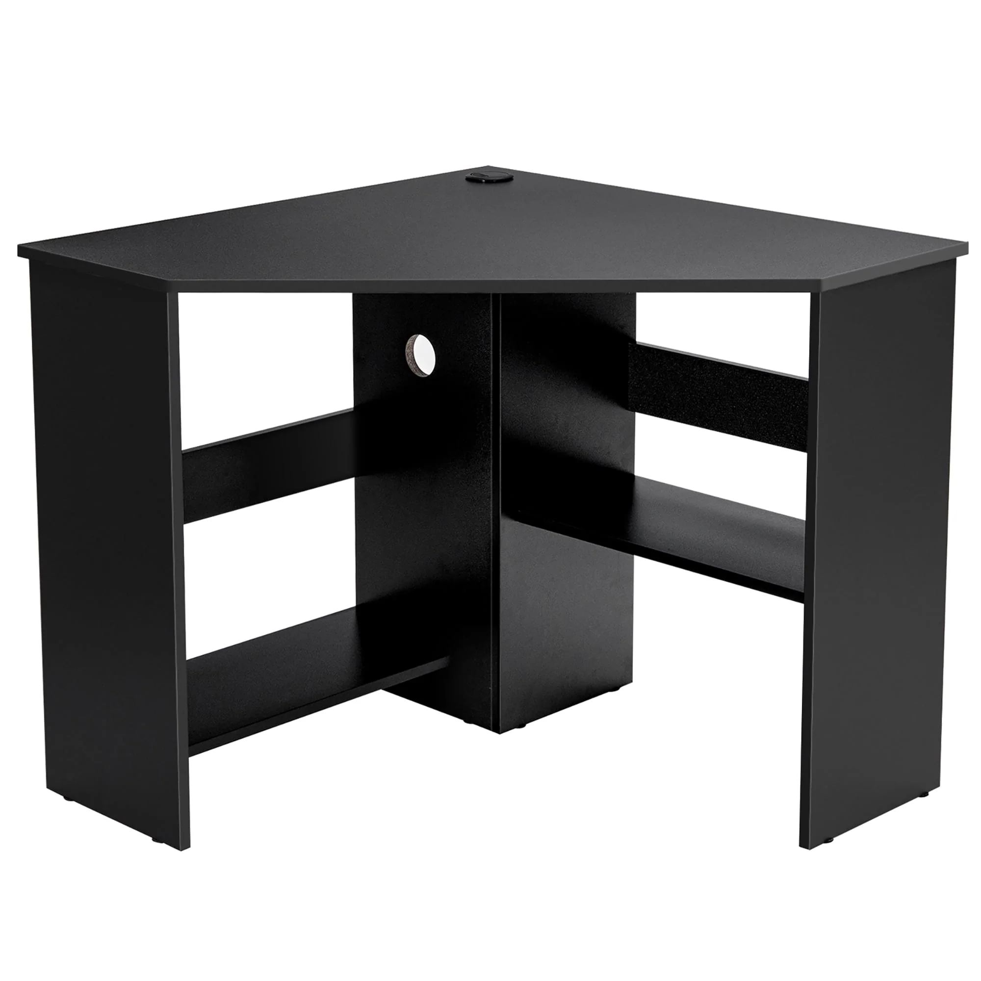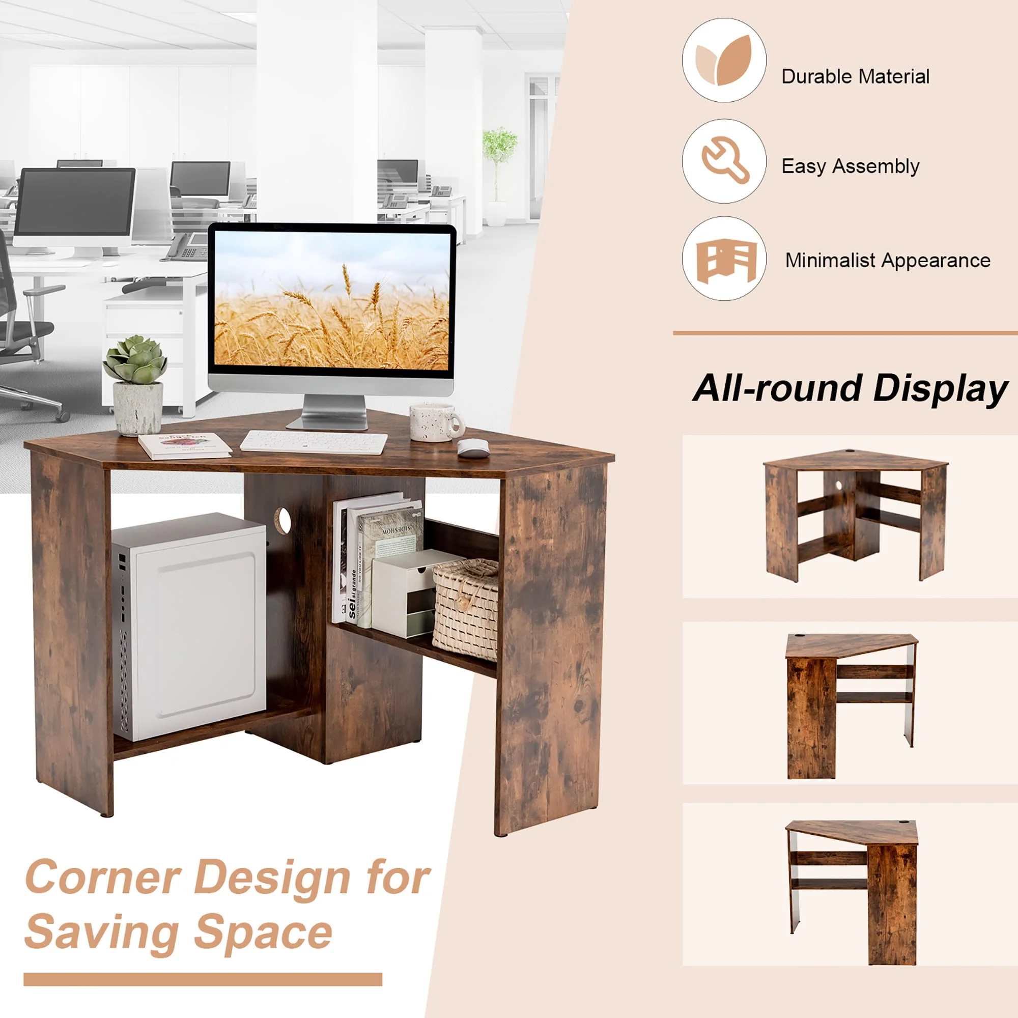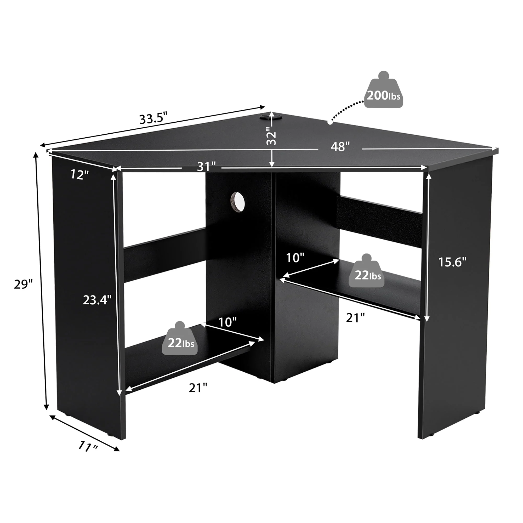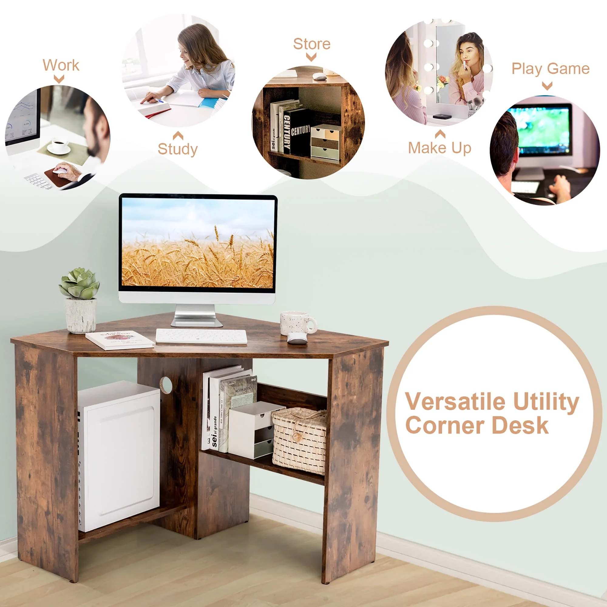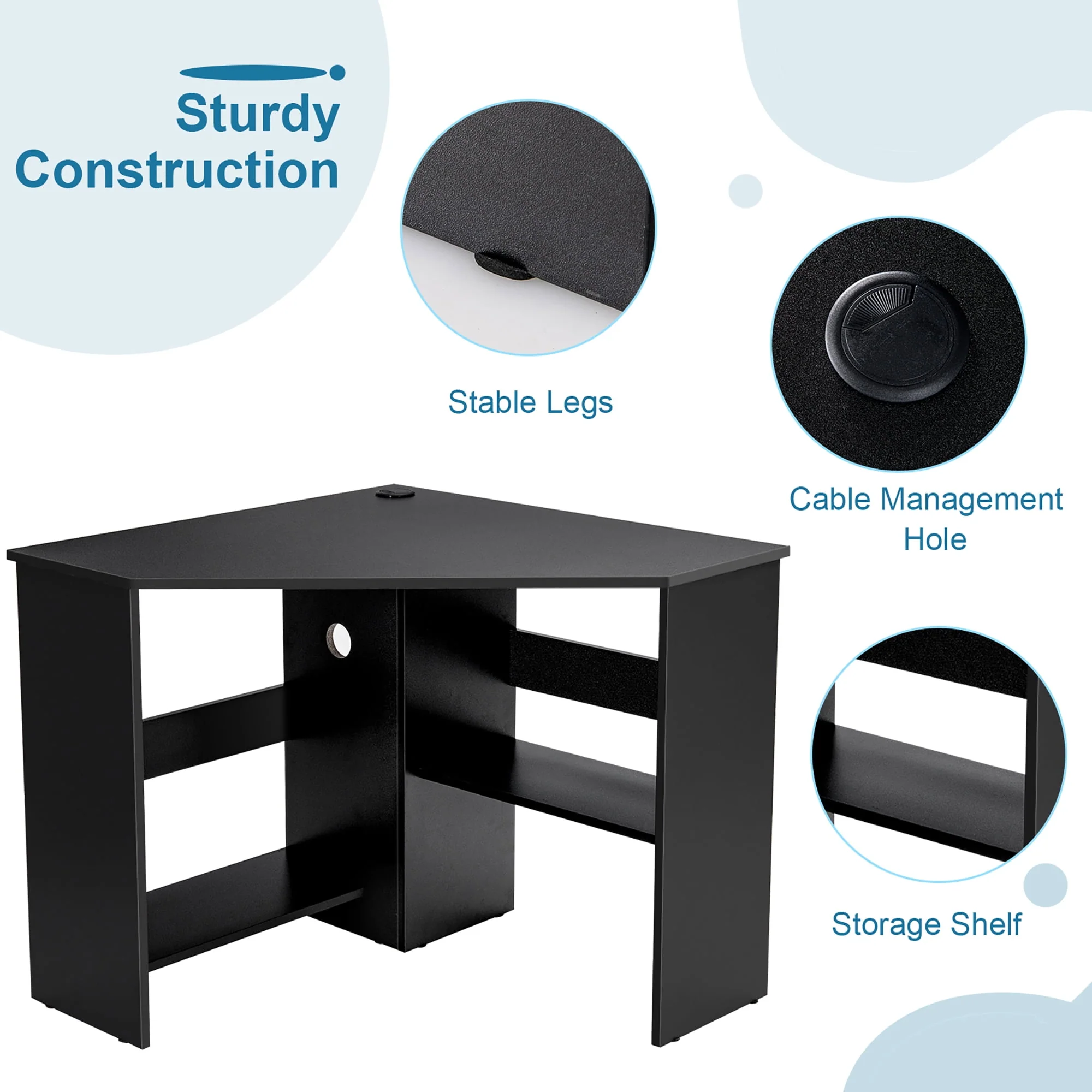 Costway Corner Computer Desk Triangle Writing Workstation w/ Storage Shelf White