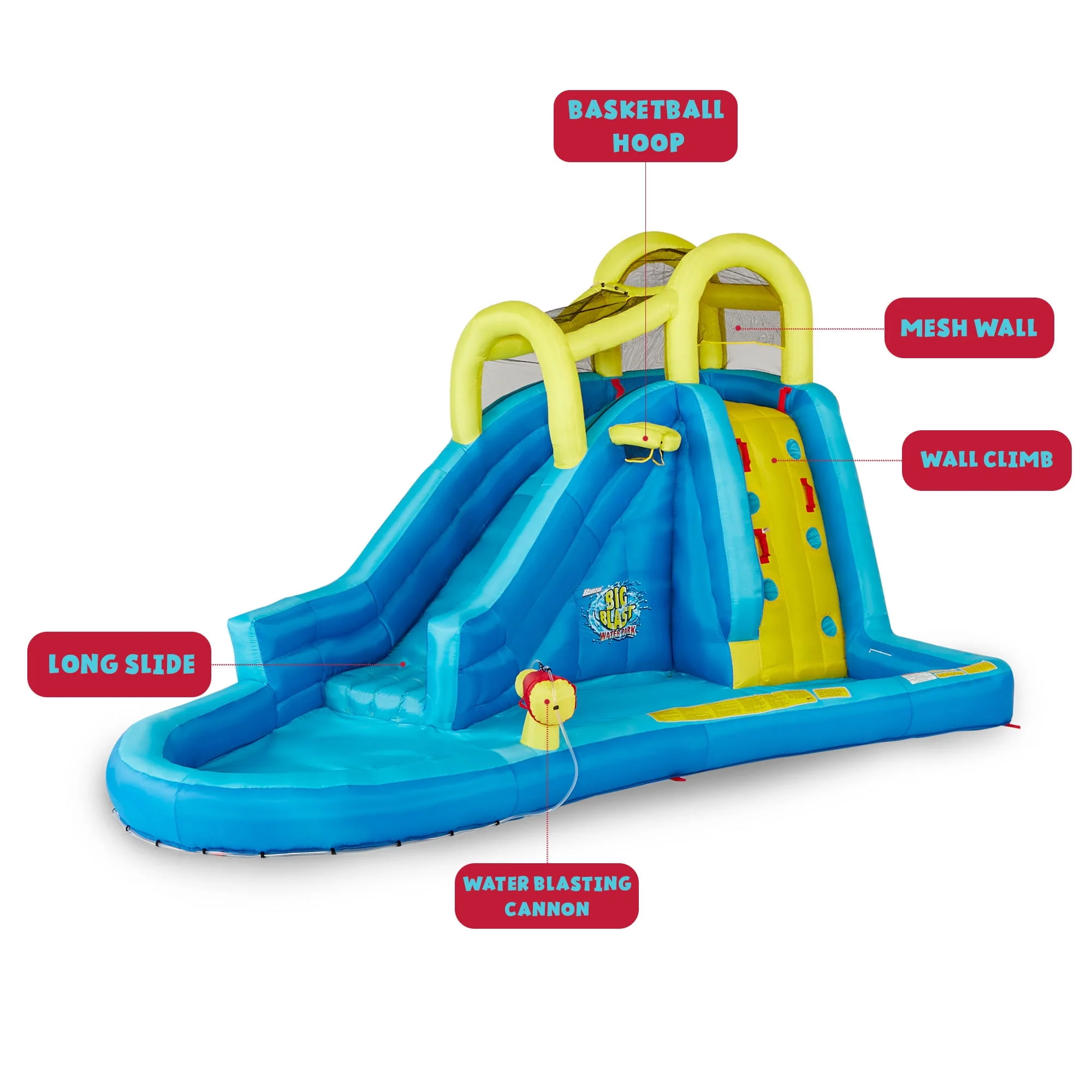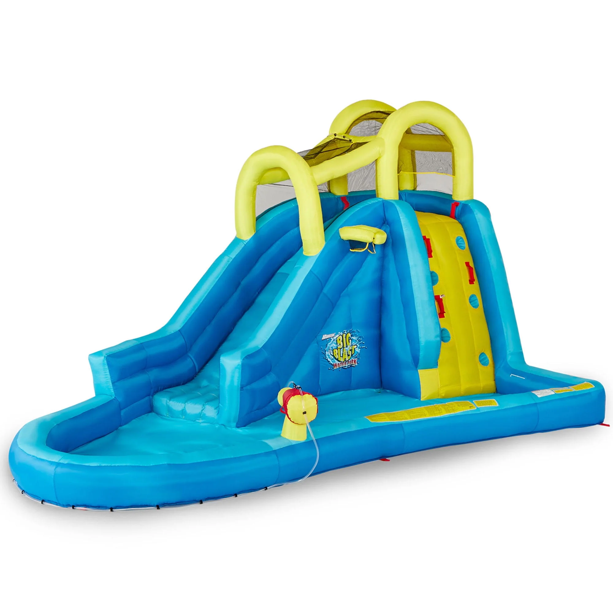 Banzai Big Blast Inflatable Water Park w/Climbing Wall, Slide, Splash Pool
