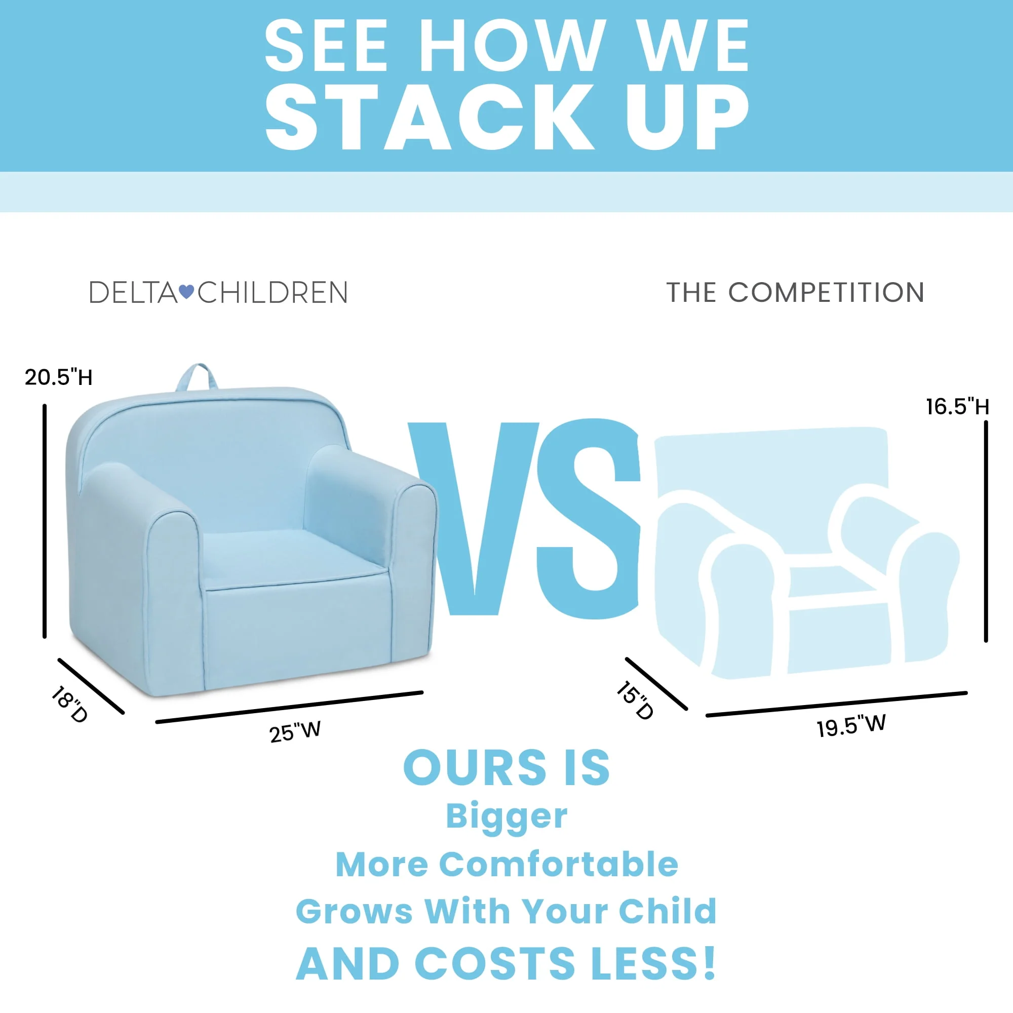 Delta Children Cozee Chair for Kids for Ages 18 Months and Up, Light Blue