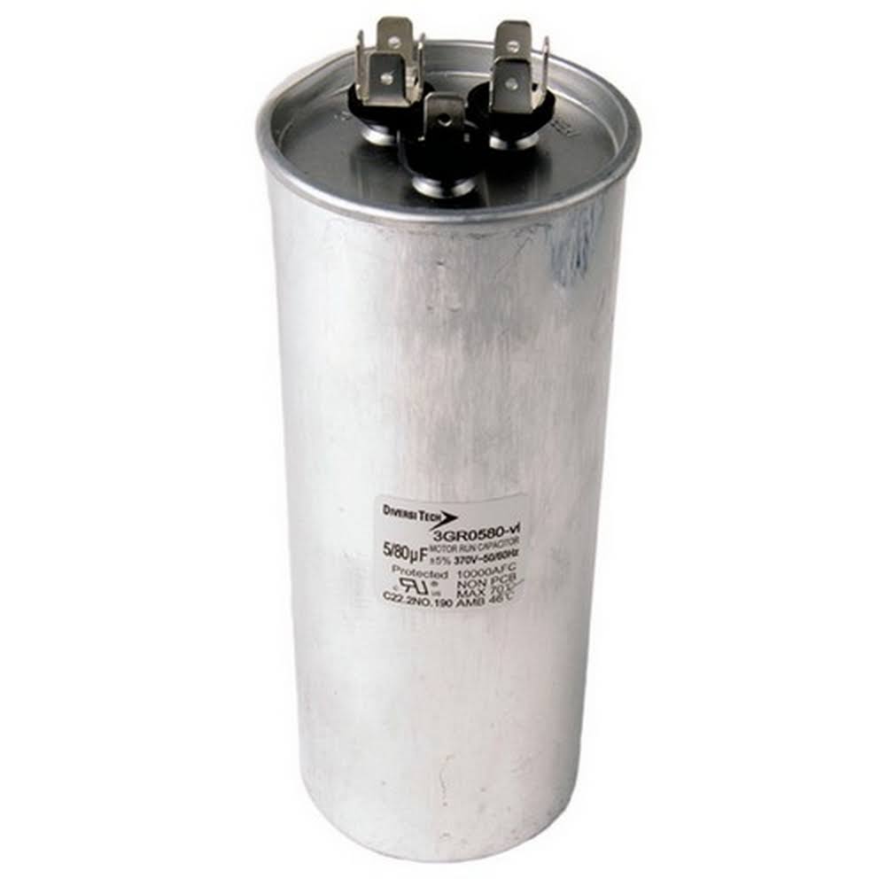 Morris, T3GR0580, Motor Run Capacitor Dual Capacitance Round Can, 370 VAC, 80+5 UF - Megean